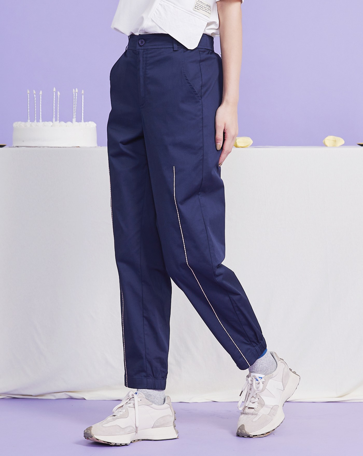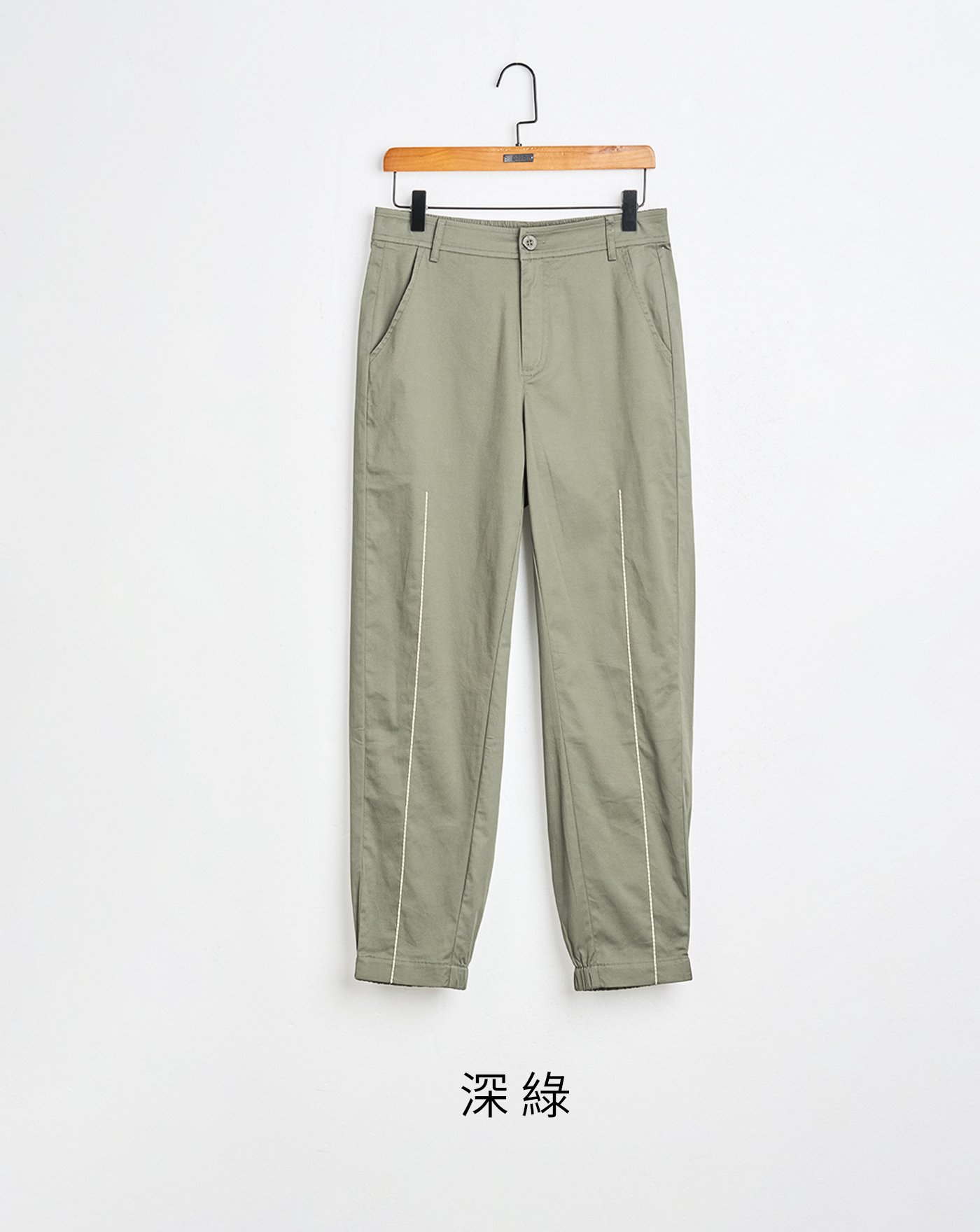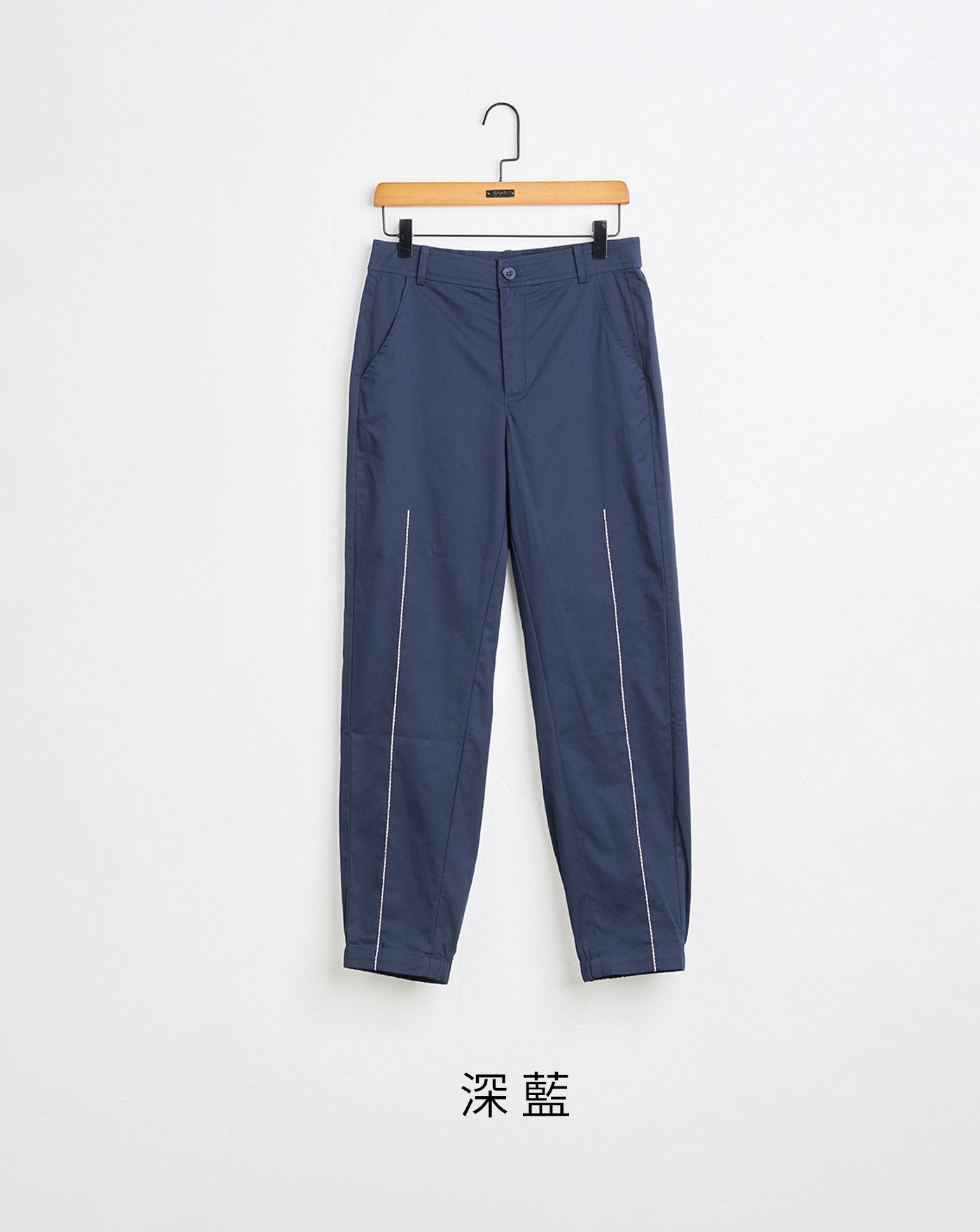 配色跳針壓線裝飾後腰鬆緊帶修身版型彈力斜紋棉