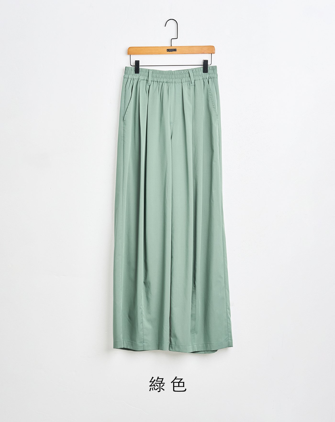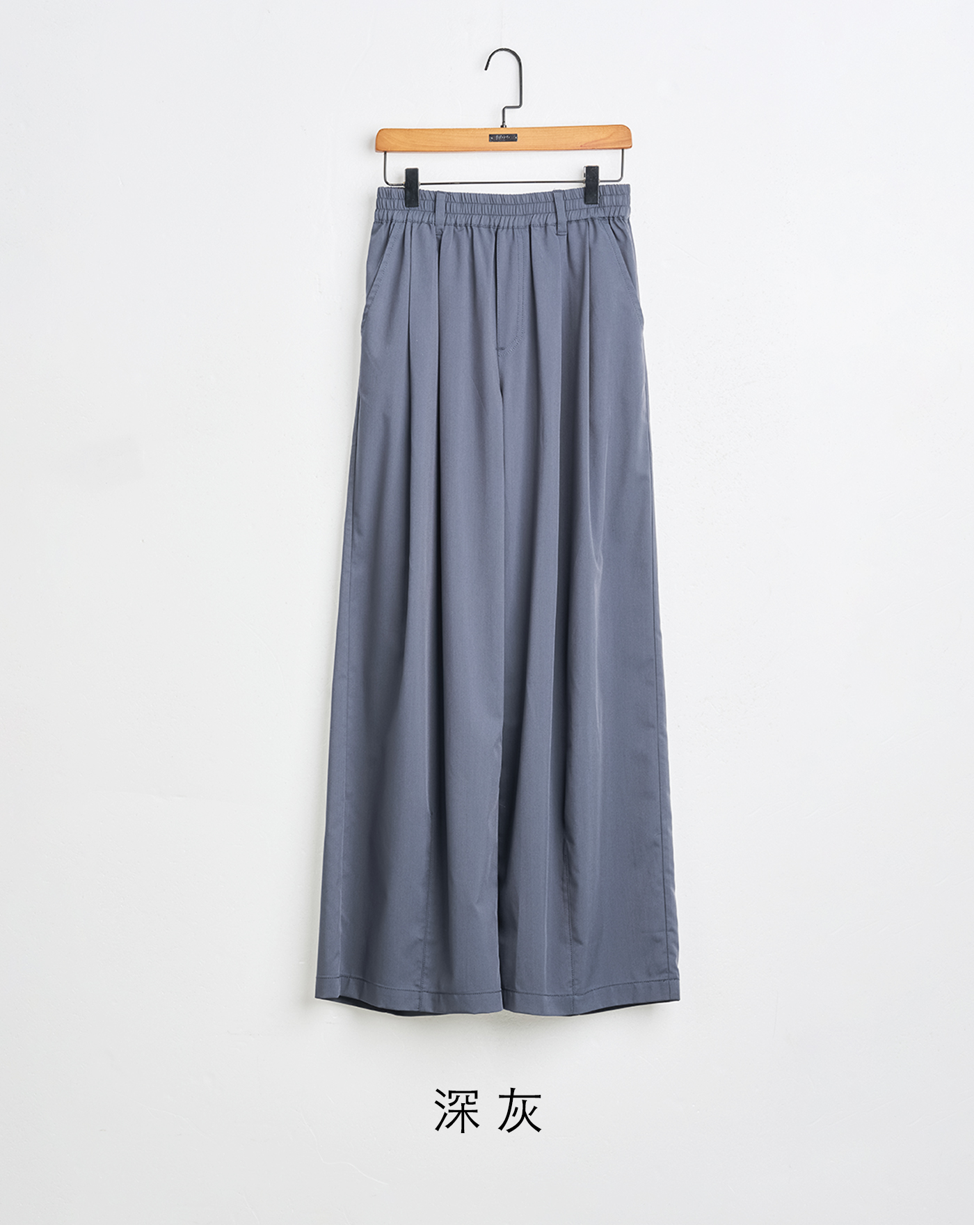 壓褶繡花後鬆緊直筒西裝褲(兩色)
