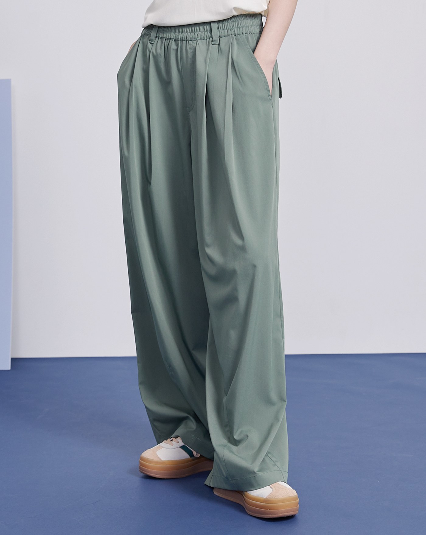 造型腰頭繭型寬褲(兩色)