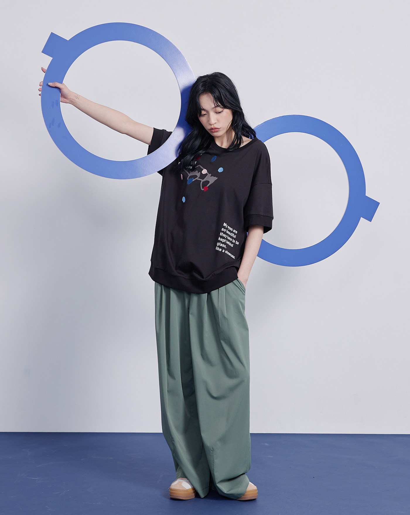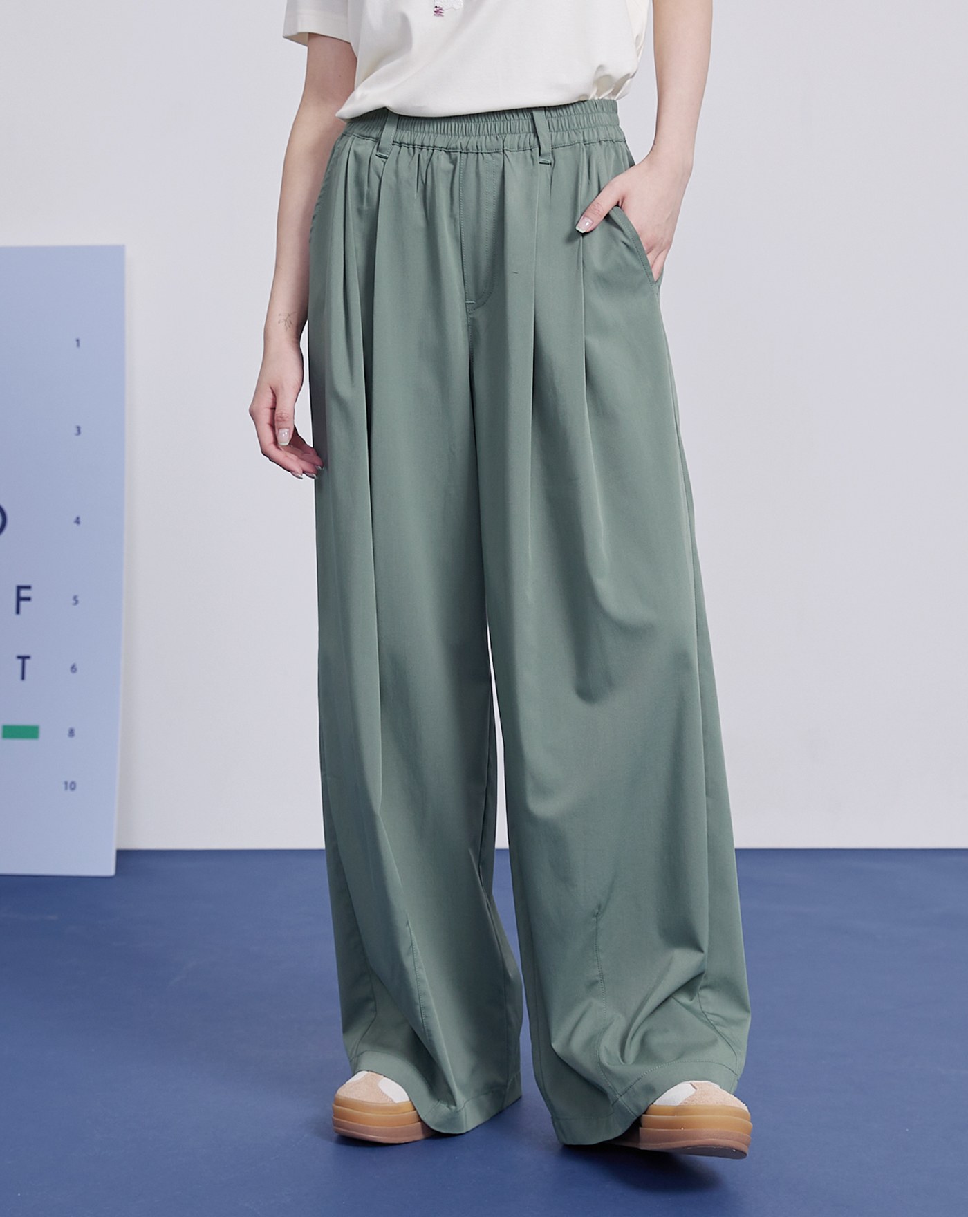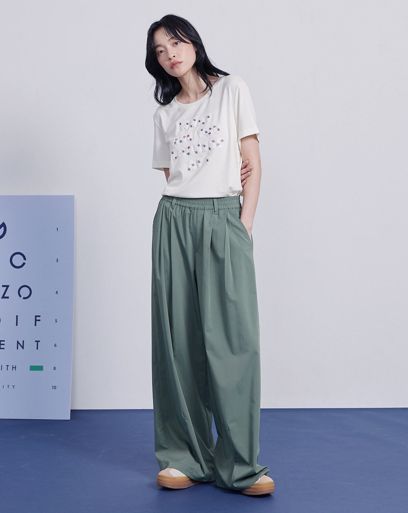 gozo繡花寬腰頭打褶寬褲(兩色)