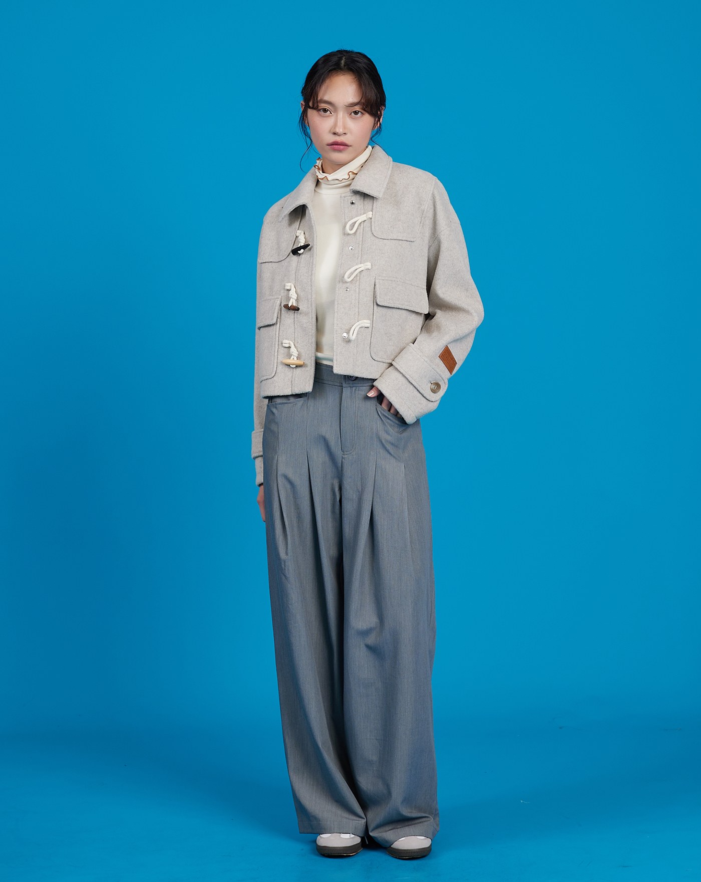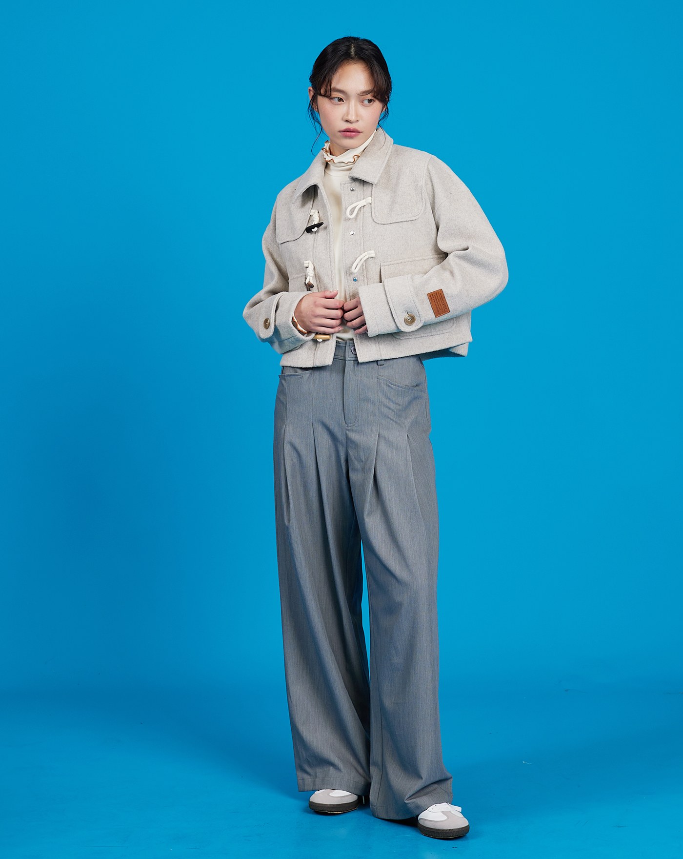 柔軟荷葉腰頭抽繩9分寬褲(兩色)