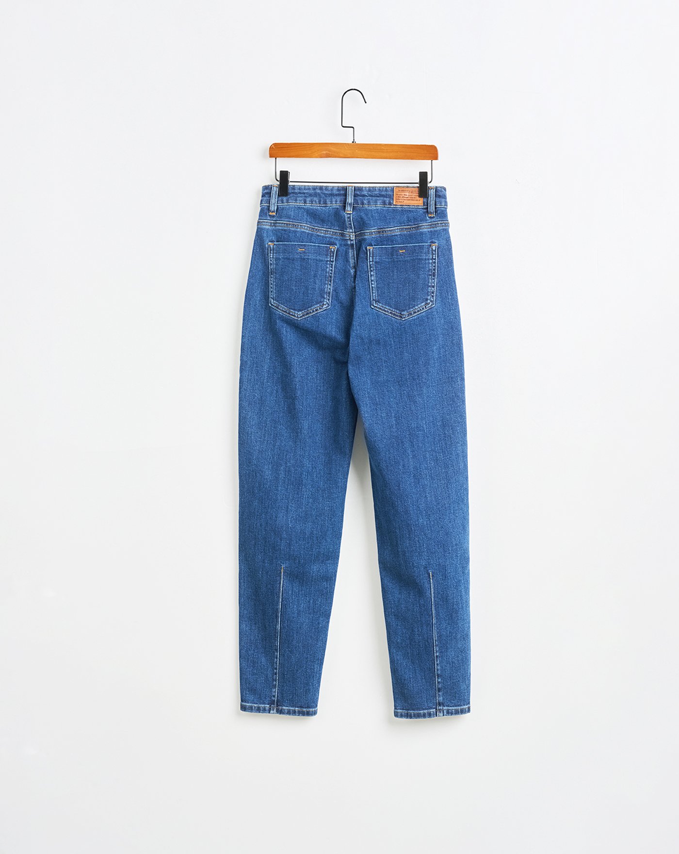 渲染刷色彈性打褶直筒牛仔褲(兩色)