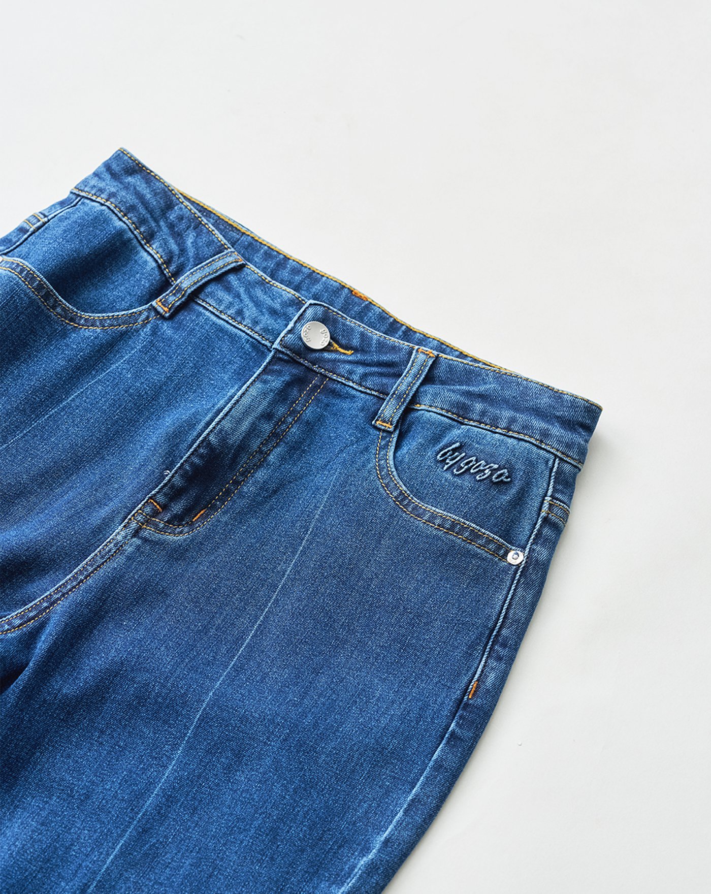 顯瘦抽鬚造型口袋牛仔男友褲(兩色)
