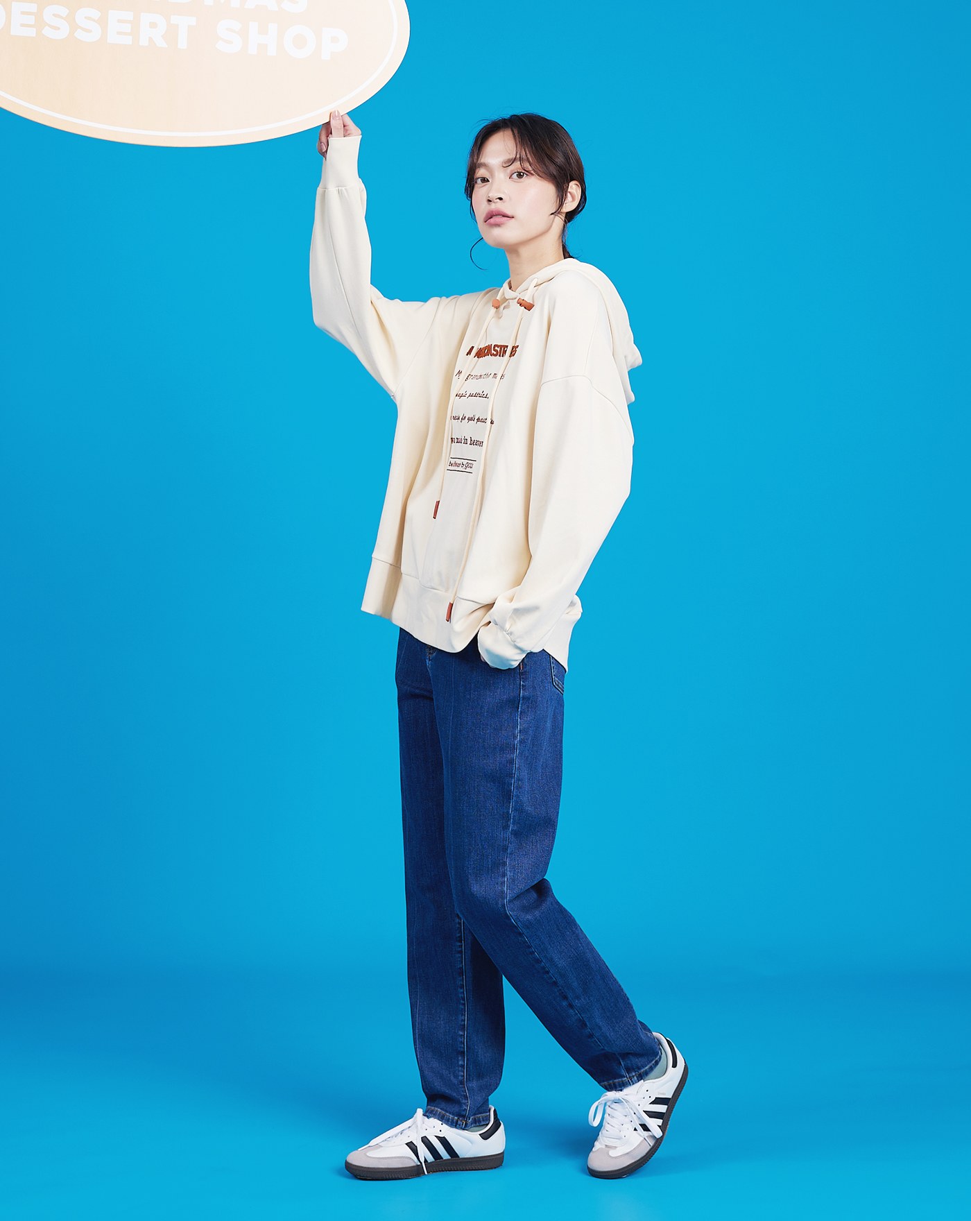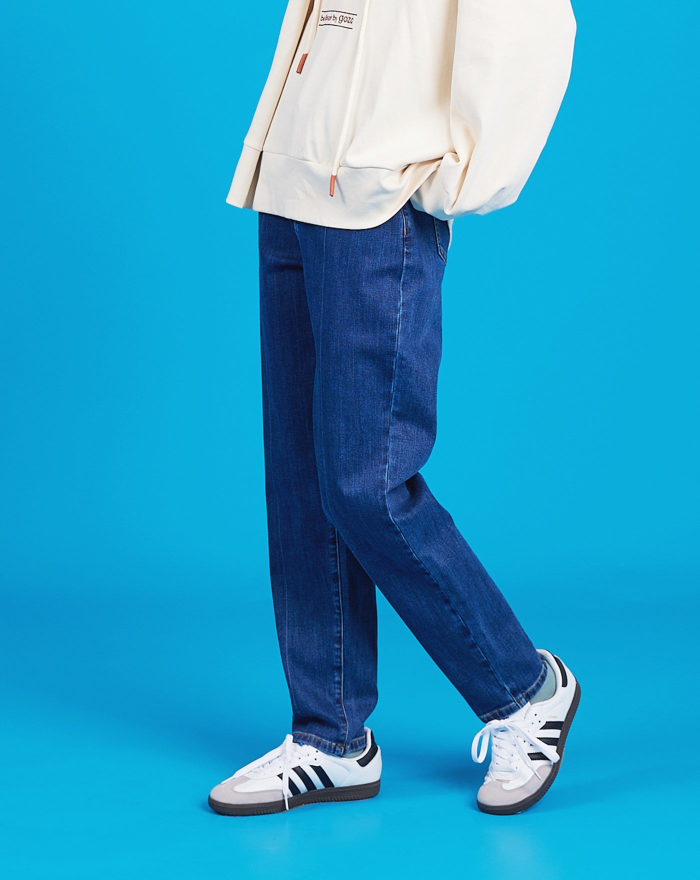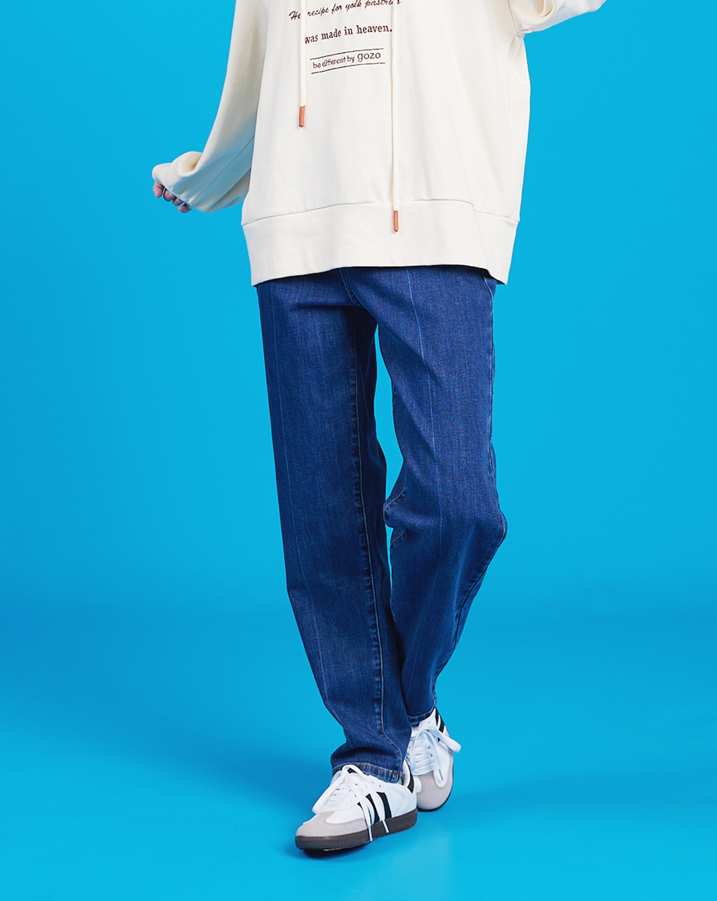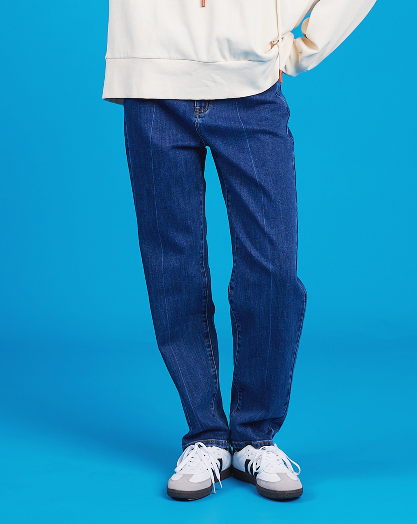 渲染刷色彈性打褶直筒牛仔褲(兩色)