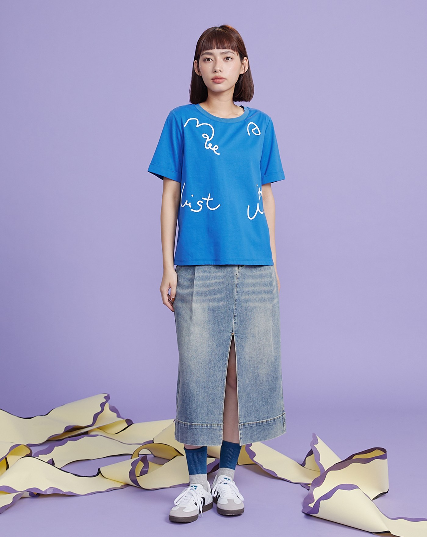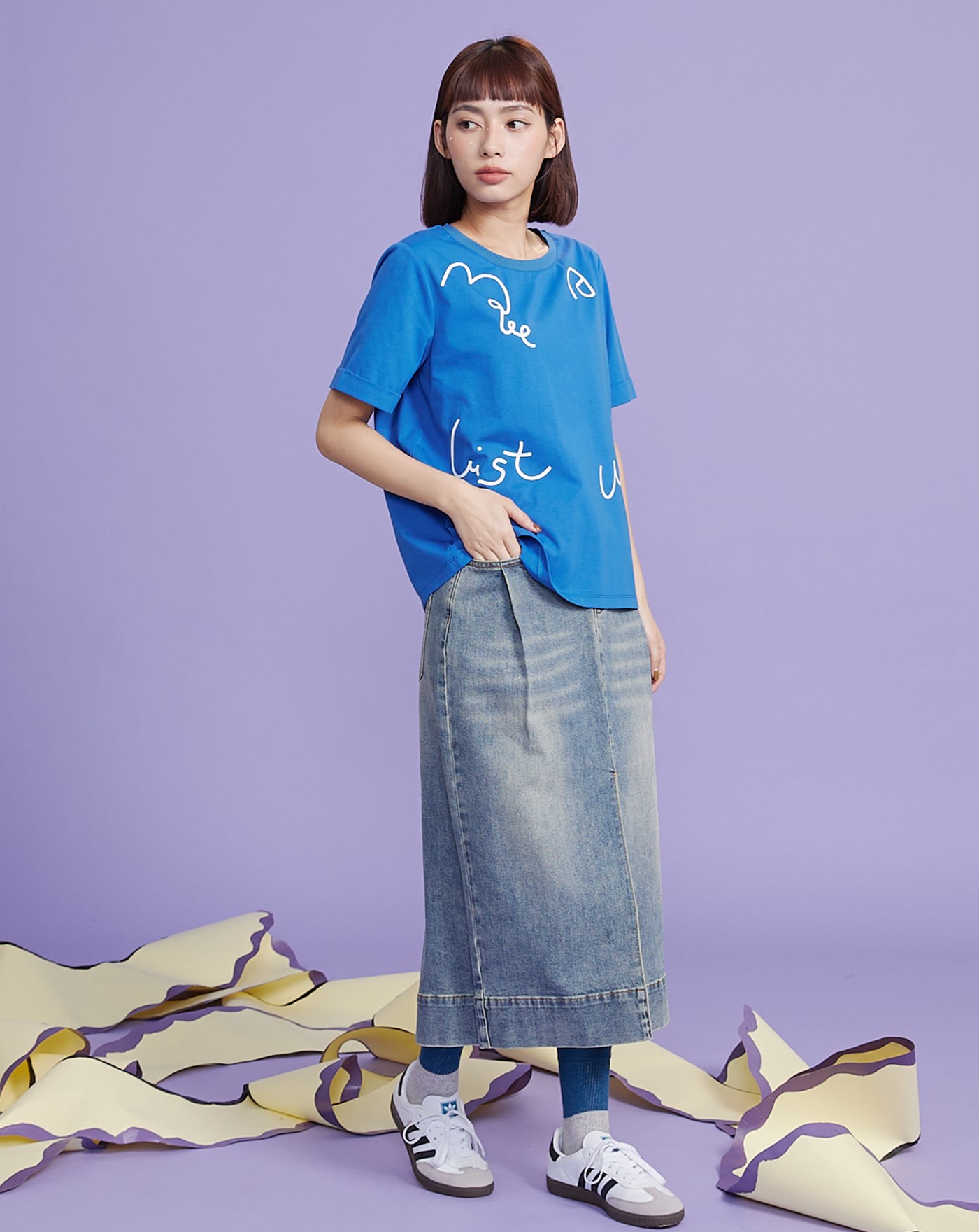 渲染刷色彈性開衩A字牛仔裙(兩色)