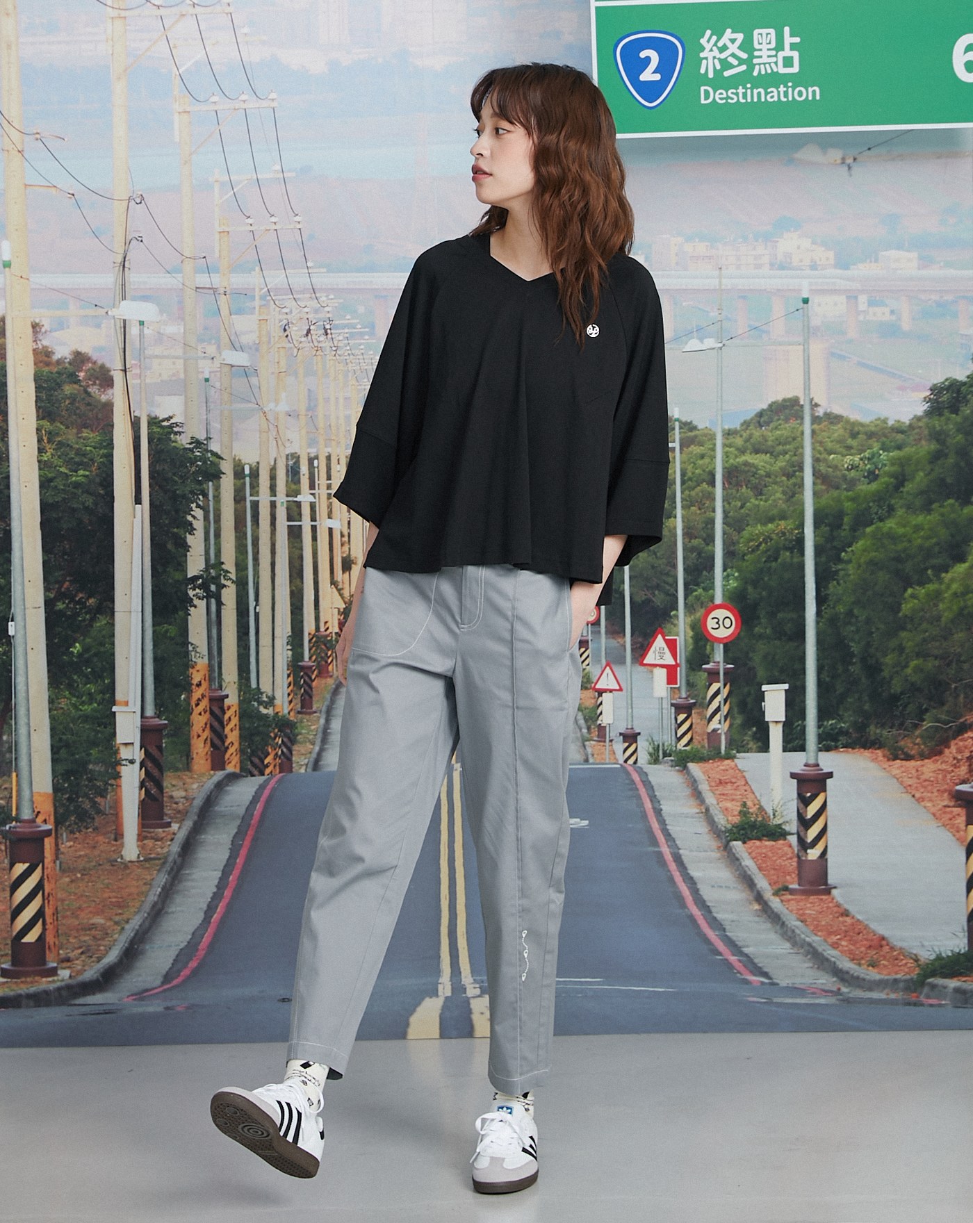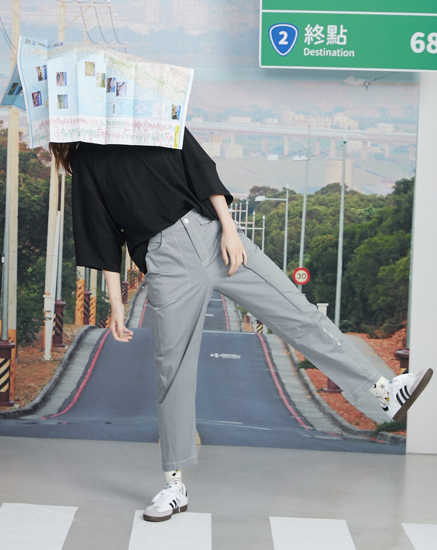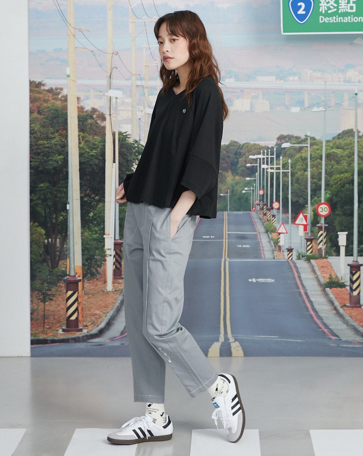 柔軟鈕扣褲腳打褶造型長褲(兩色)