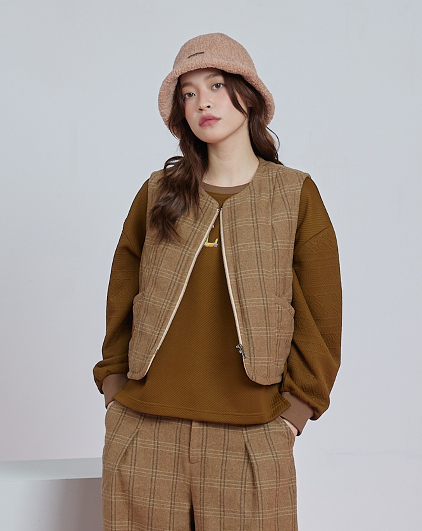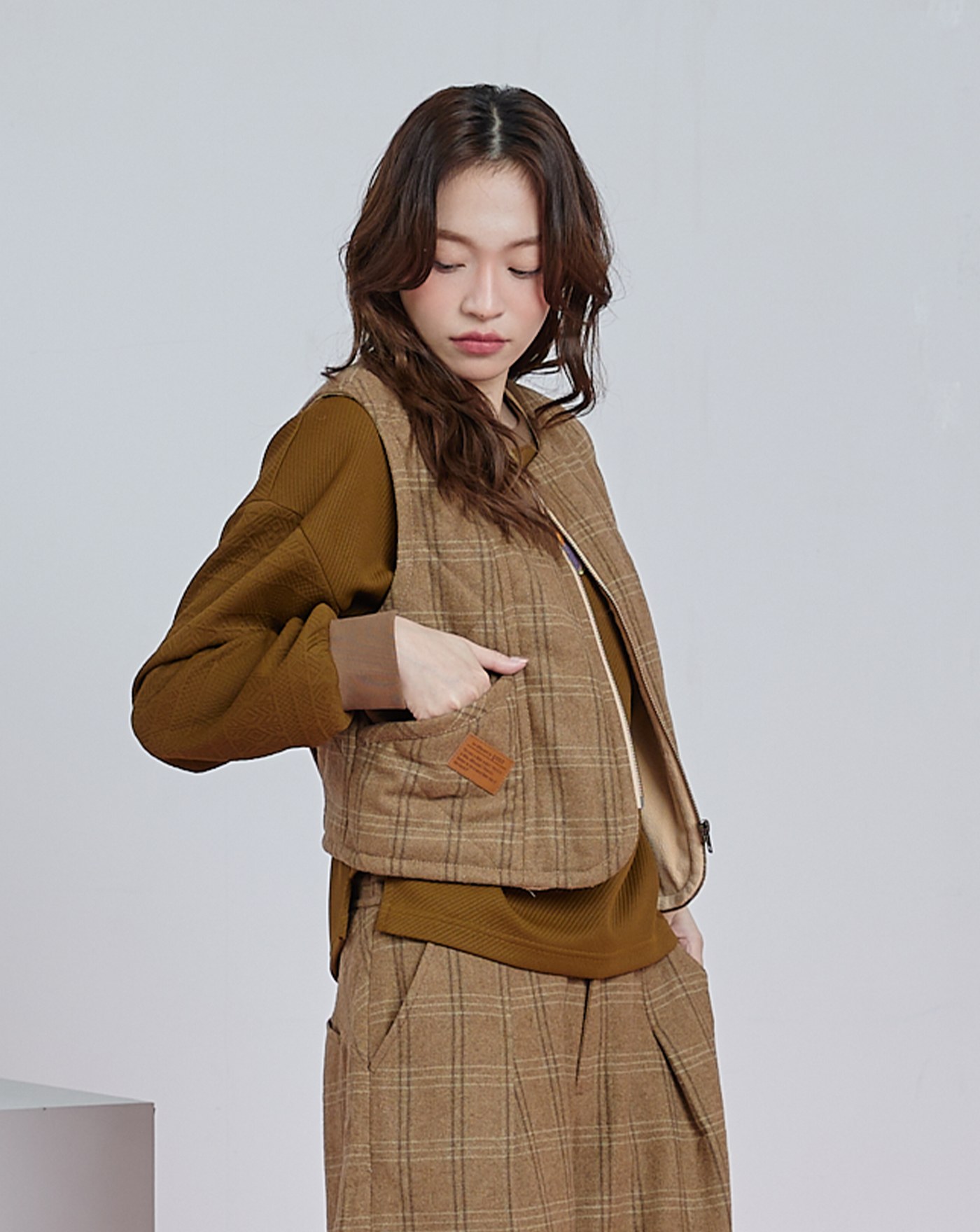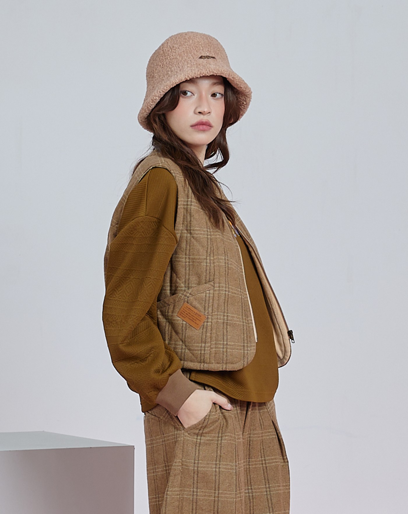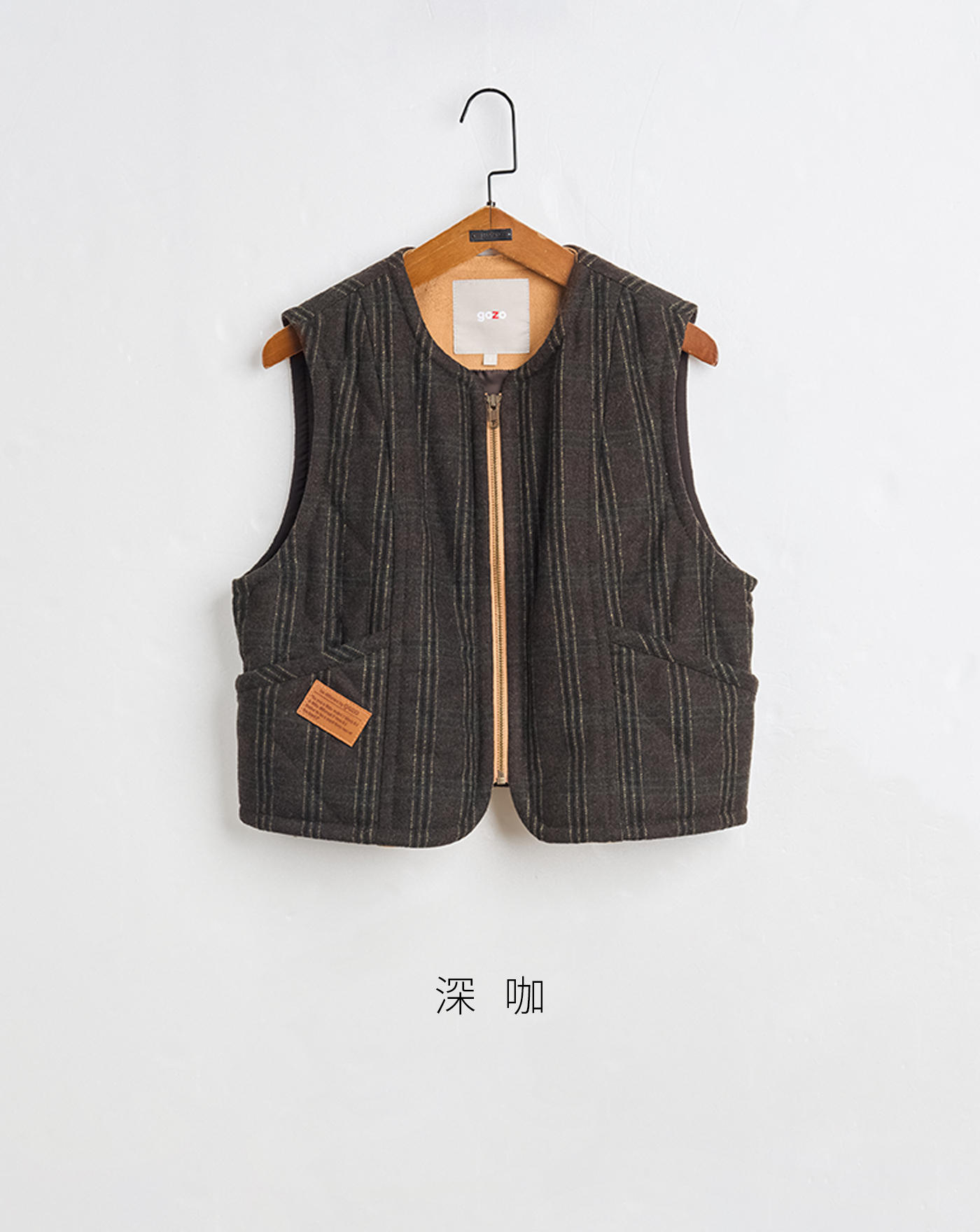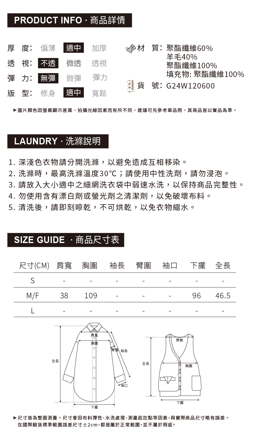 40%羊毛毛料鋪棉背心內拼接搖立絨*洗滌需注意,不可烘乾