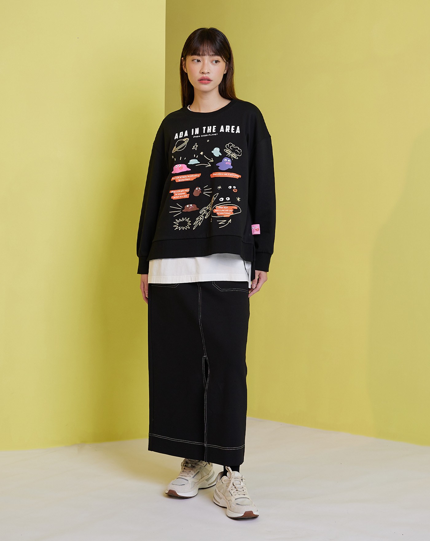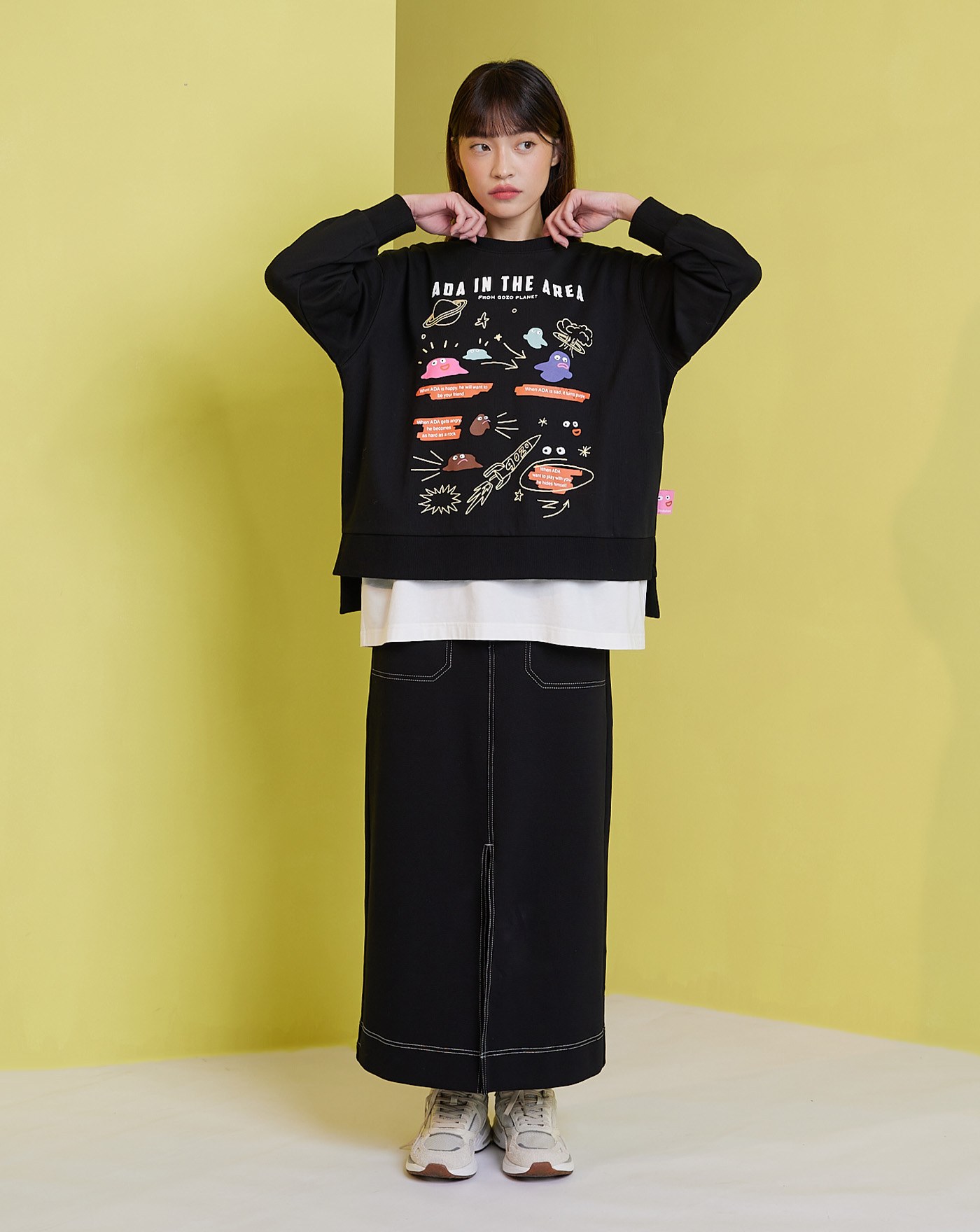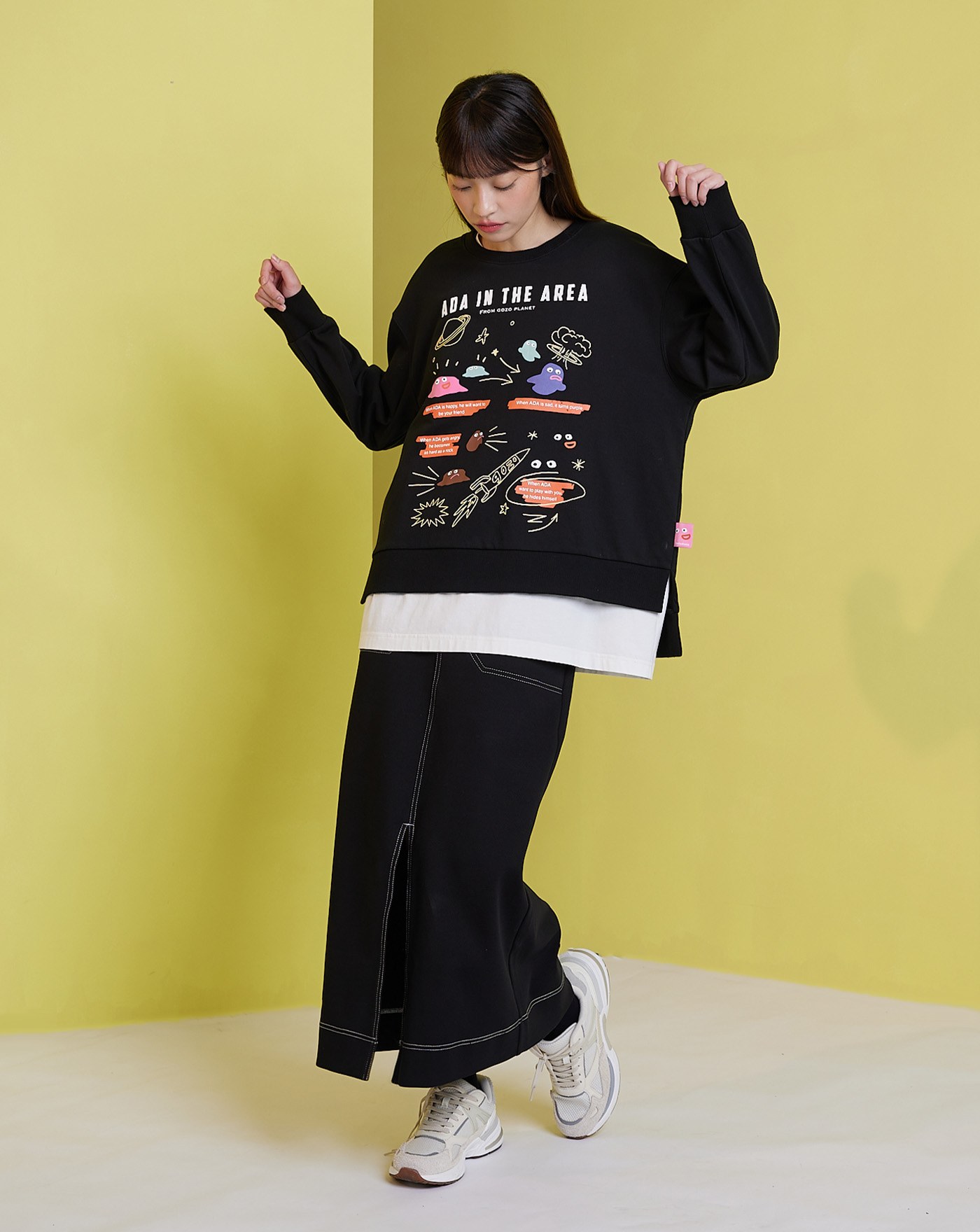 隕石釦條紋毛圈寬袖大學T(兩色)