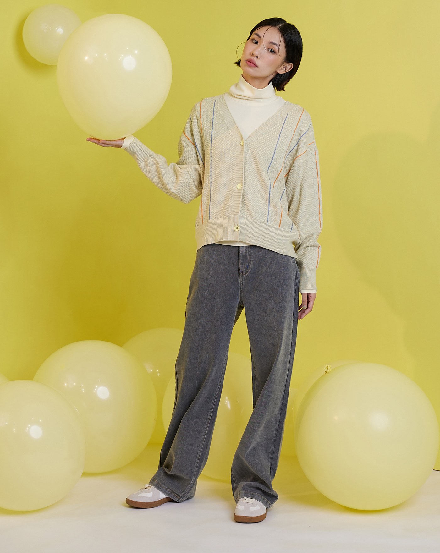 麻花織紋配色仿兔絨開襟外套(兩色)