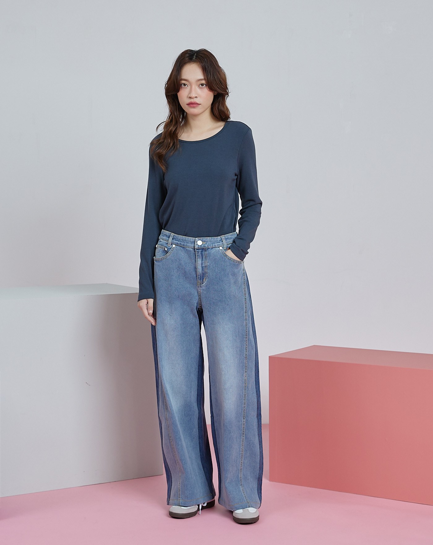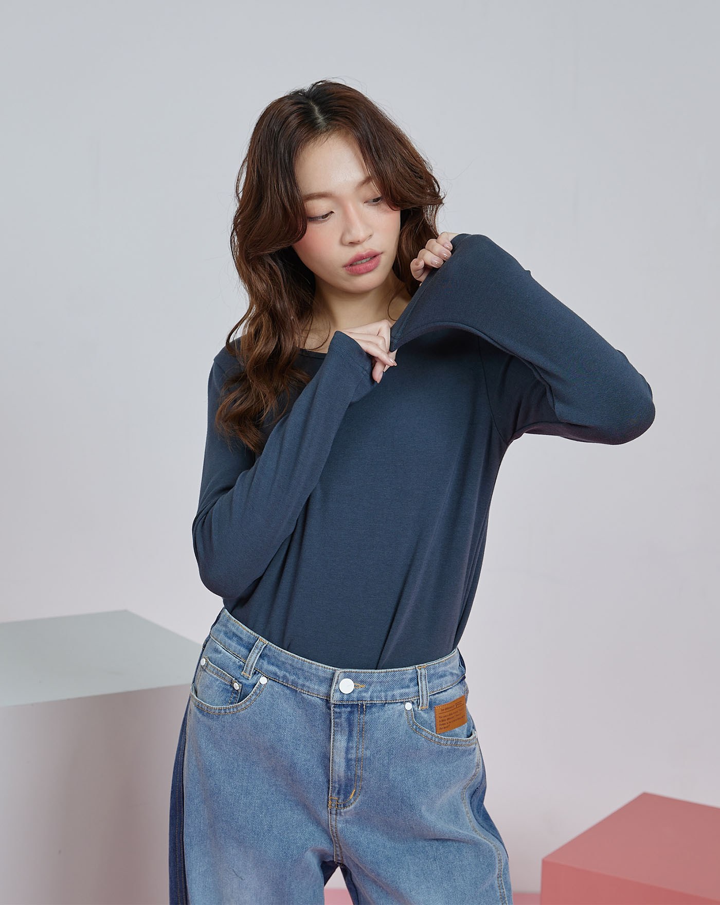◢超Q彈圓領純色長袖內搭上衣(寶寶藍)