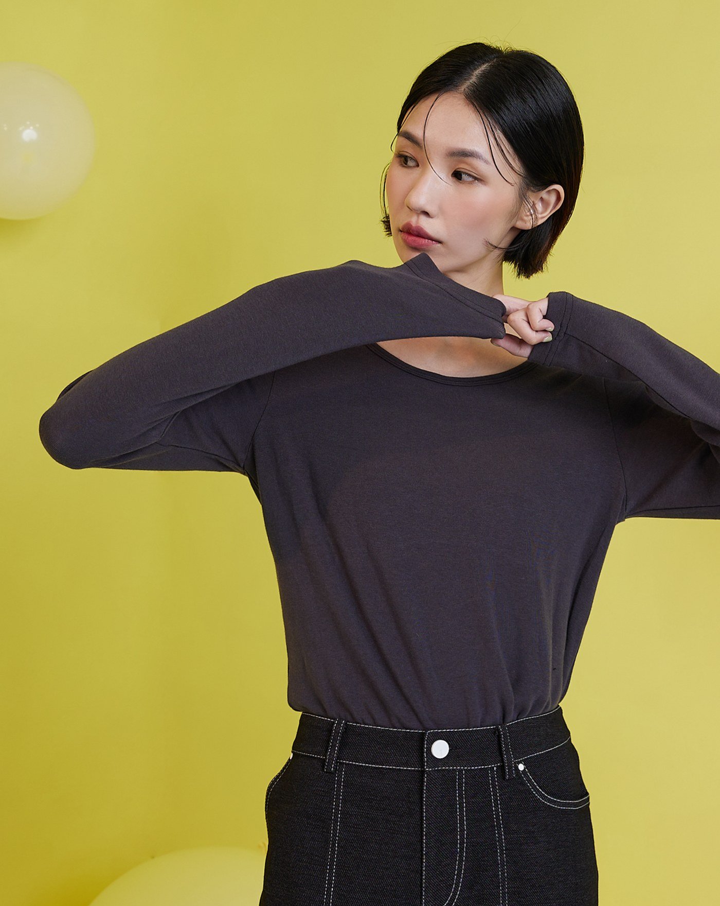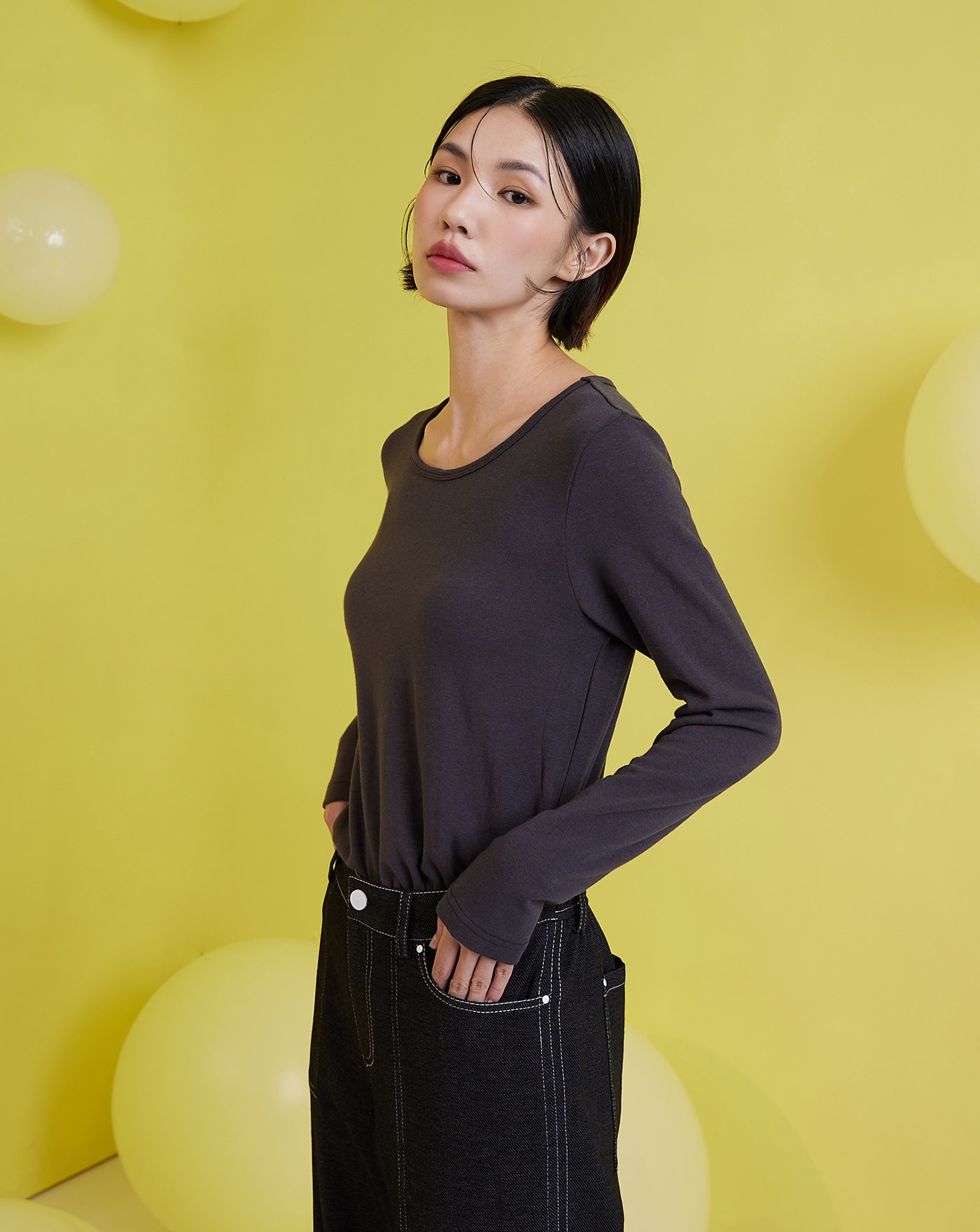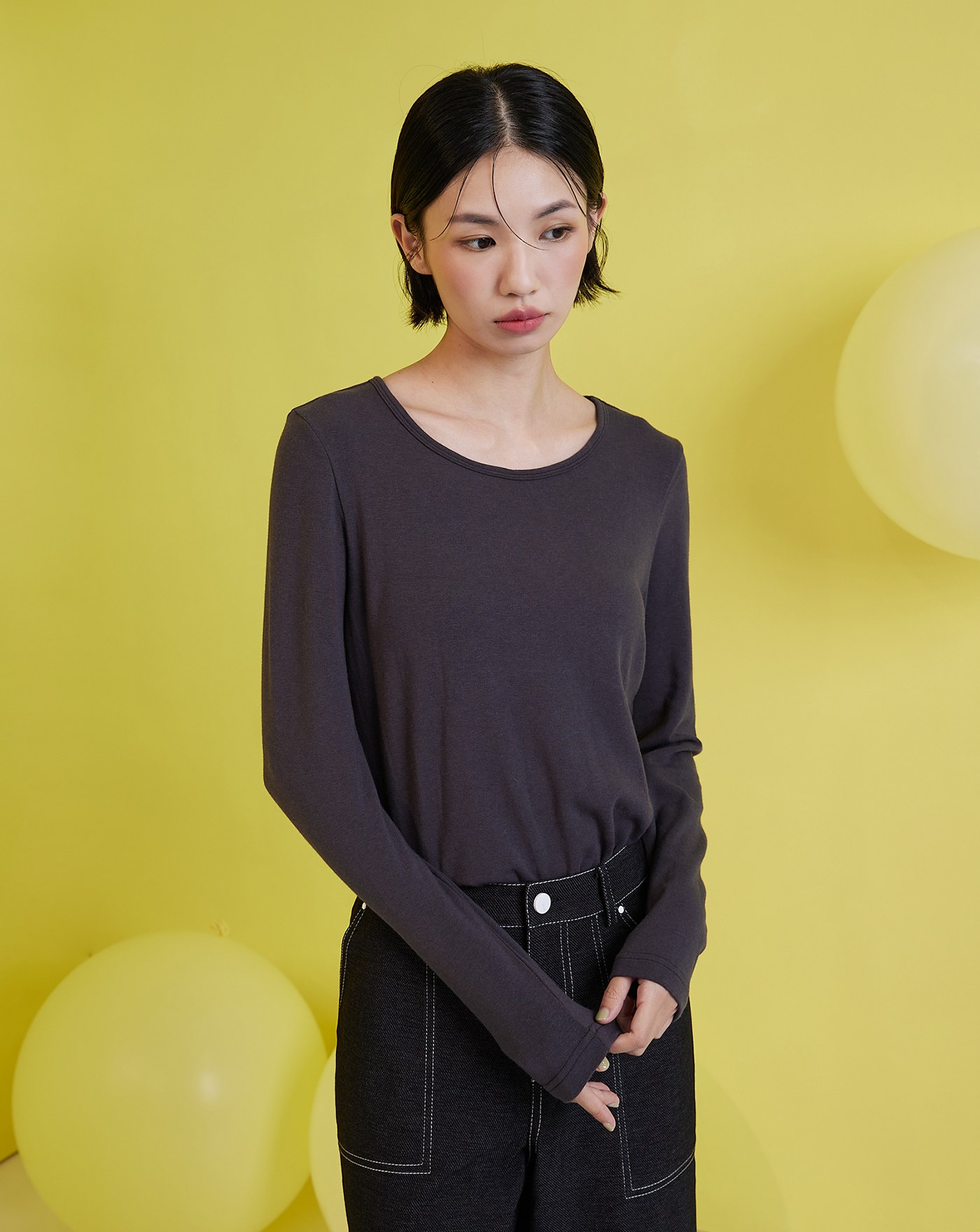 超Q彈圓領純色長袖內搭上衣(兩色)