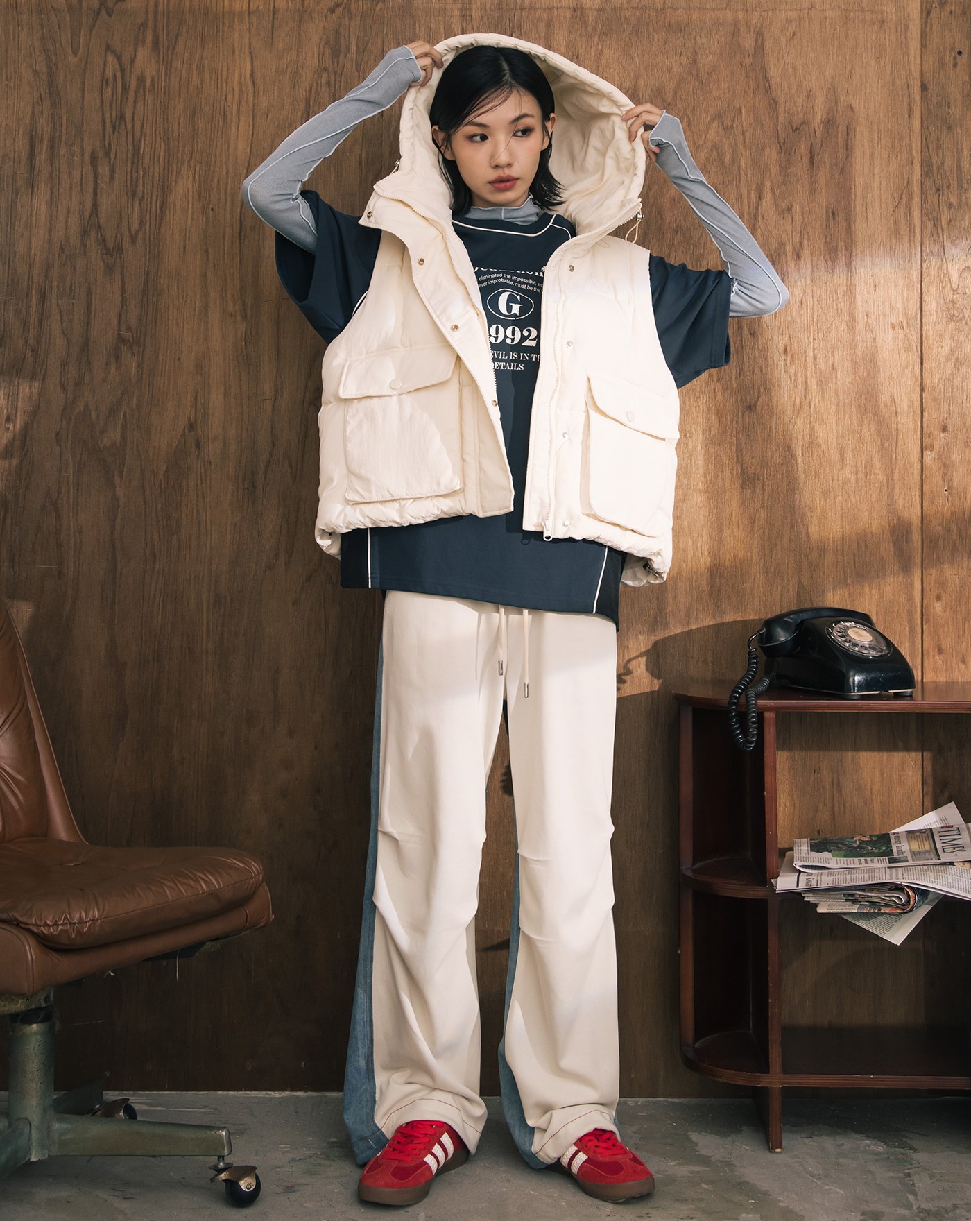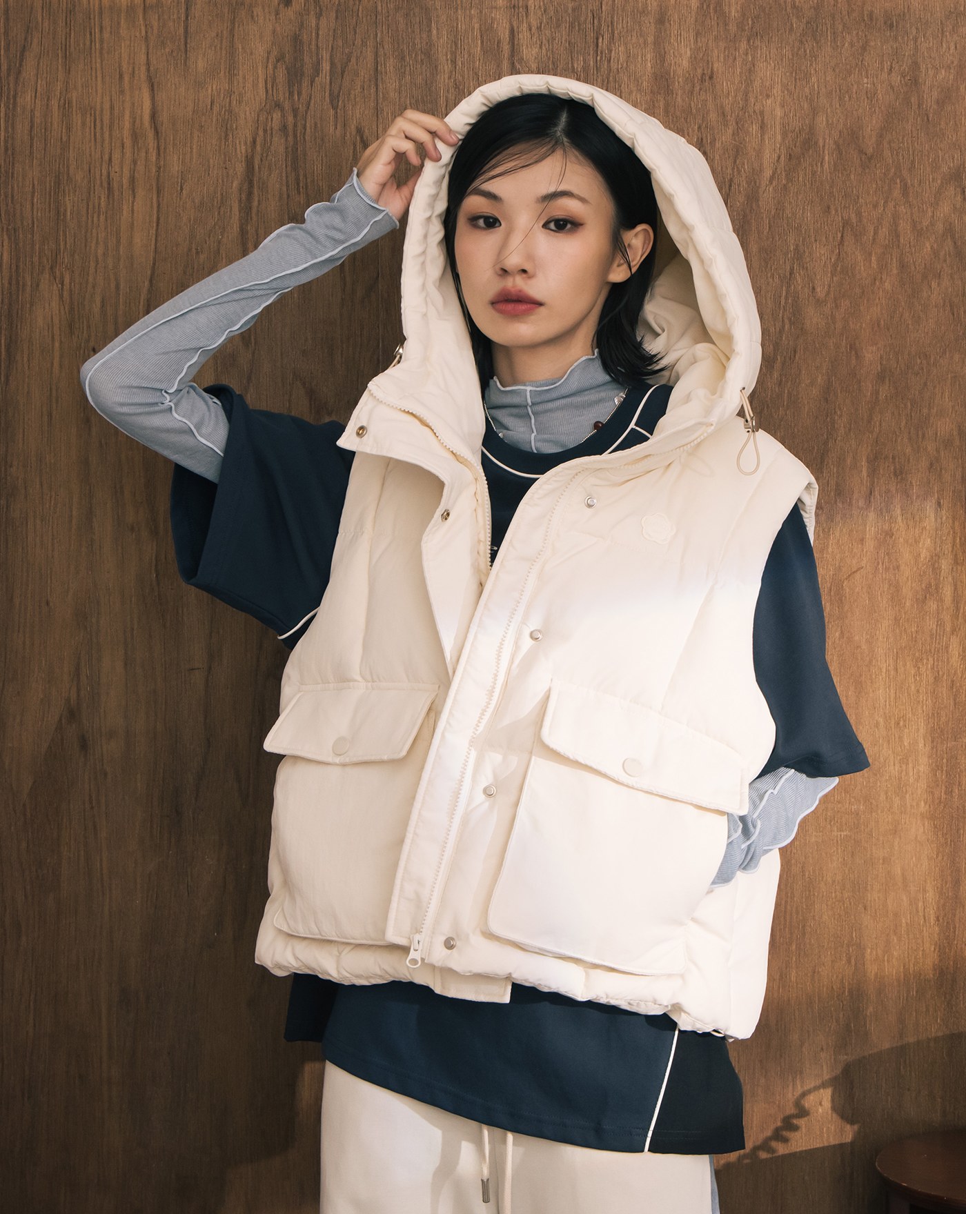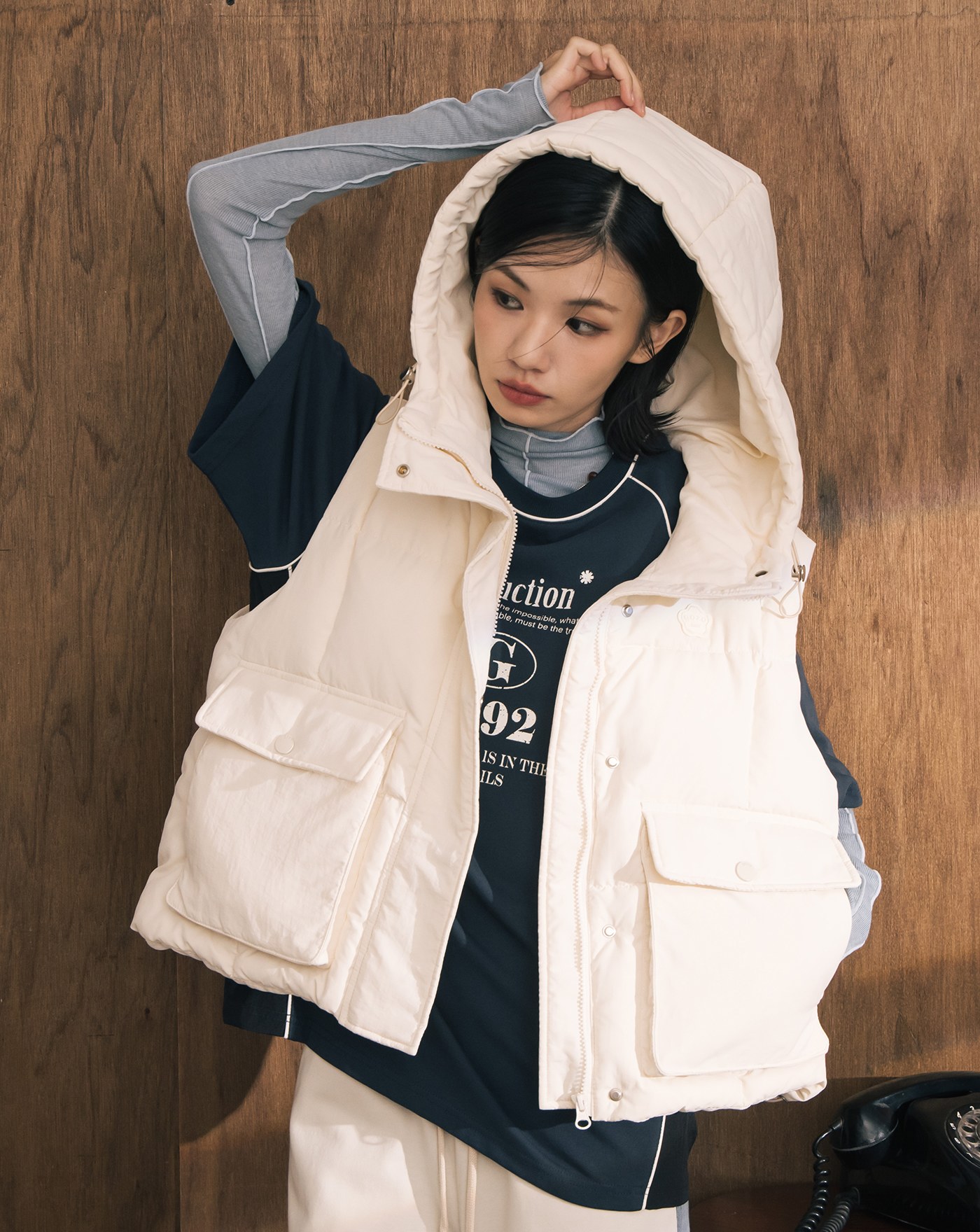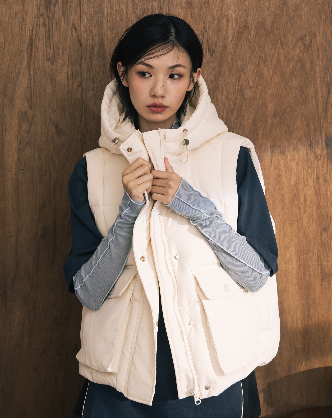 A|雙面穿立領抽繩短版背心(兩色)