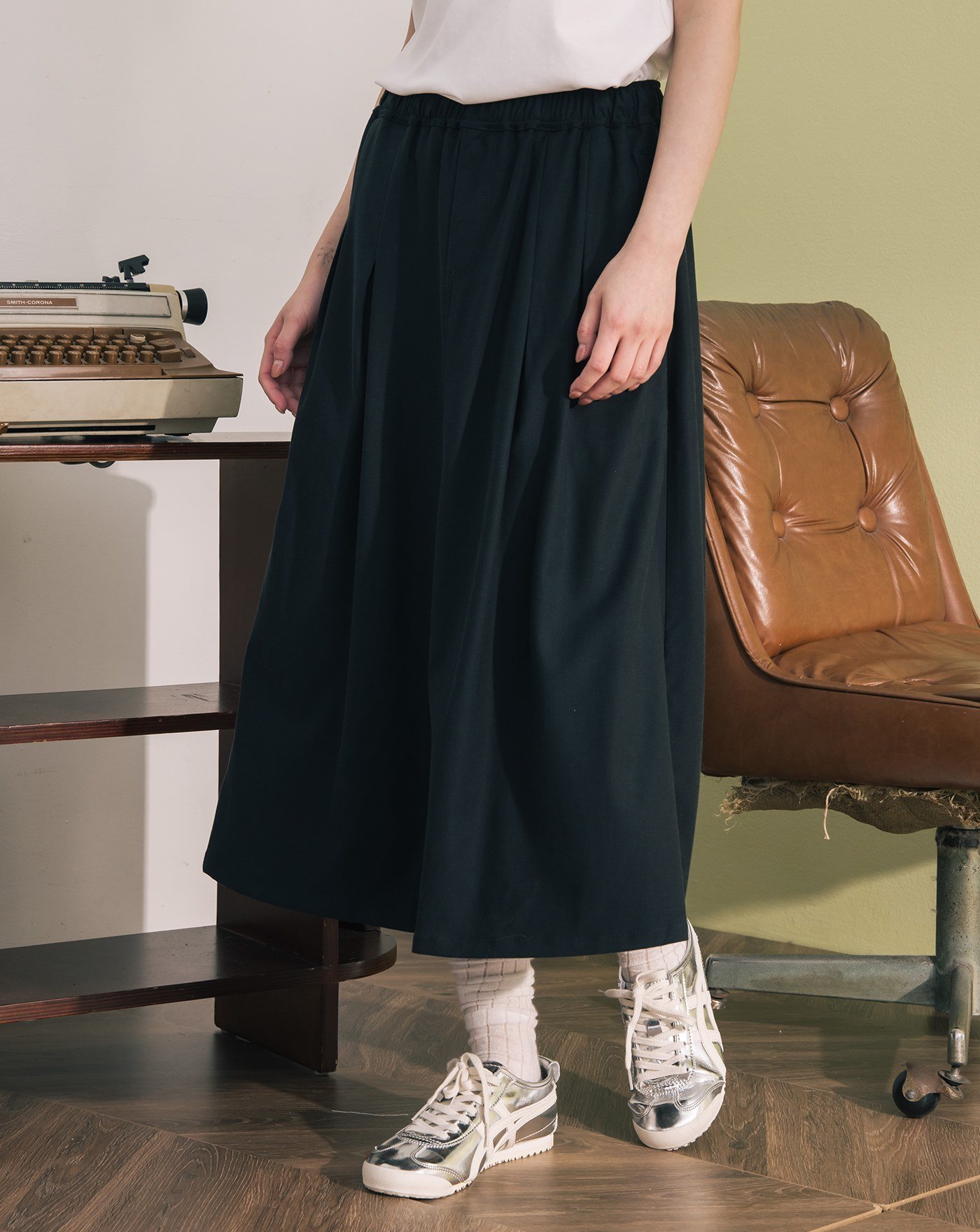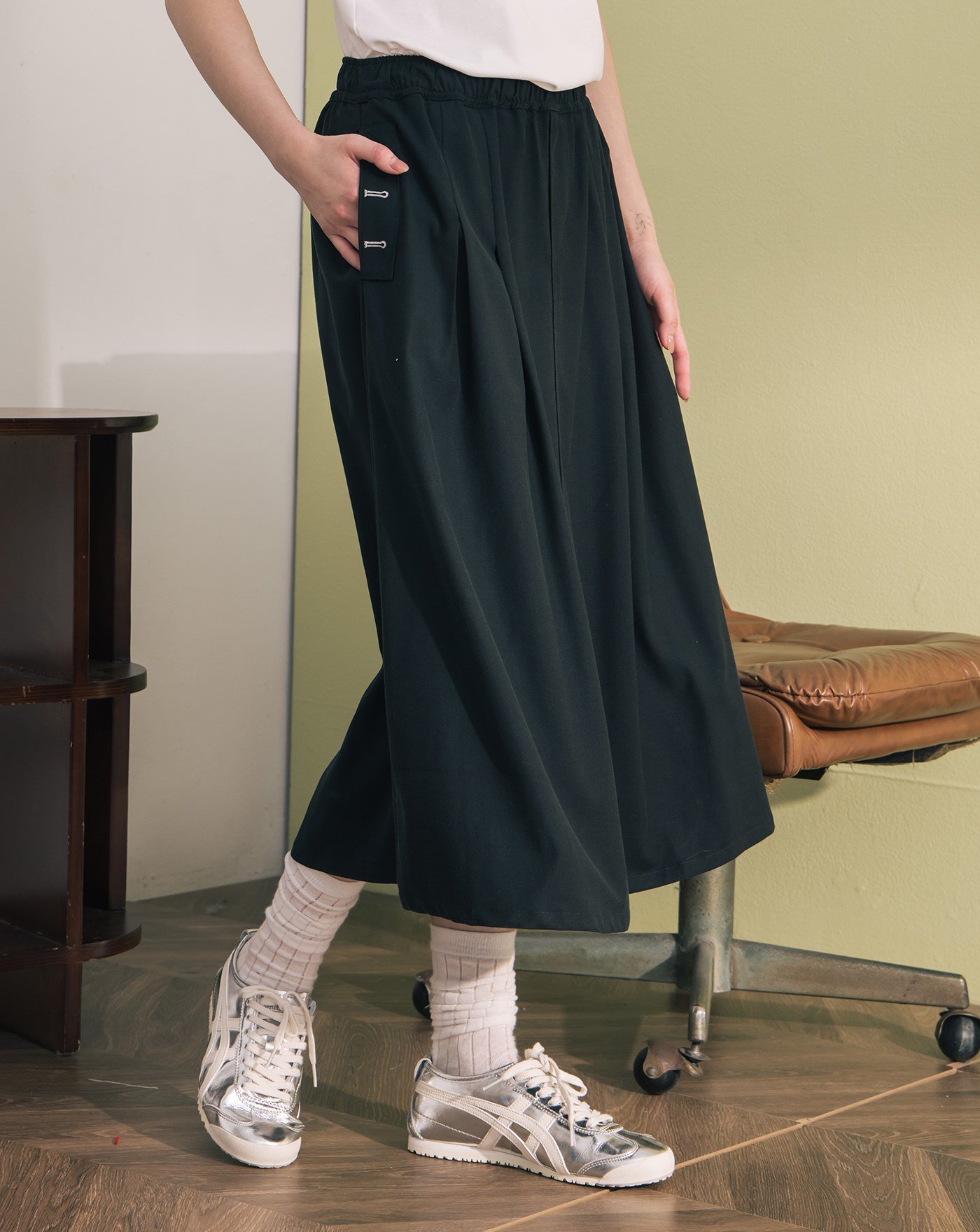 涼感天絲不對稱裙片鬆緊褲裙(兩色)