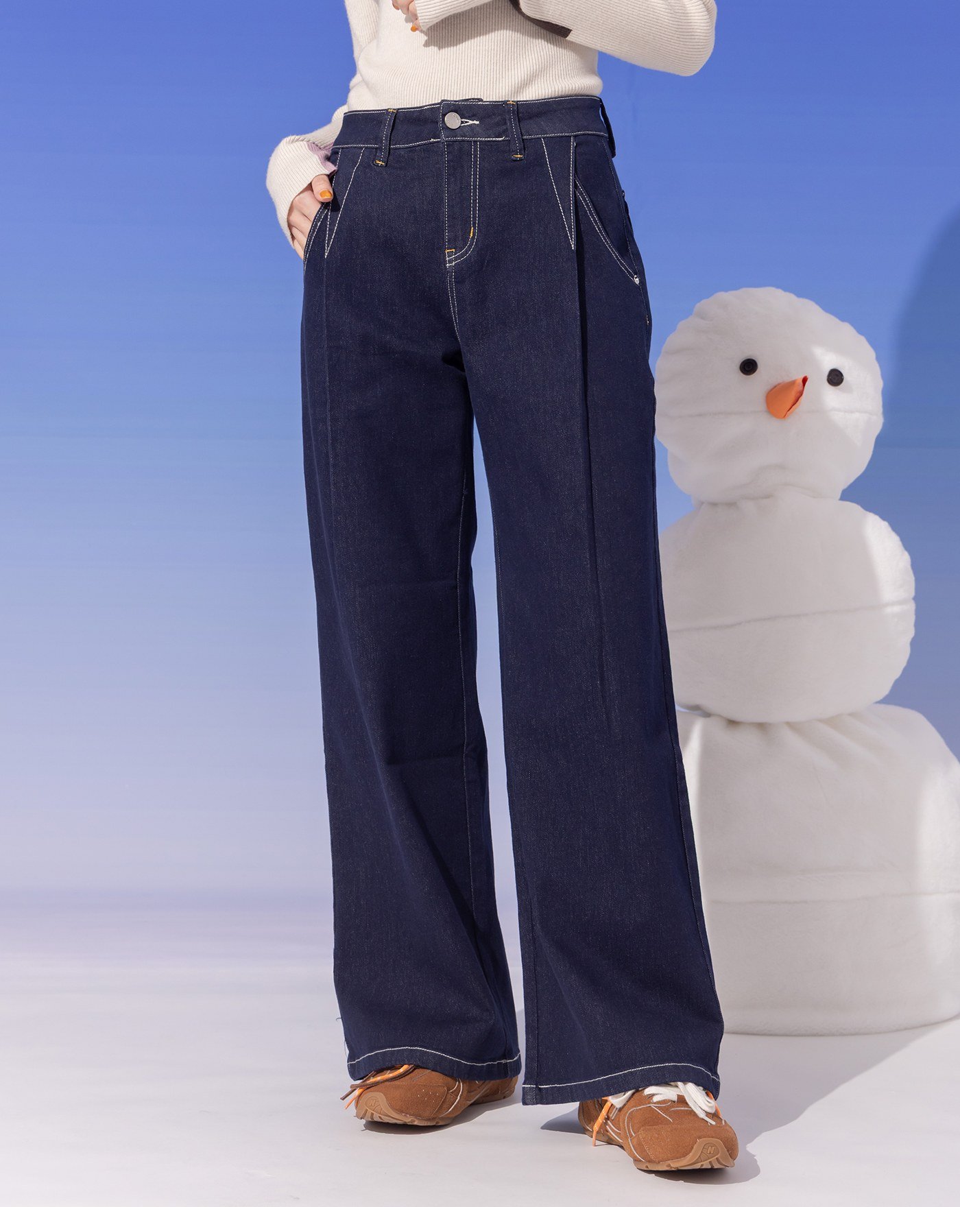 A|復古風線條刷色水洗牛仔寬褲(兩色)