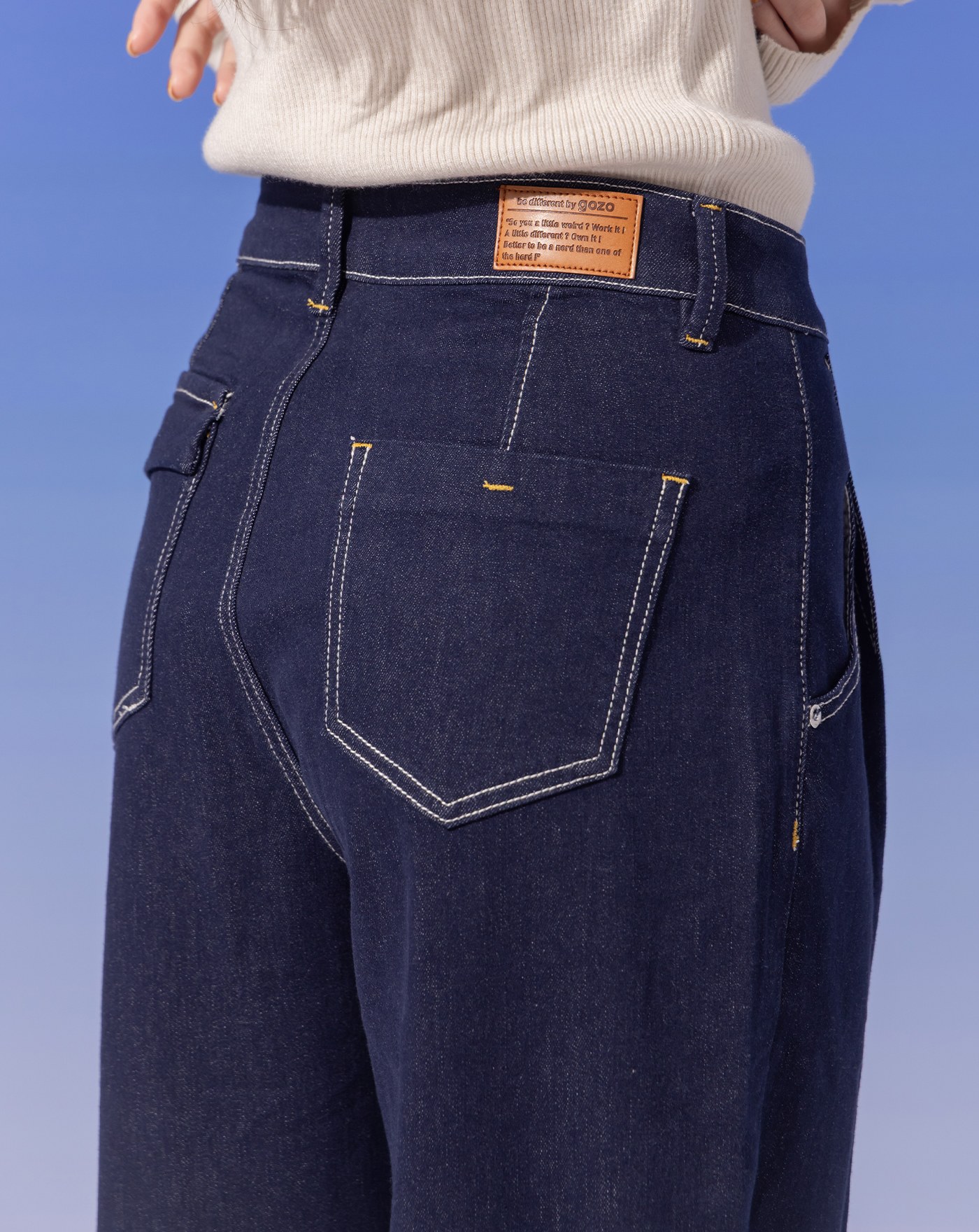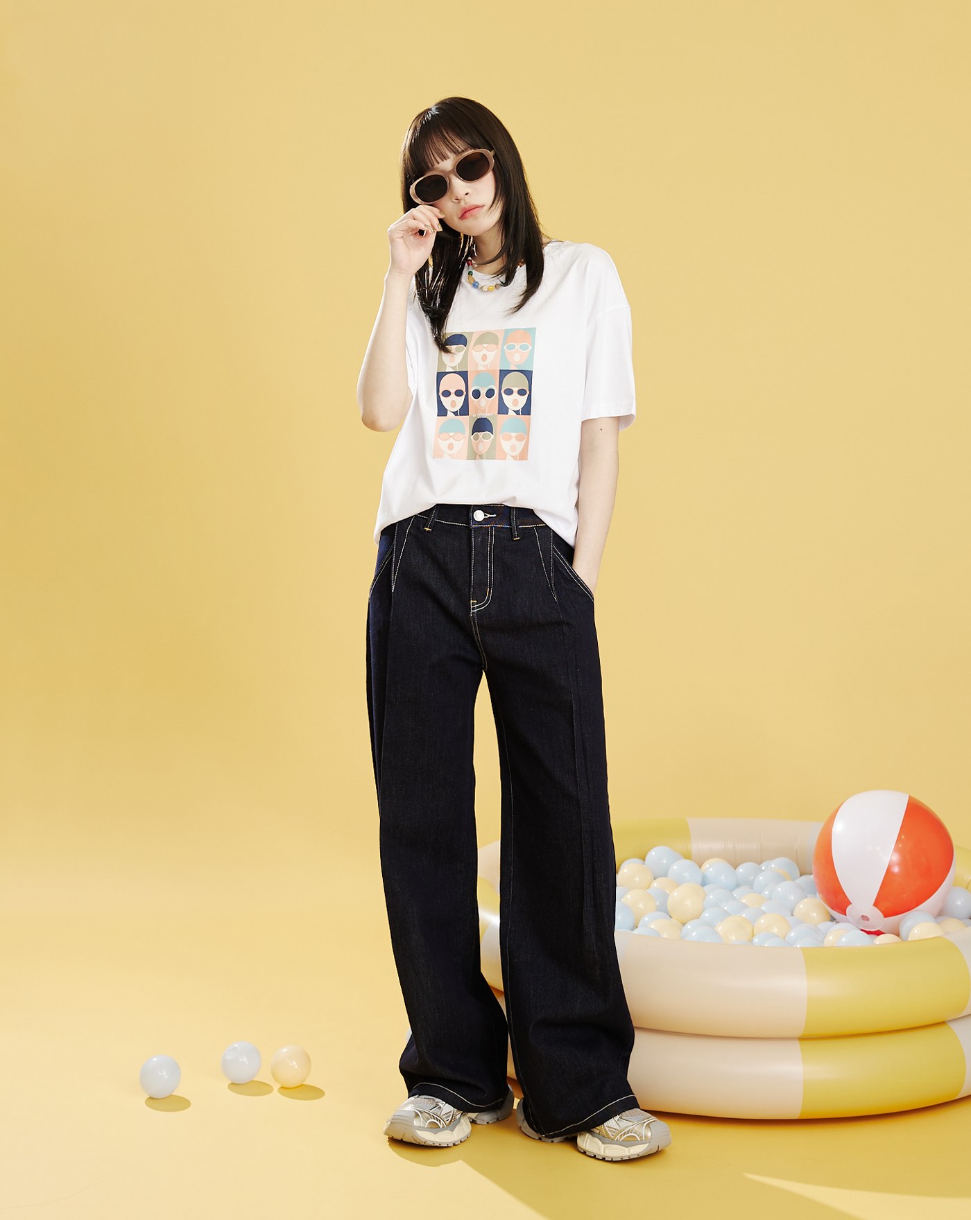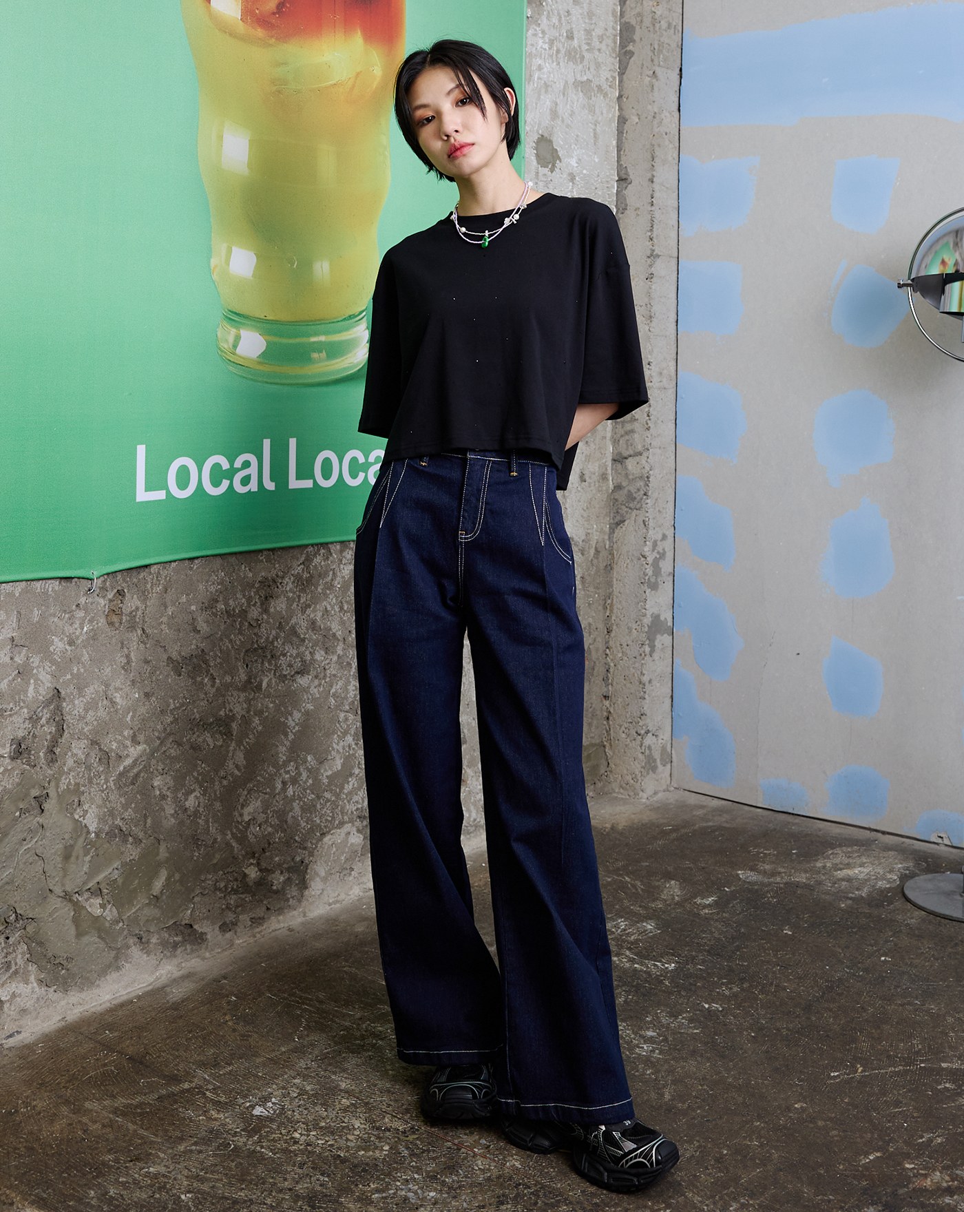 A|好比例異材質拼接水洗牛仔寬褲(兩色)