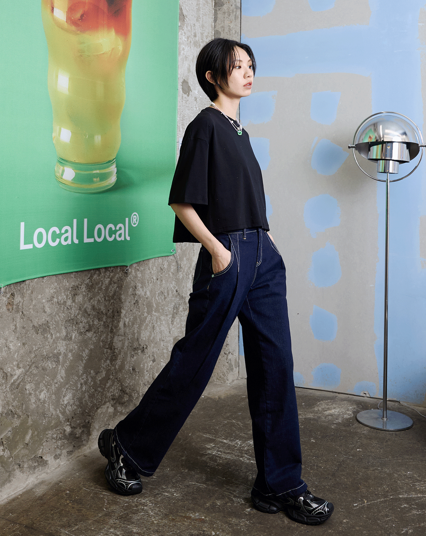 A|好比例異材質拼接水洗牛仔寬褲(兩色)