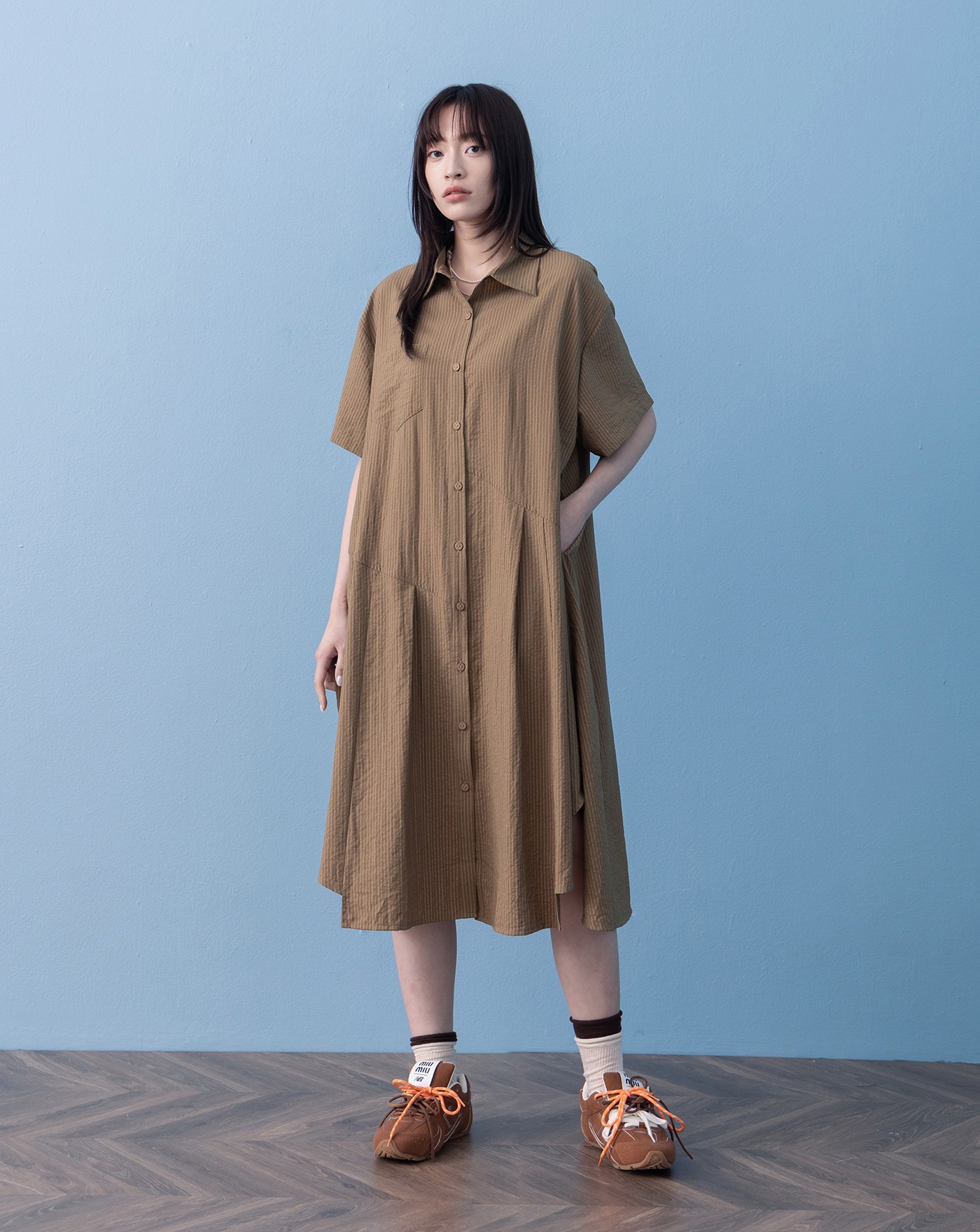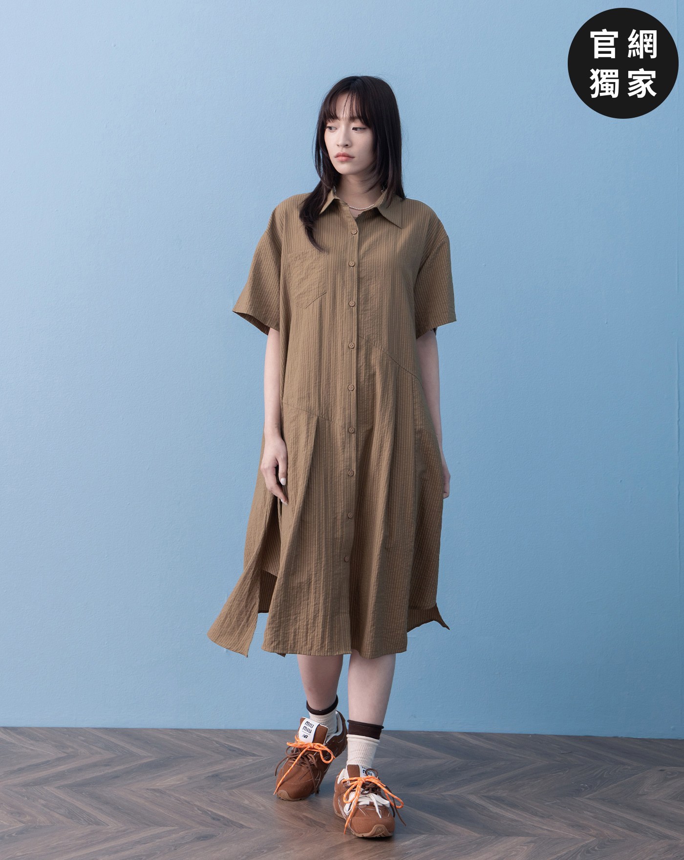 ➤條紋不對稱打褶下擺襯衫洋裝(兩色) NT$3,180 NT$ 1,590 顏色 深卡其黑色 尺寸 F 數量 貨到通知 加入LINE 願望清單 優惠活動 熱銷商品 熱門標籤 官網限定SO COOL衣藏所天絲 RELATED 相關商品 空氣感澎澎大腸髮圈(三色) NT$350 NT$280