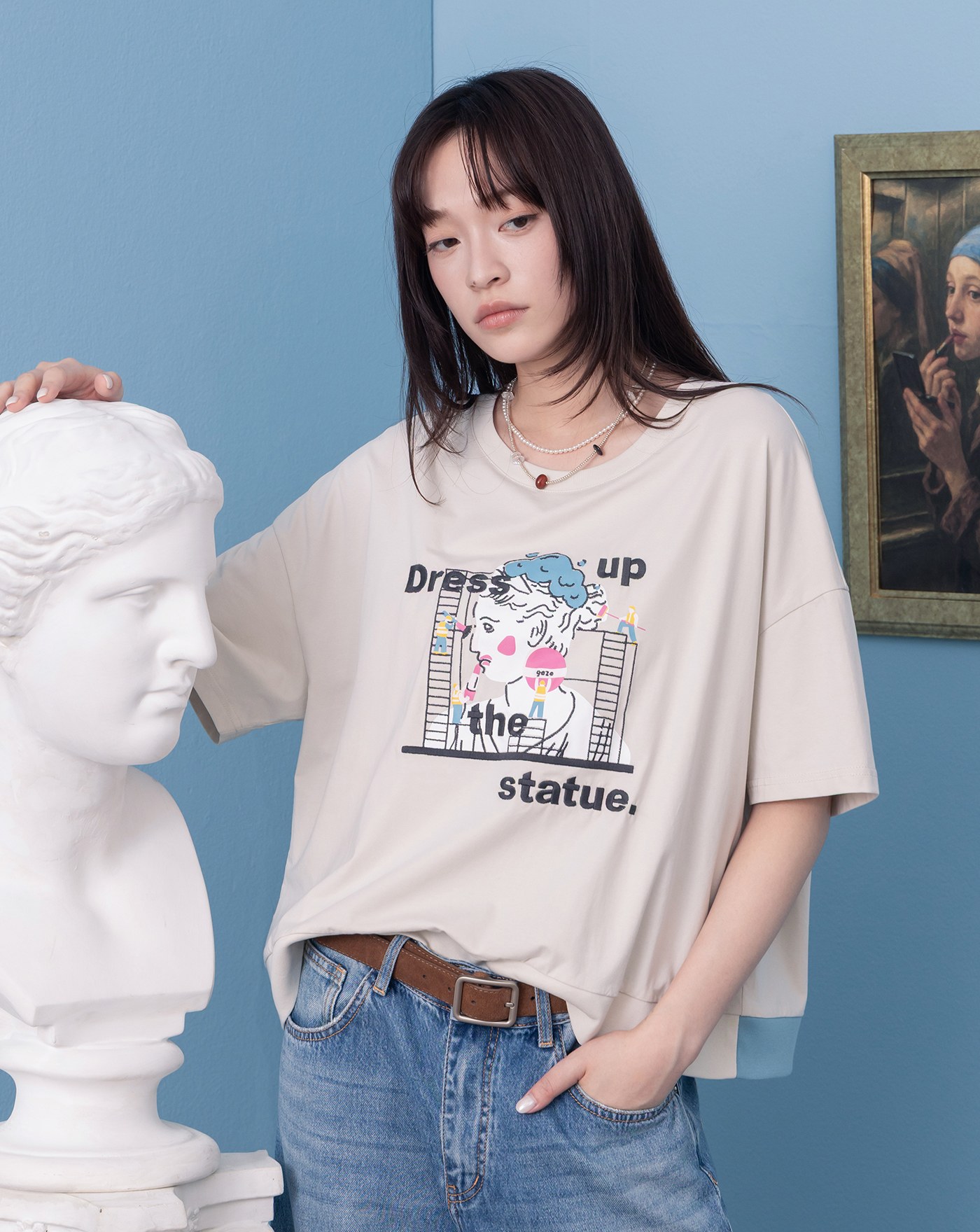 石像開派對澎袖涼感T恤(兩色)