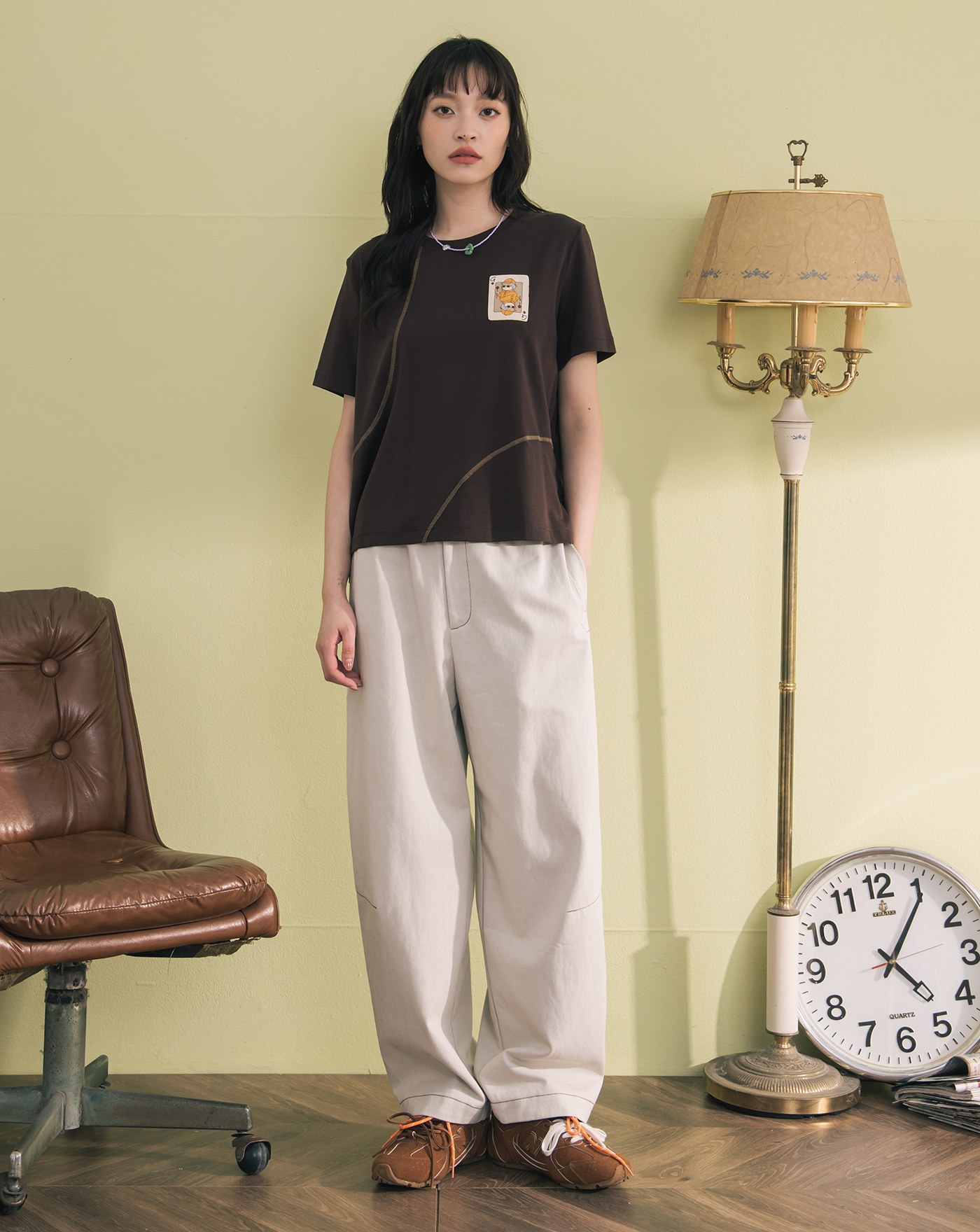 偵探印花假兩件造型涼感T恤(兩色)