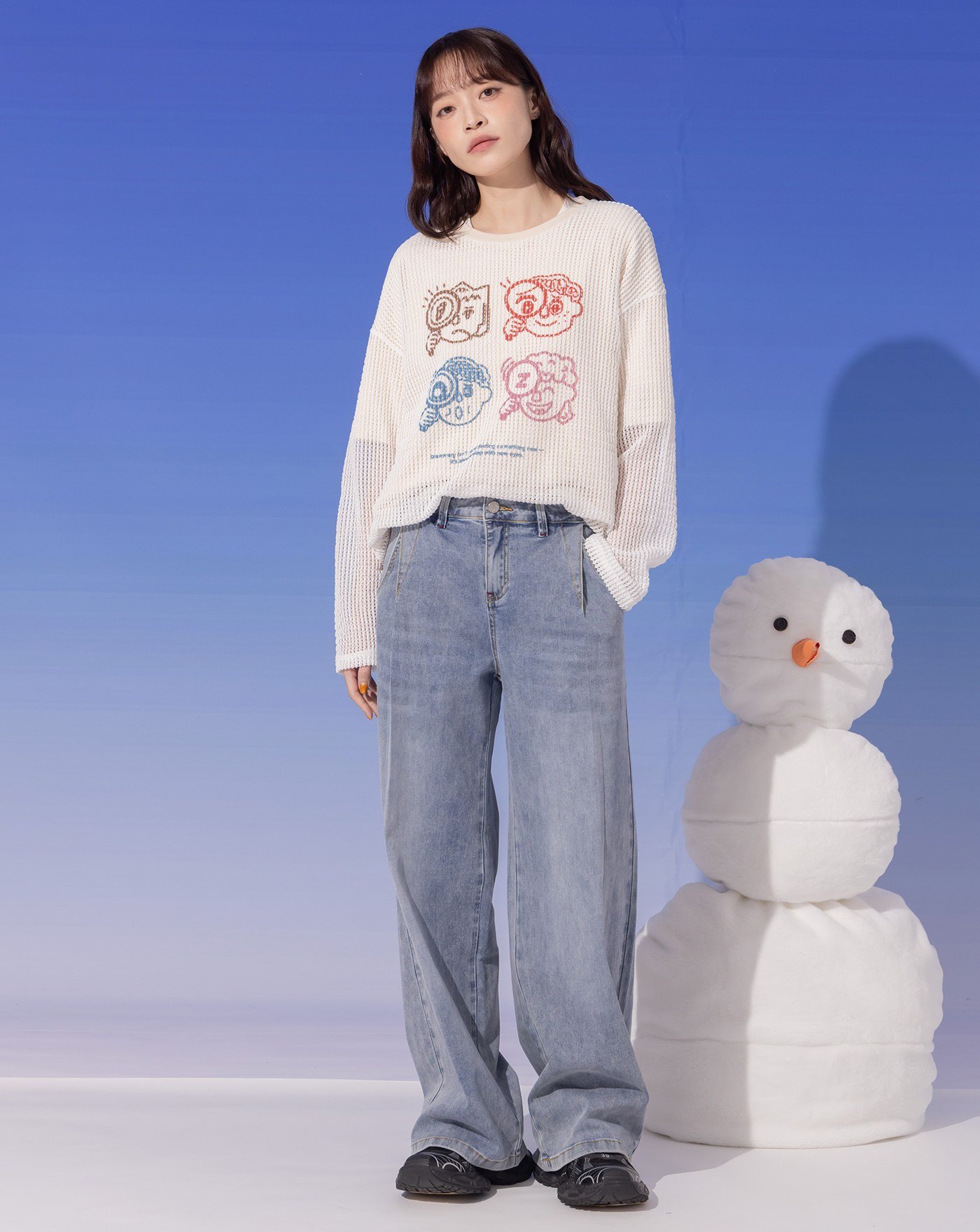 【預購】◢3.0 零著感Q彈打褶牛仔寬褲(淺藍)