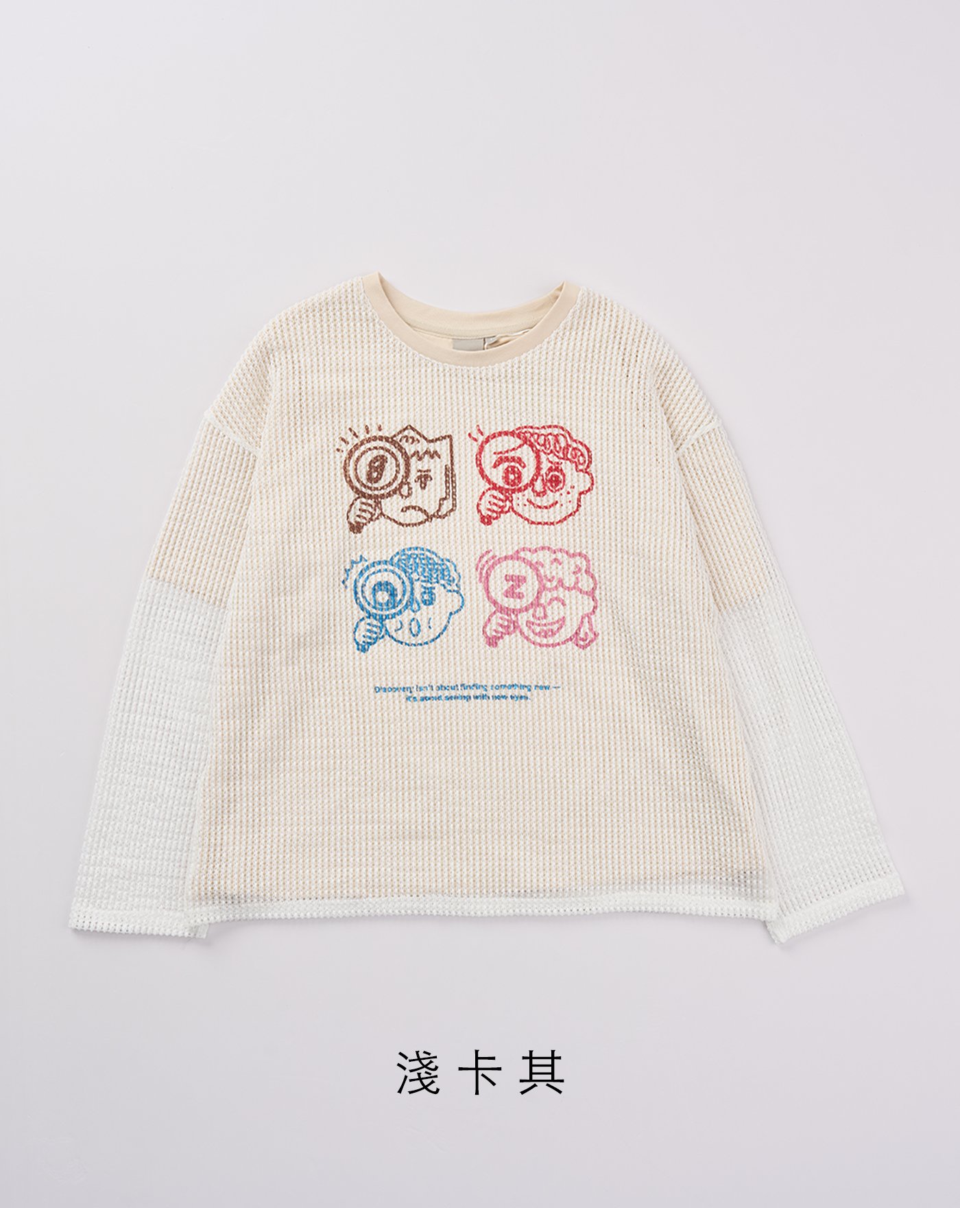 偵探圖騰印花配色拼接長袖T恤(兩色)