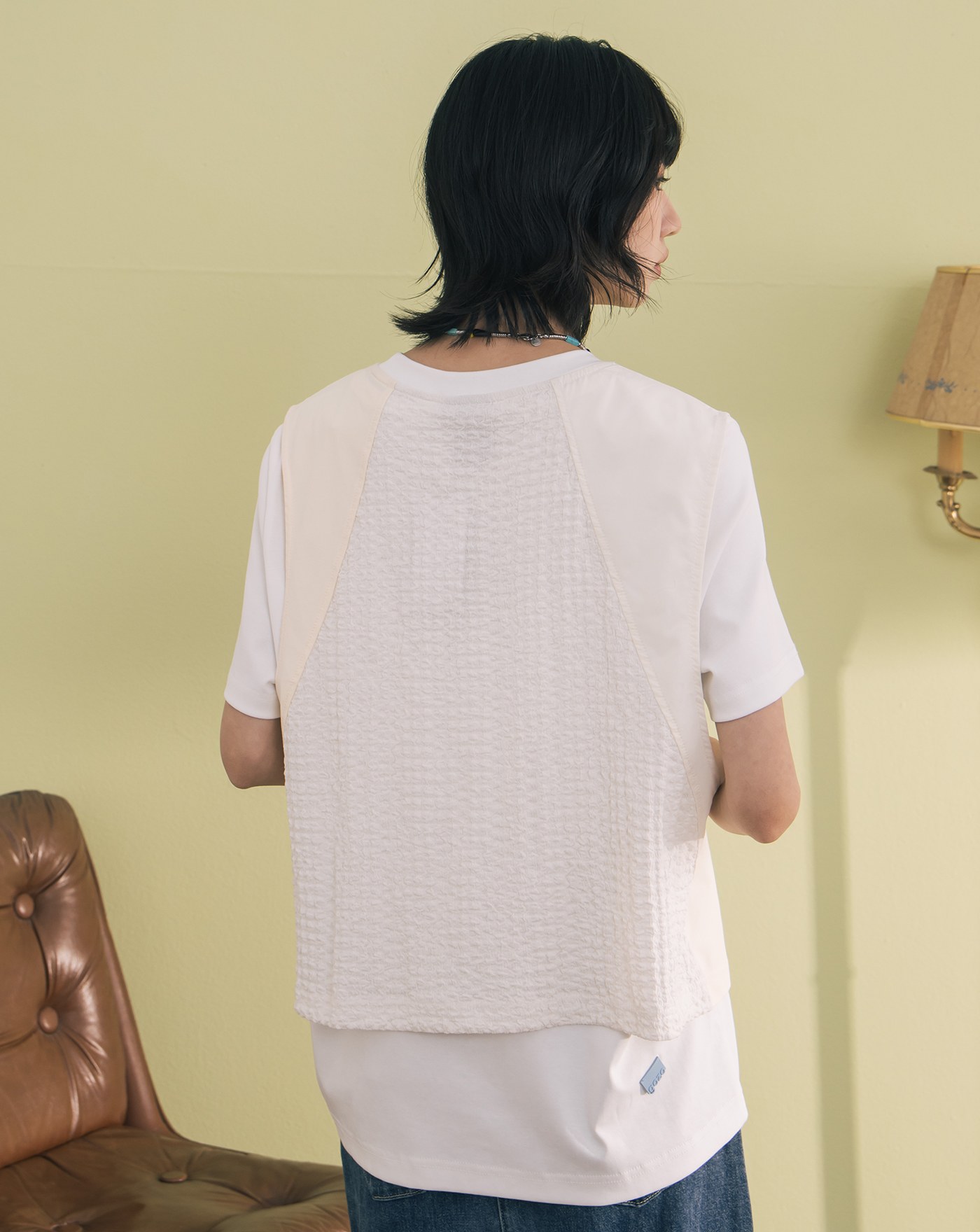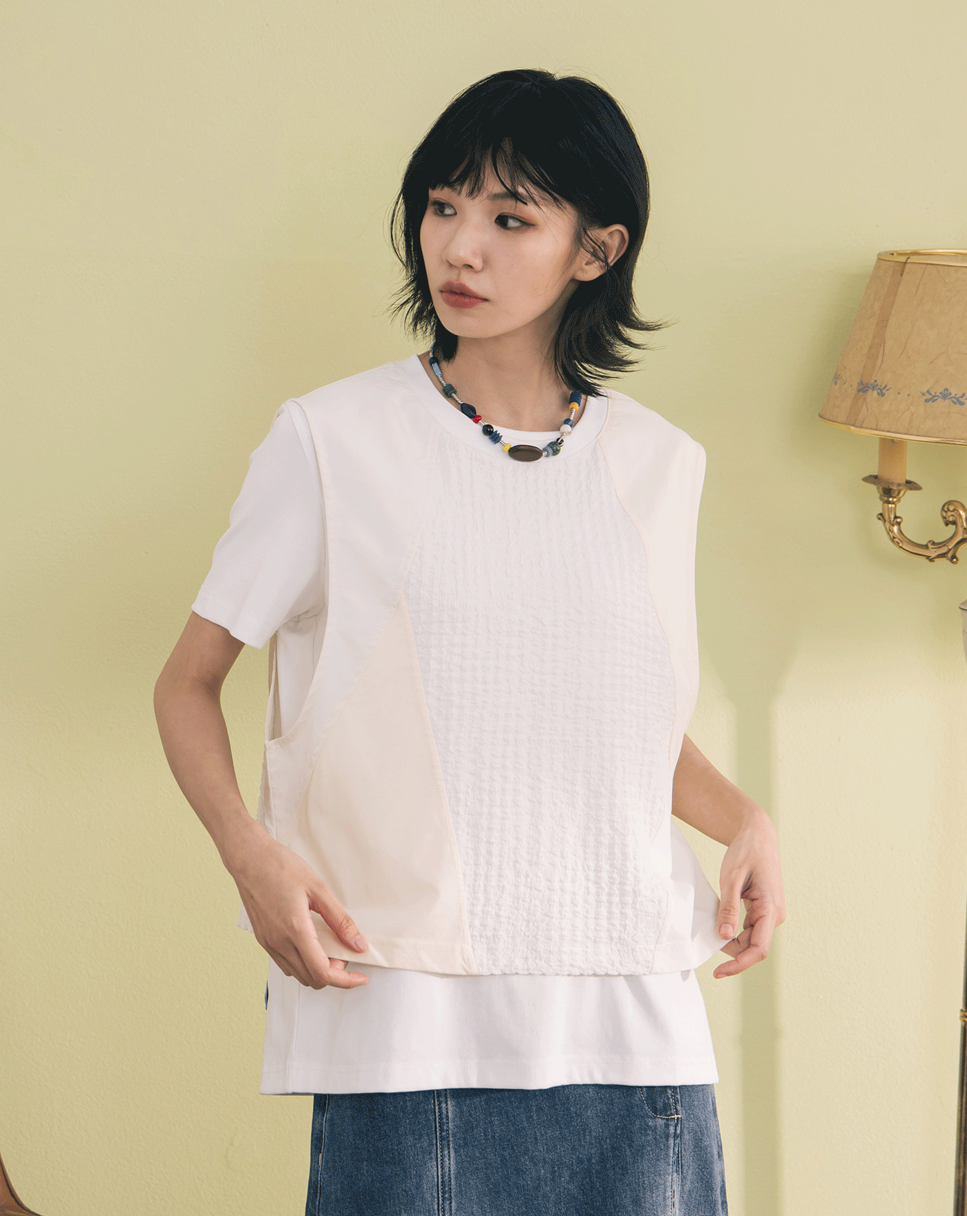 針織背心刺繡火山甜點兩件式T恤(兩色)