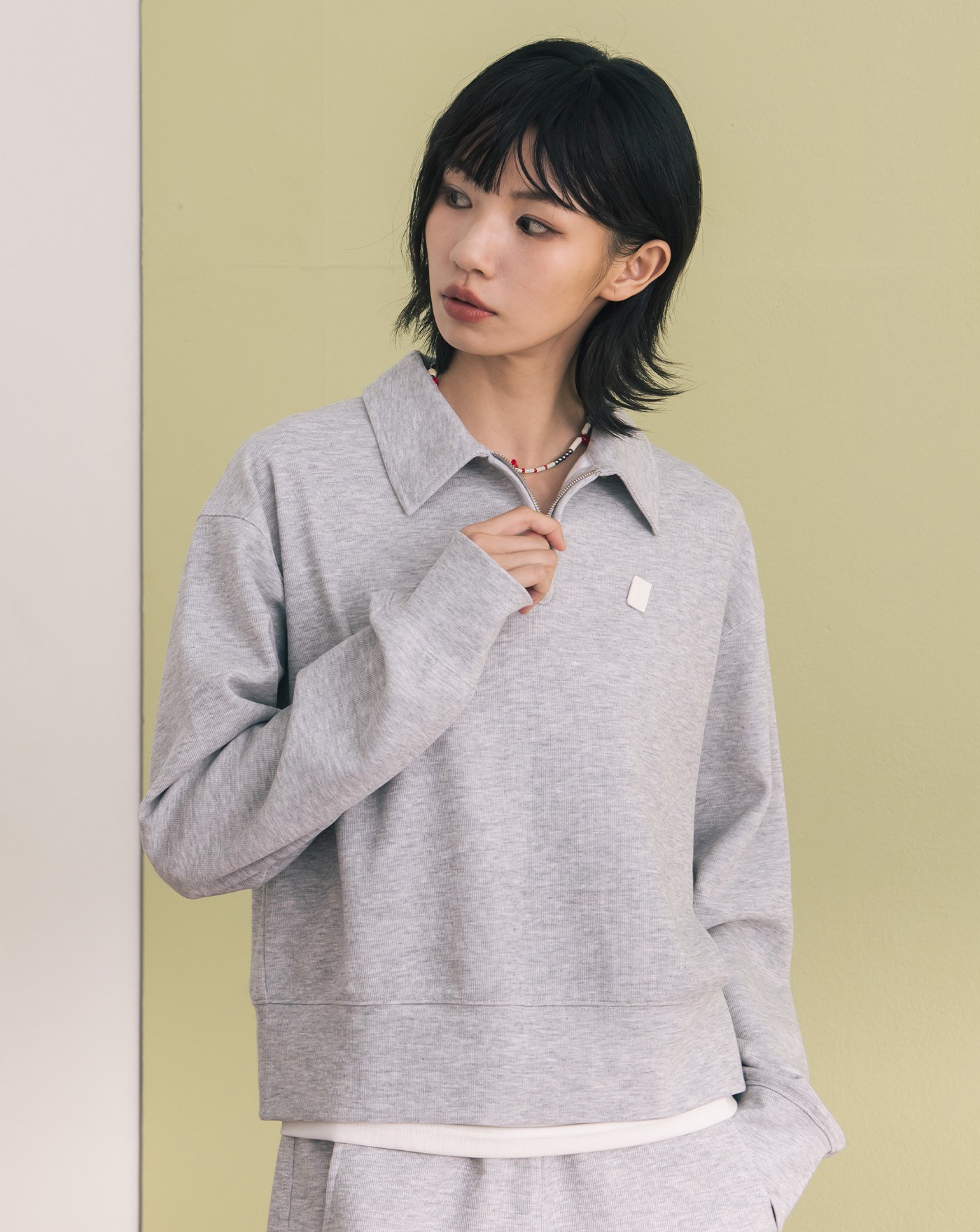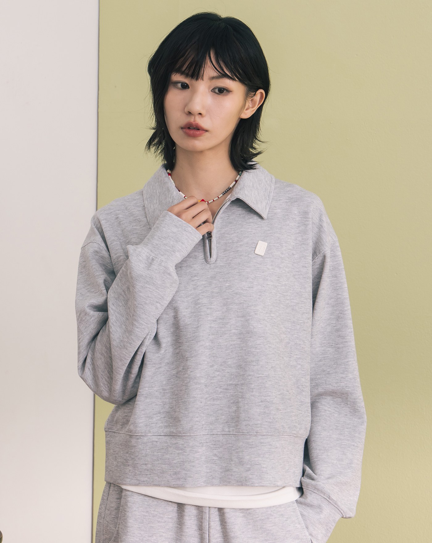 標語造型剪接拉鍊polo領上衣(兩色)