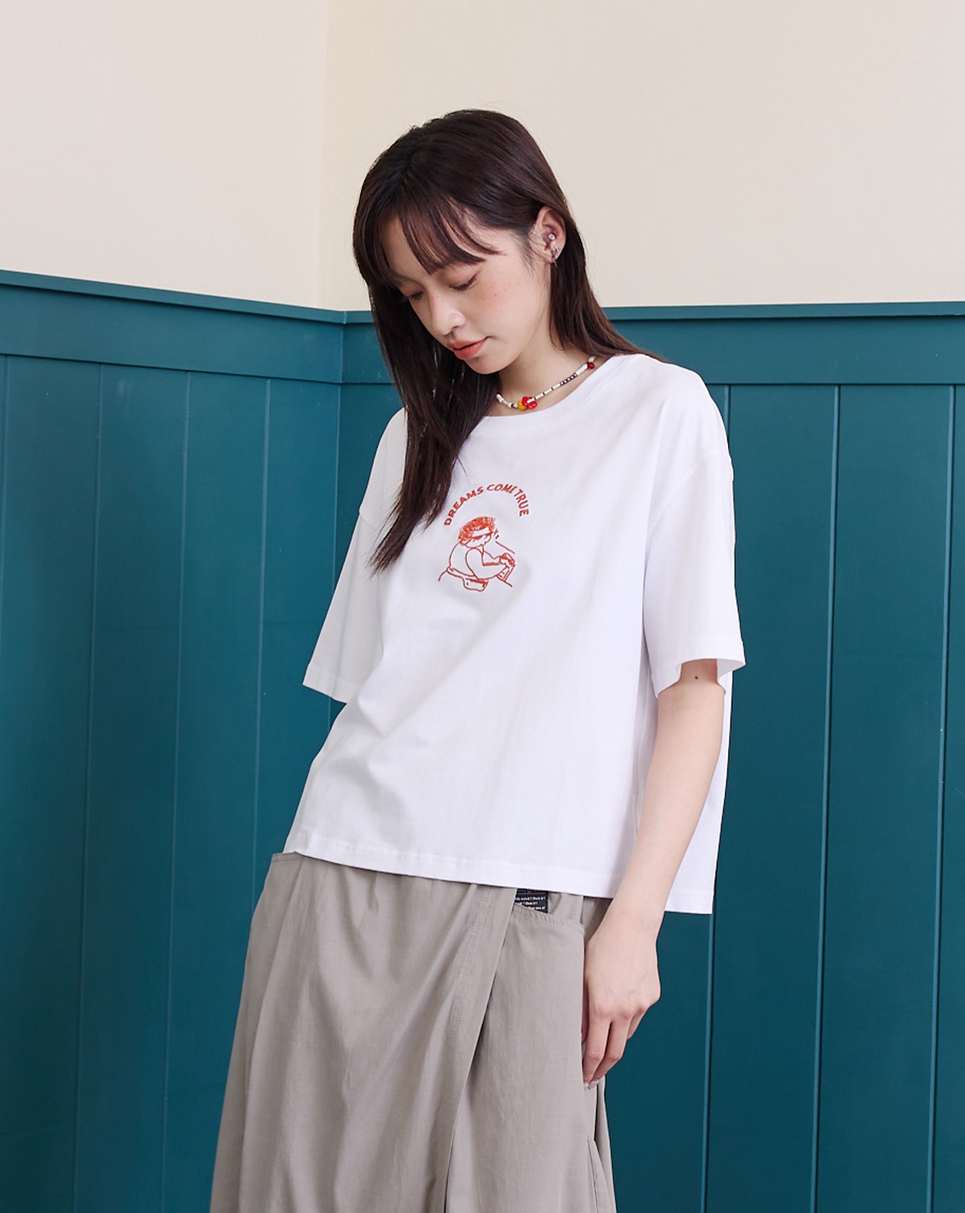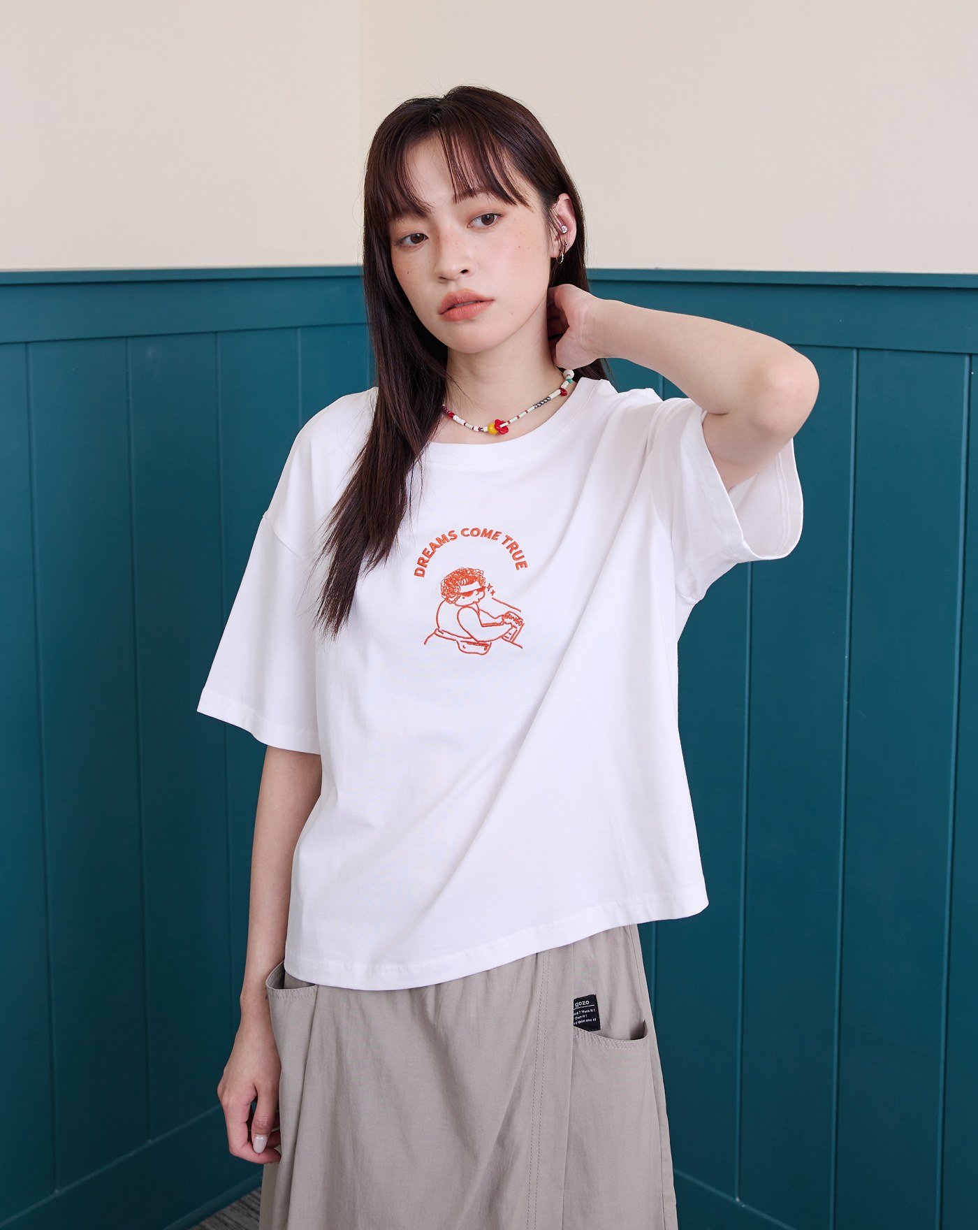 ➤抗皺插畫印花寬鬆涼感T恤(兩色)