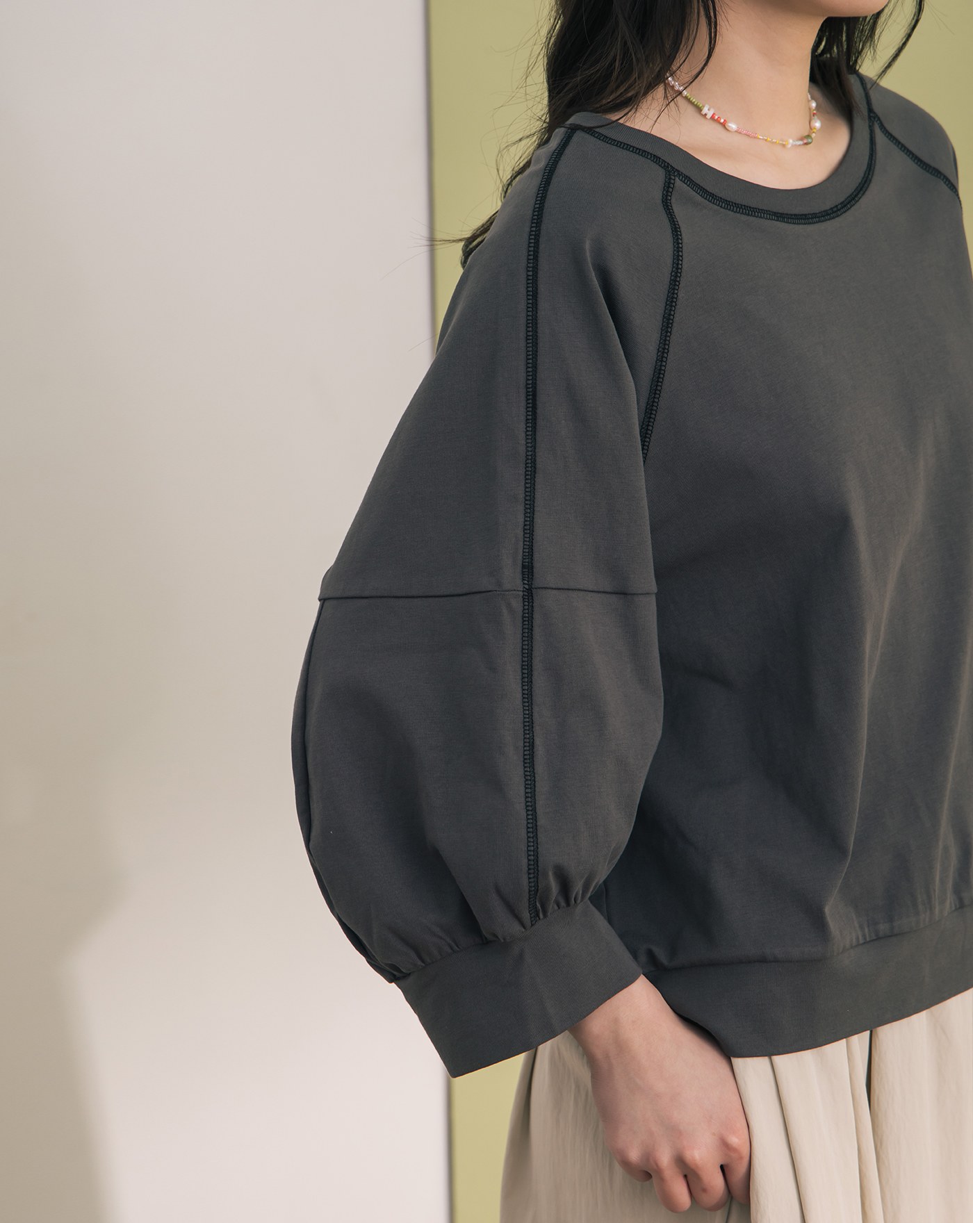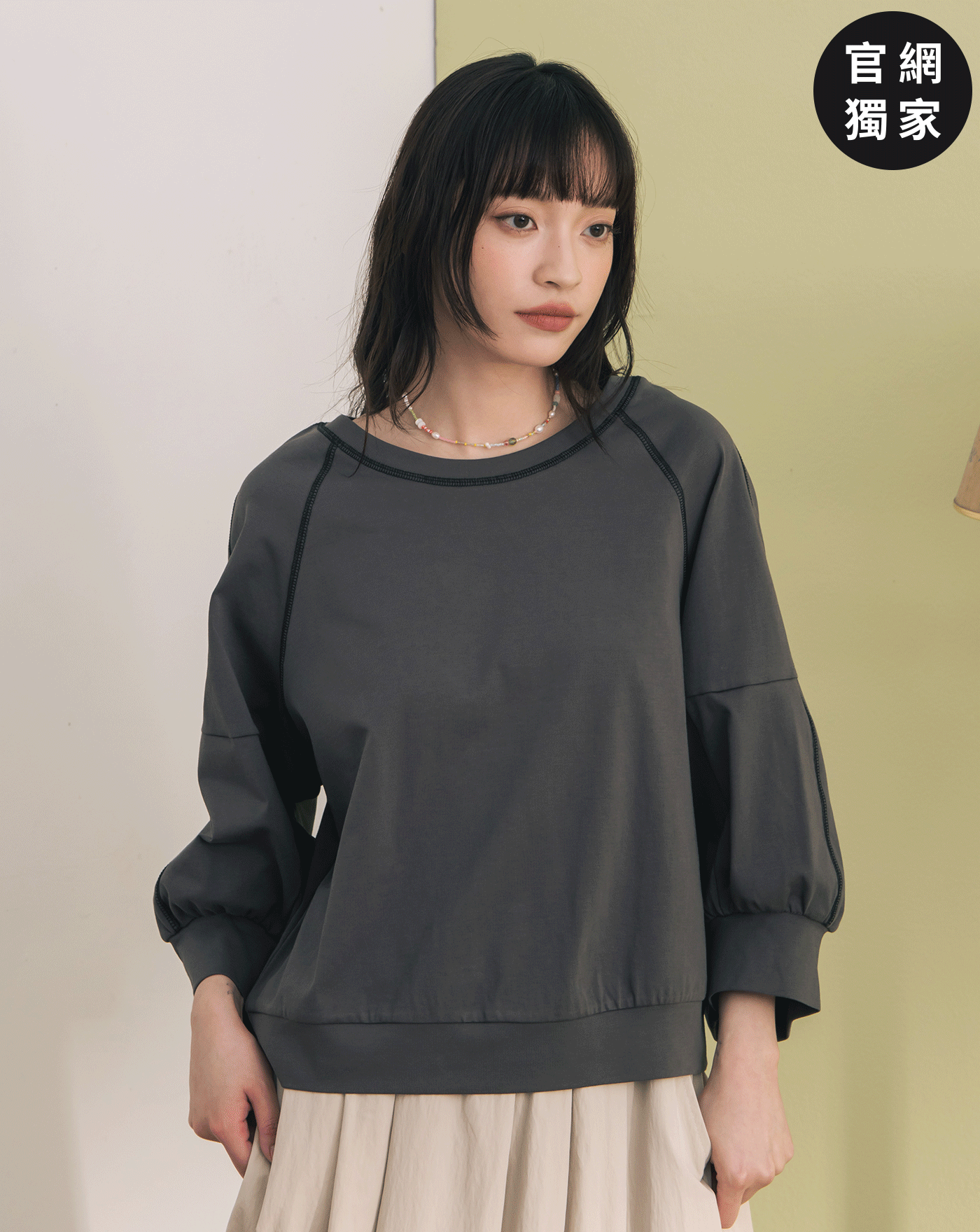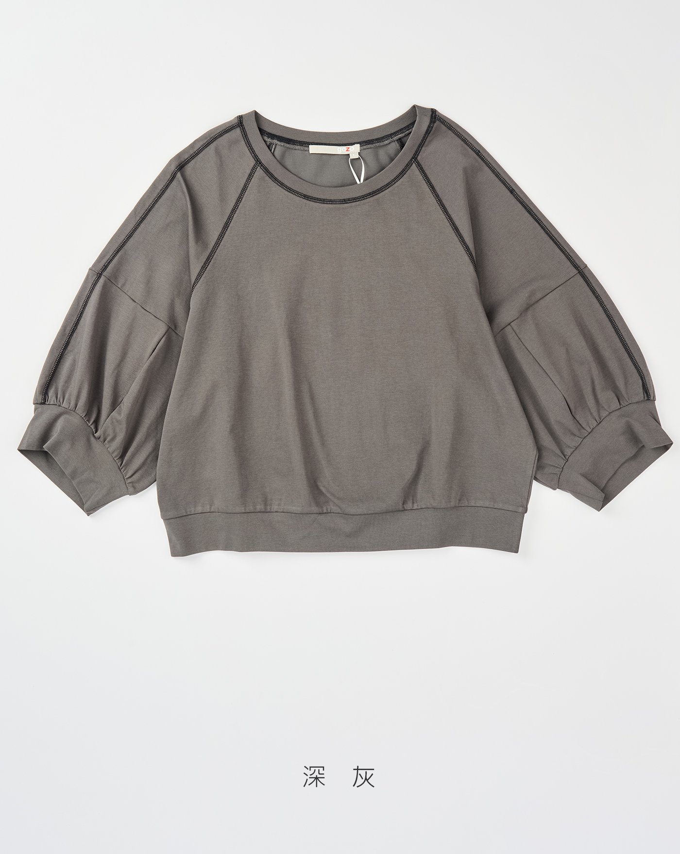 小鑰匙細坑條七分澎袖上衣(兩色)
