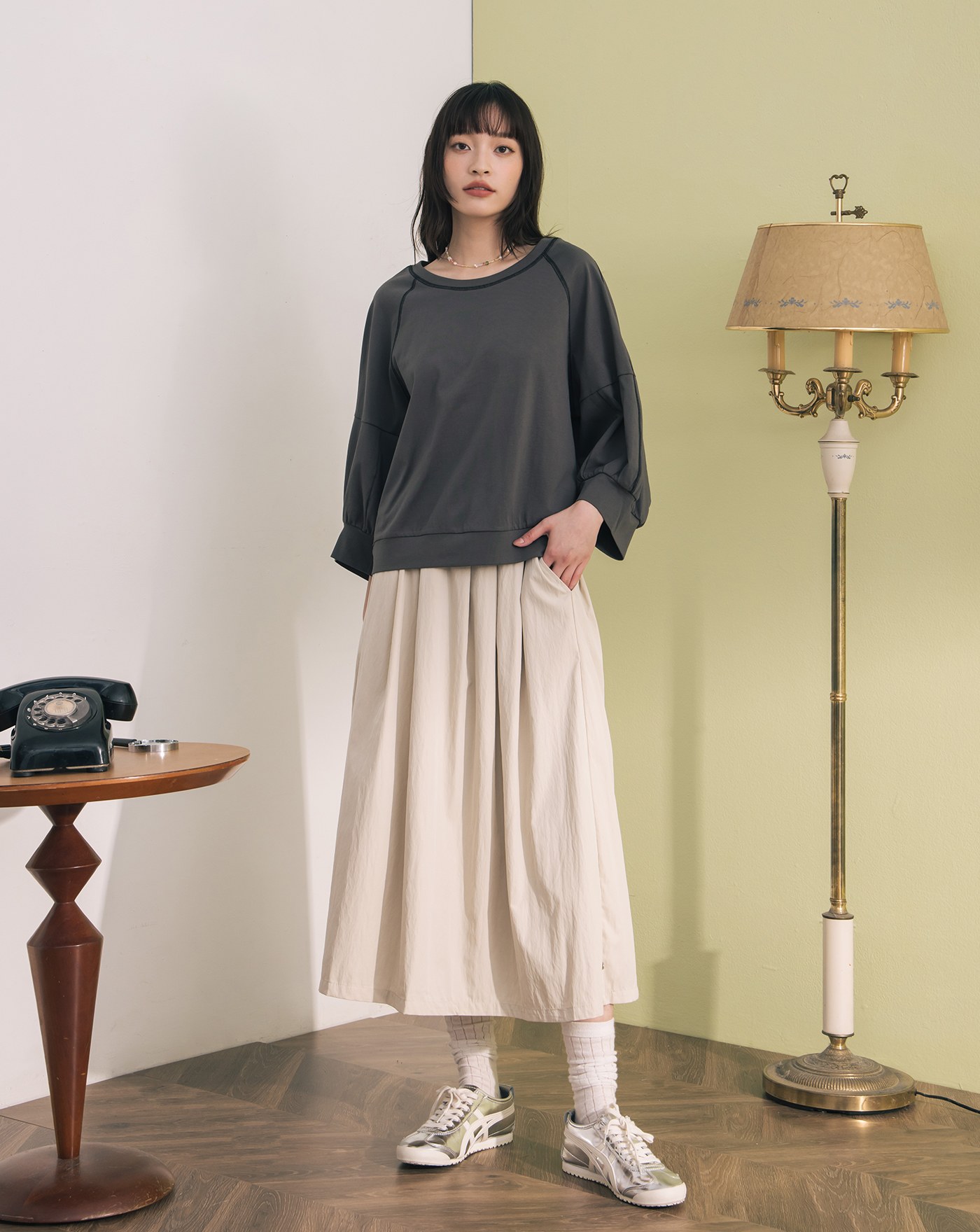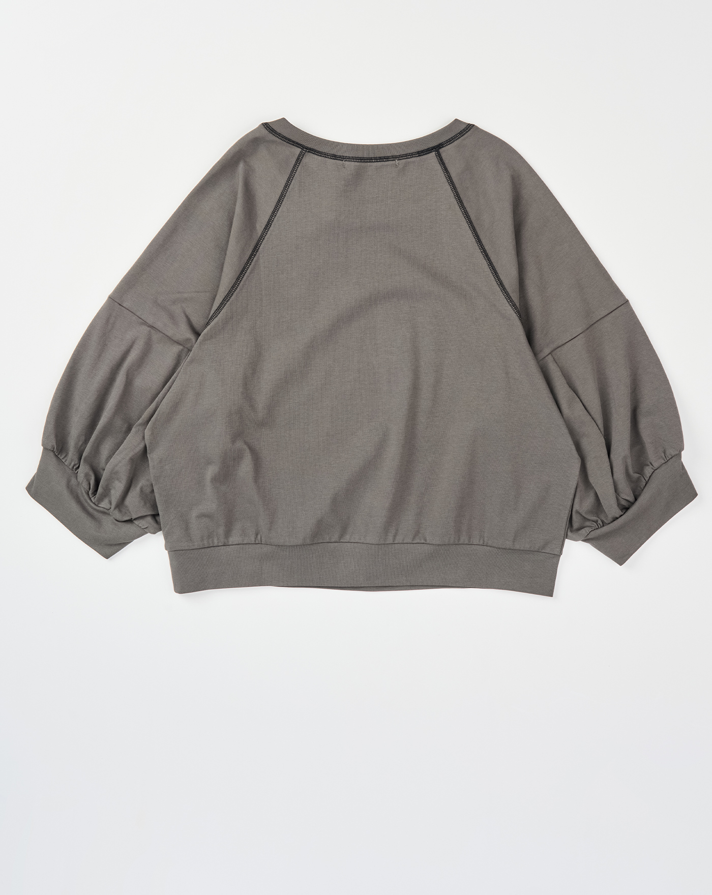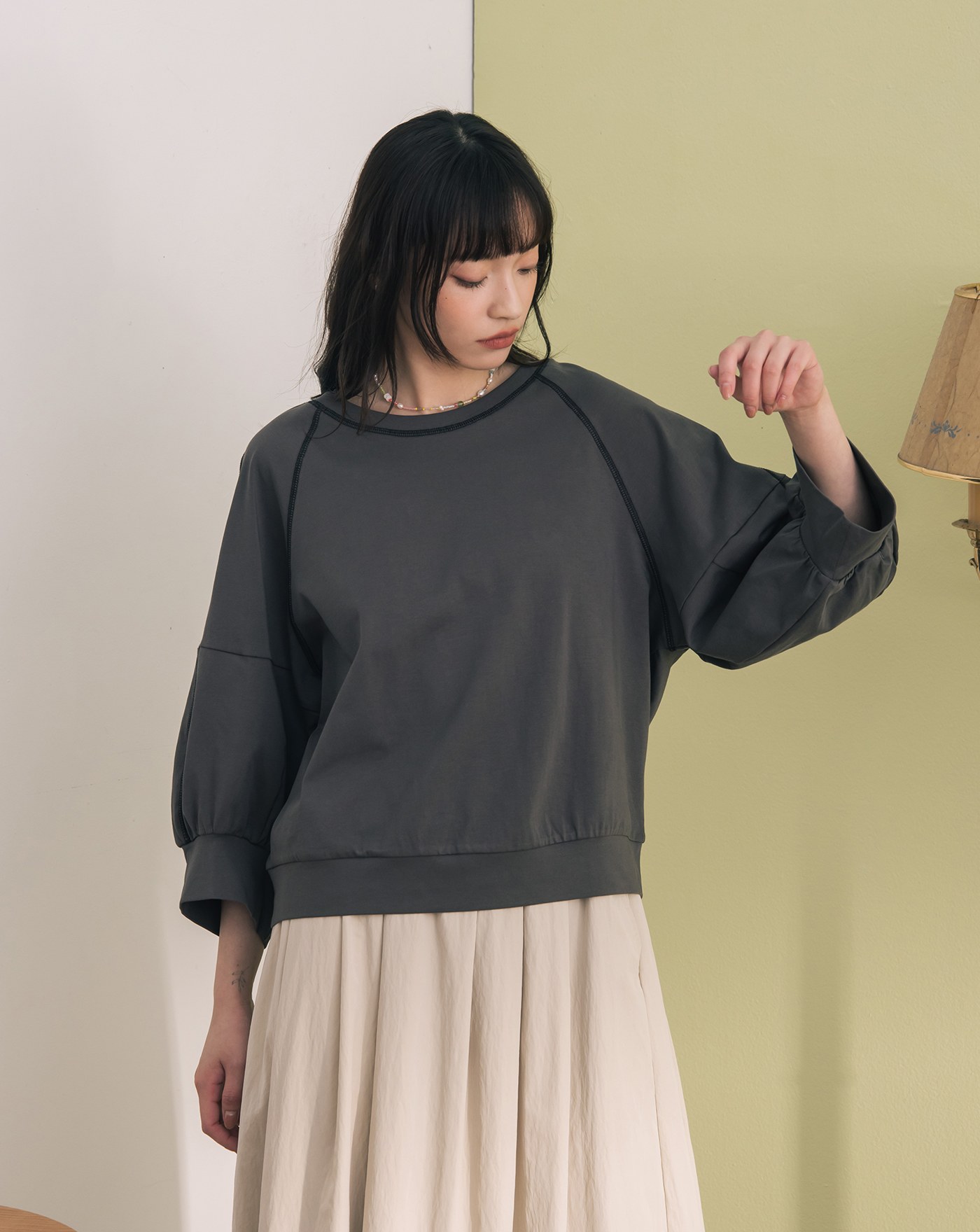 小鑰匙細坑條七分澎袖上衣(兩色)