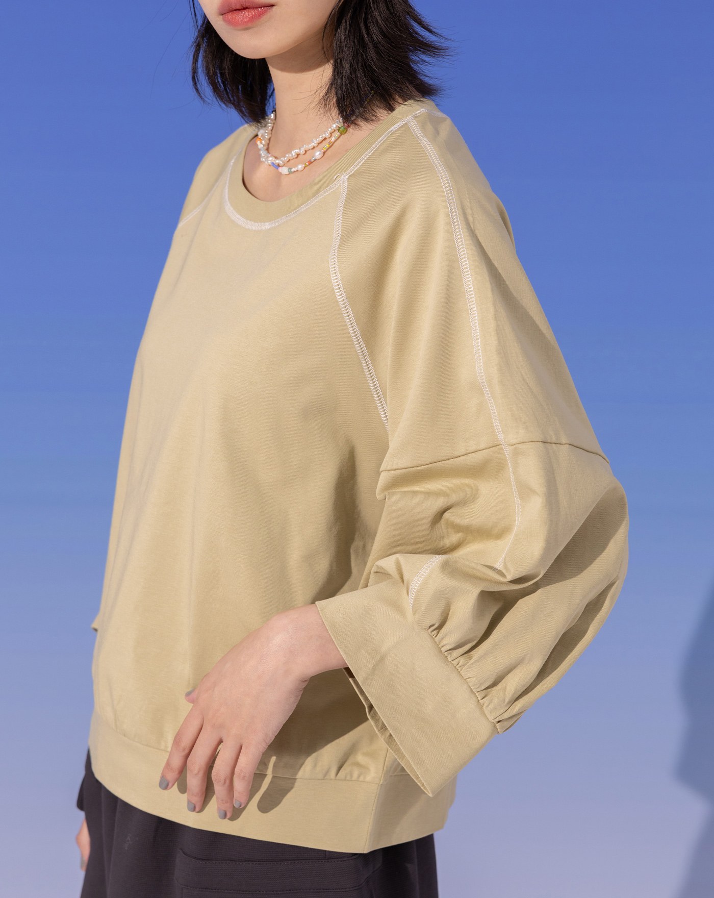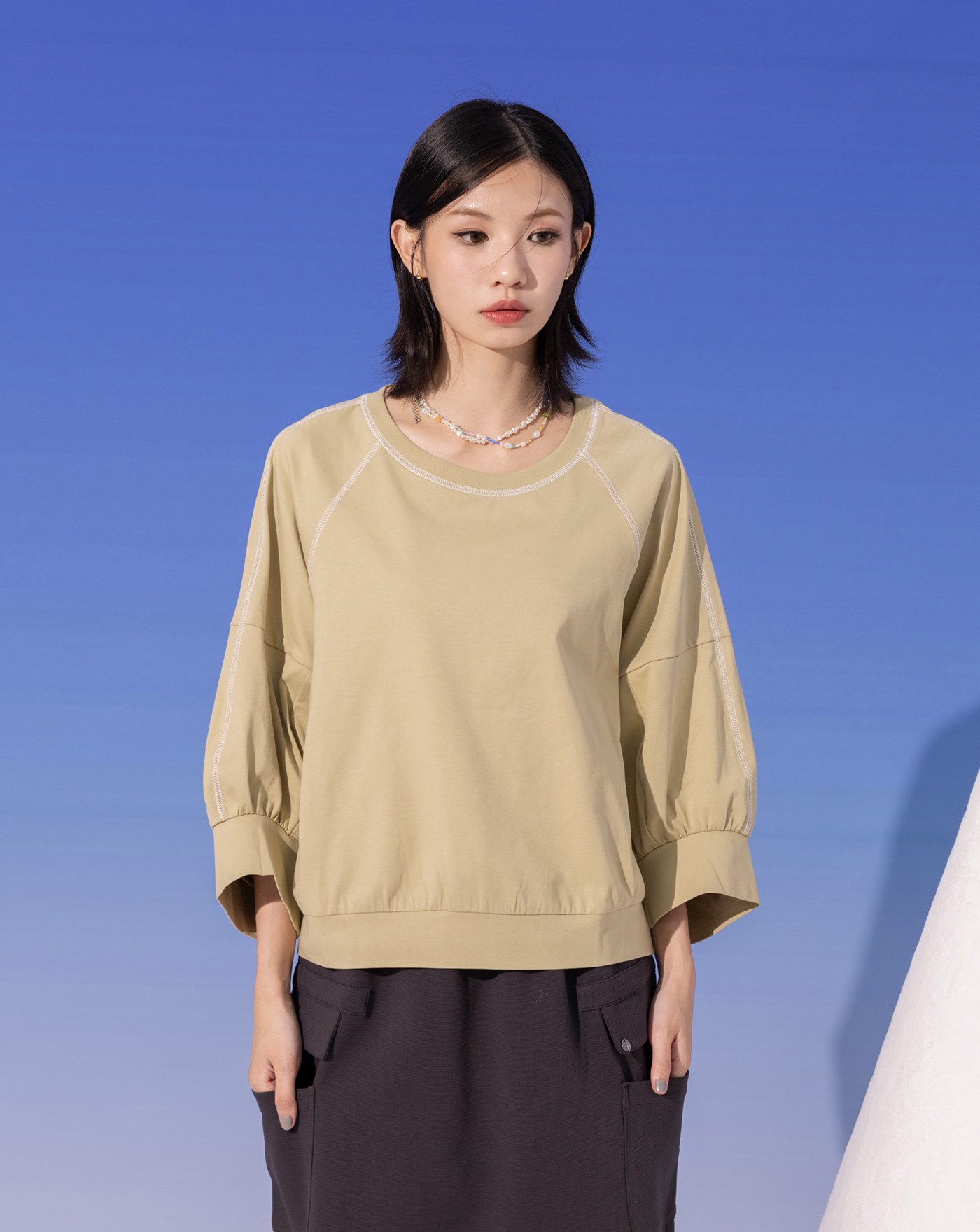 小鑰匙細坑條七分澎袖上衣(兩色)