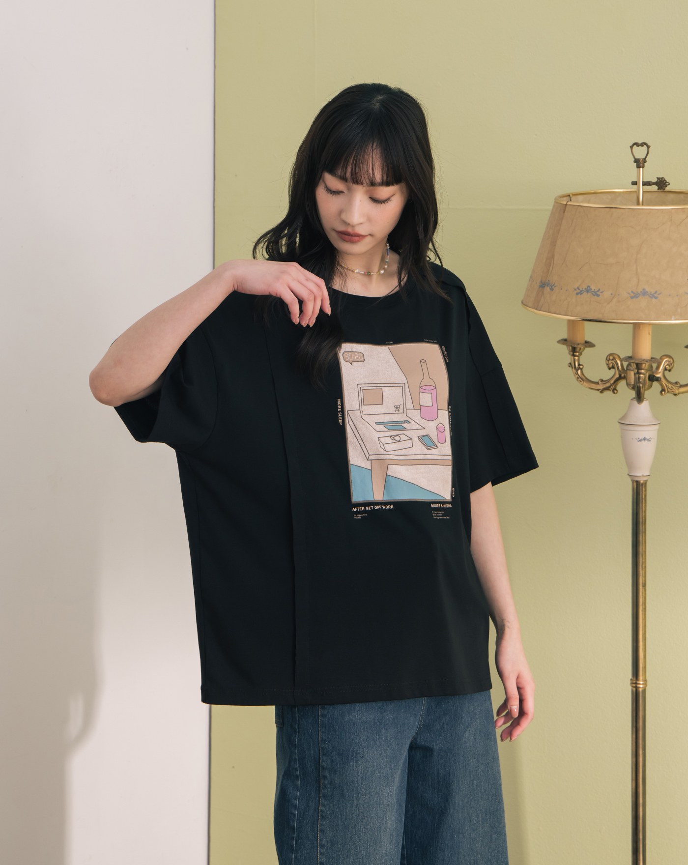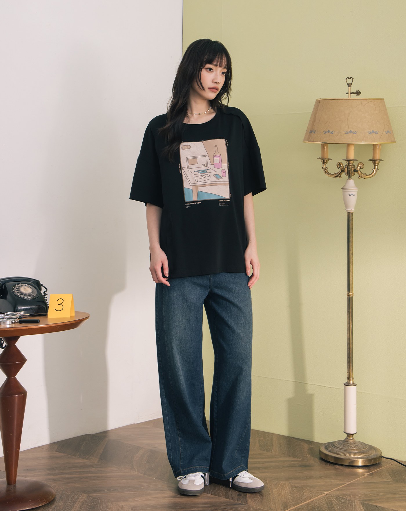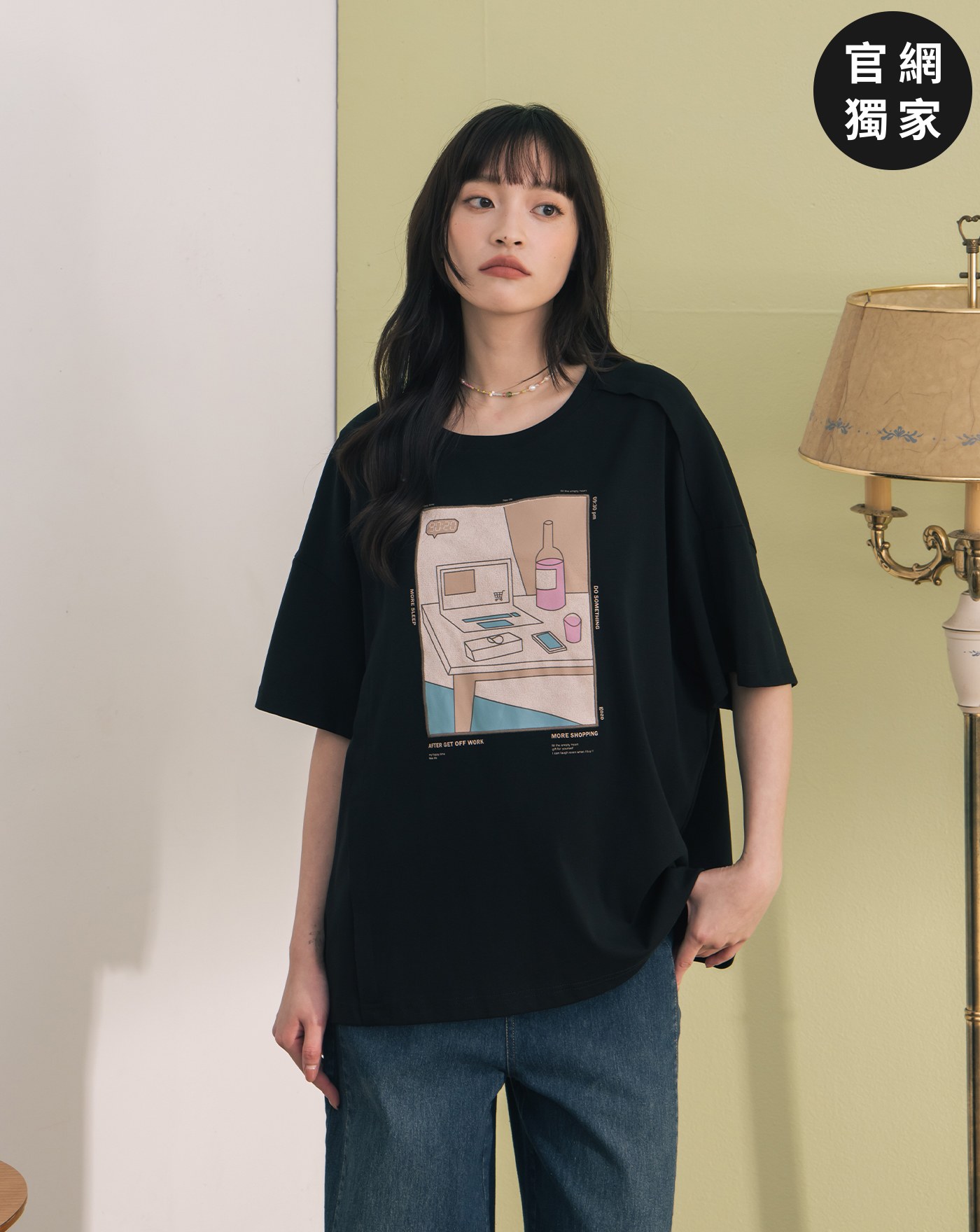 ➤抗皺插畫印花寬鬆涼感T恤(兩色)