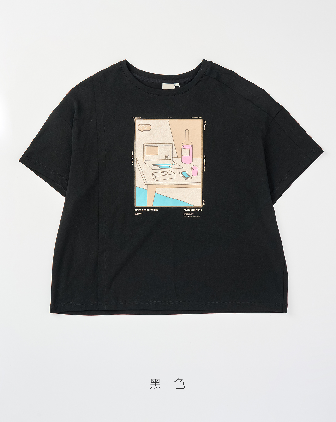 ➤抗皺插畫印花寬鬆涼感T恤(兩色)