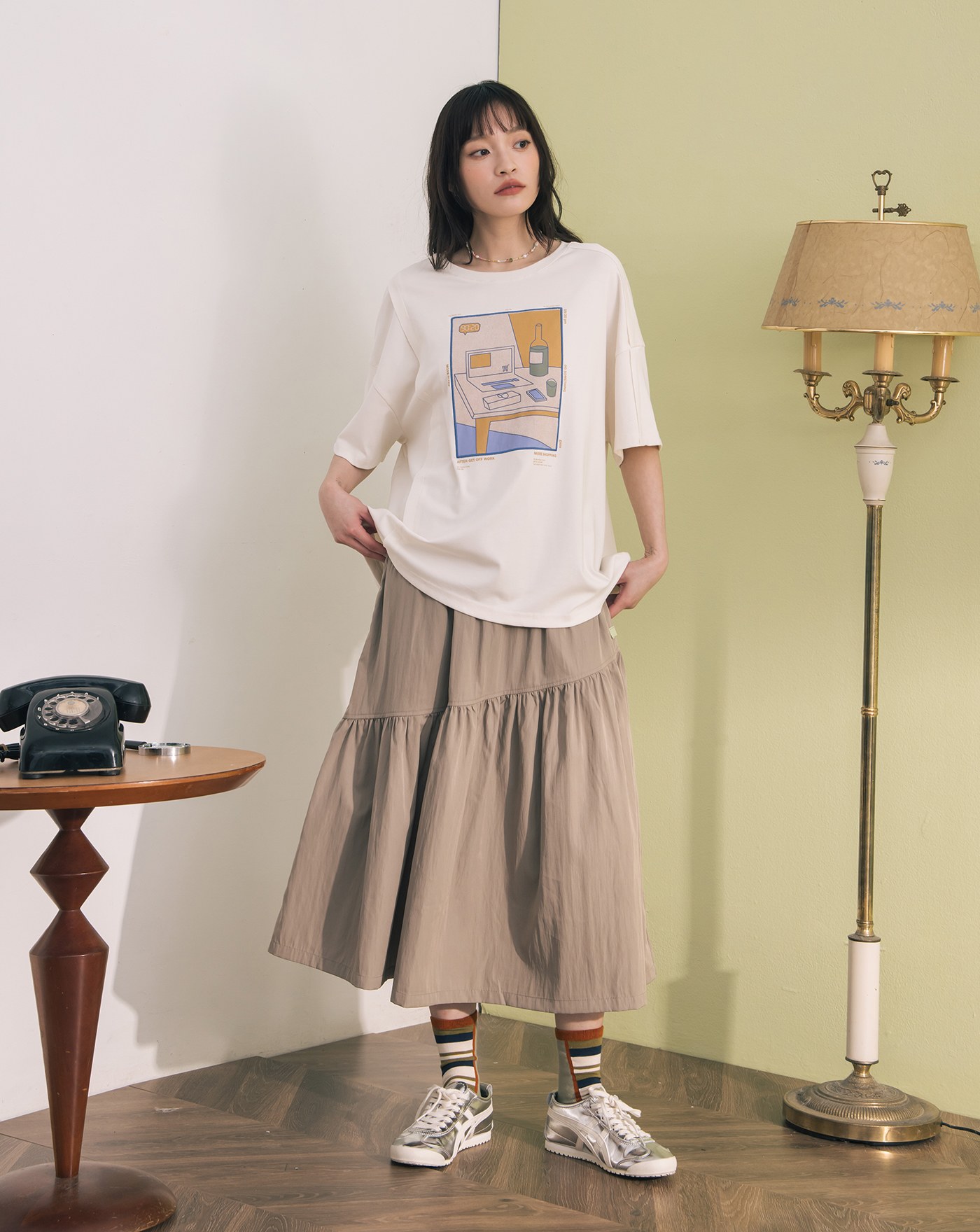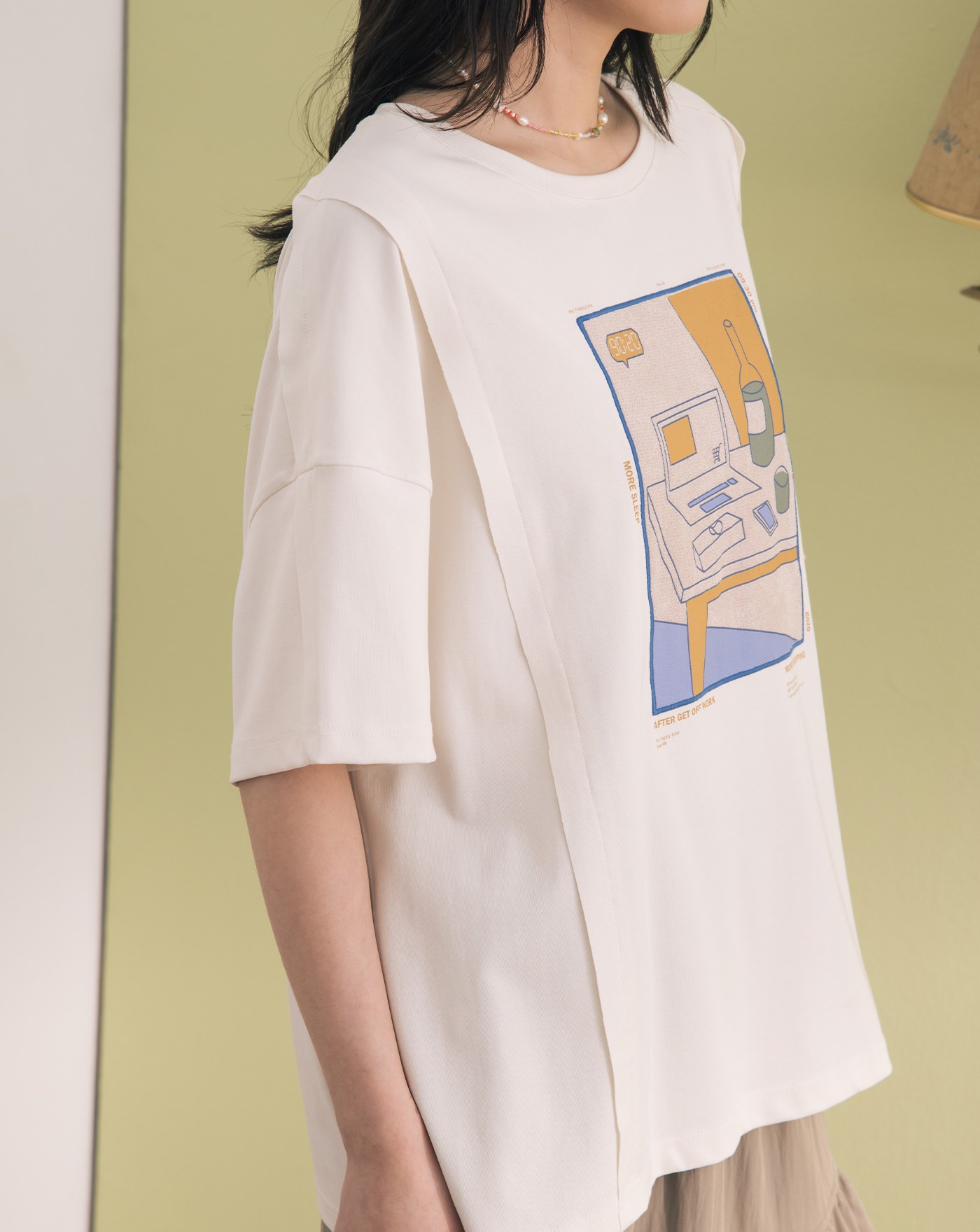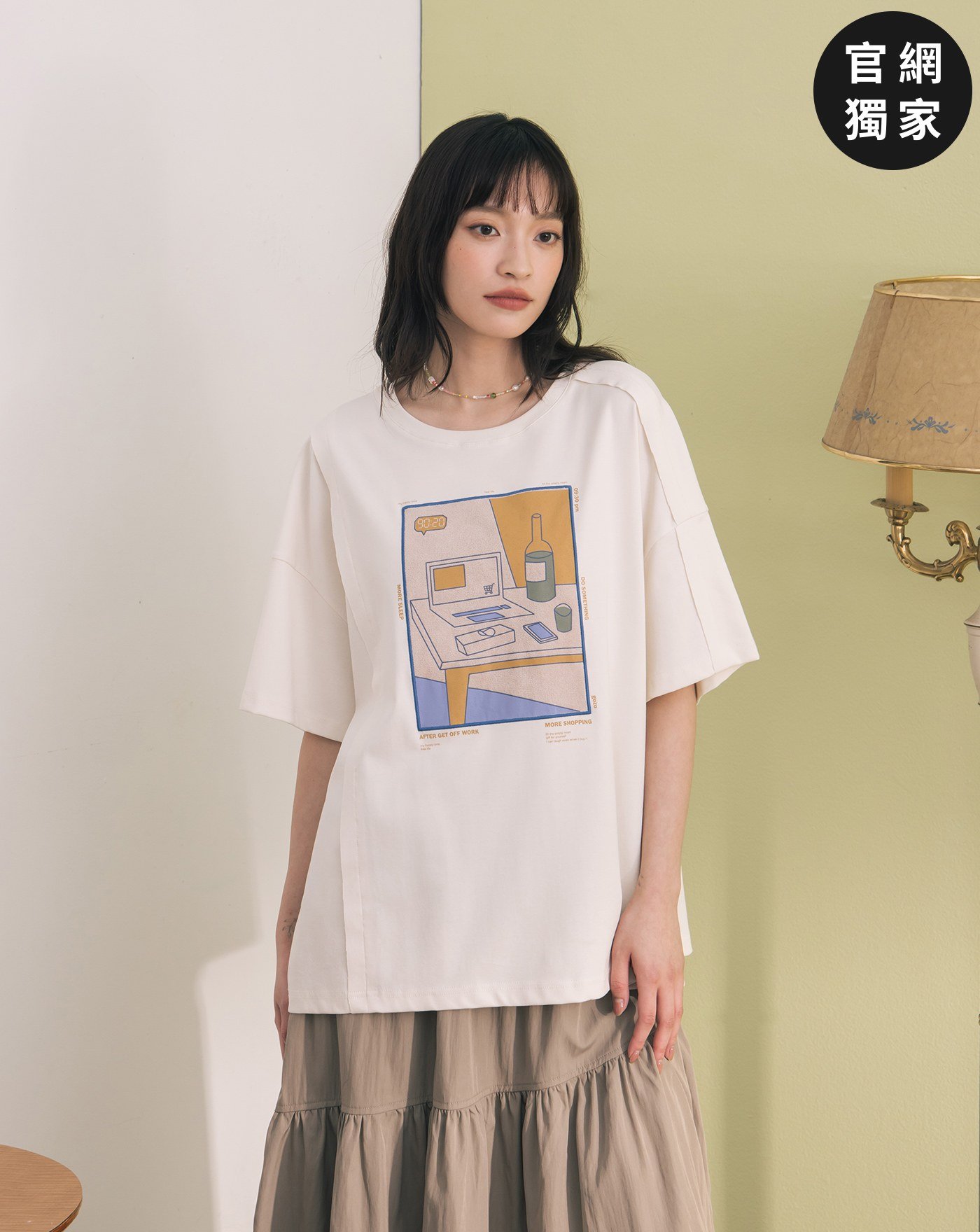 ➤抗皺插畫印花寬鬆涼感T恤(兩色)