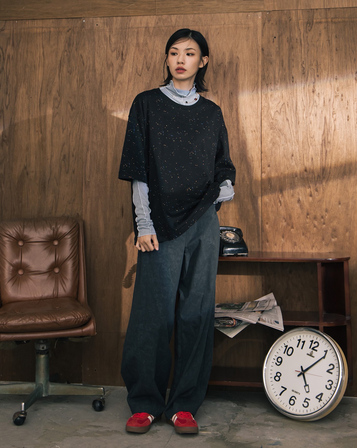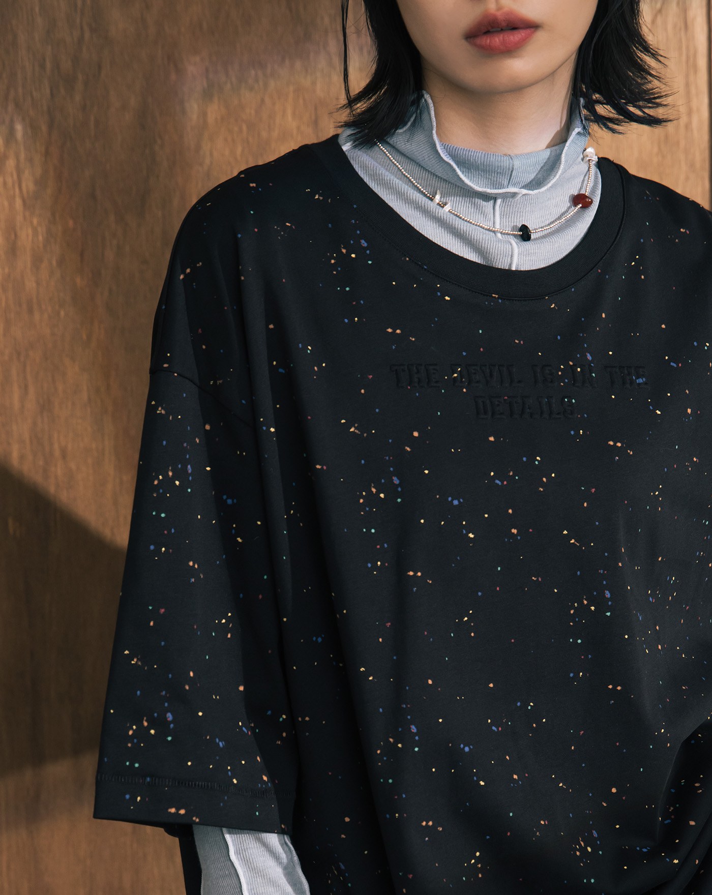 A|彩色潑墨立體標語寬鬆短袖T恤(兩色)查看原圖尺寸