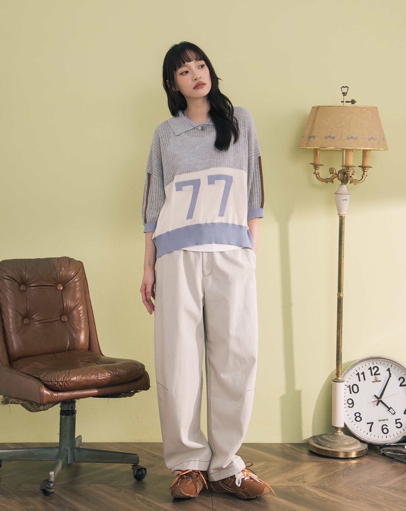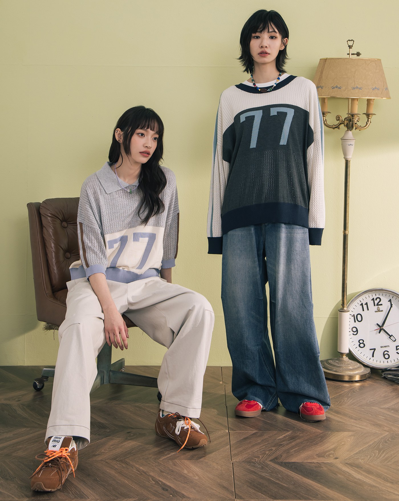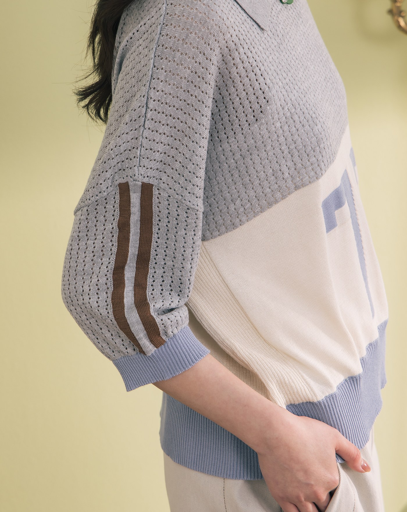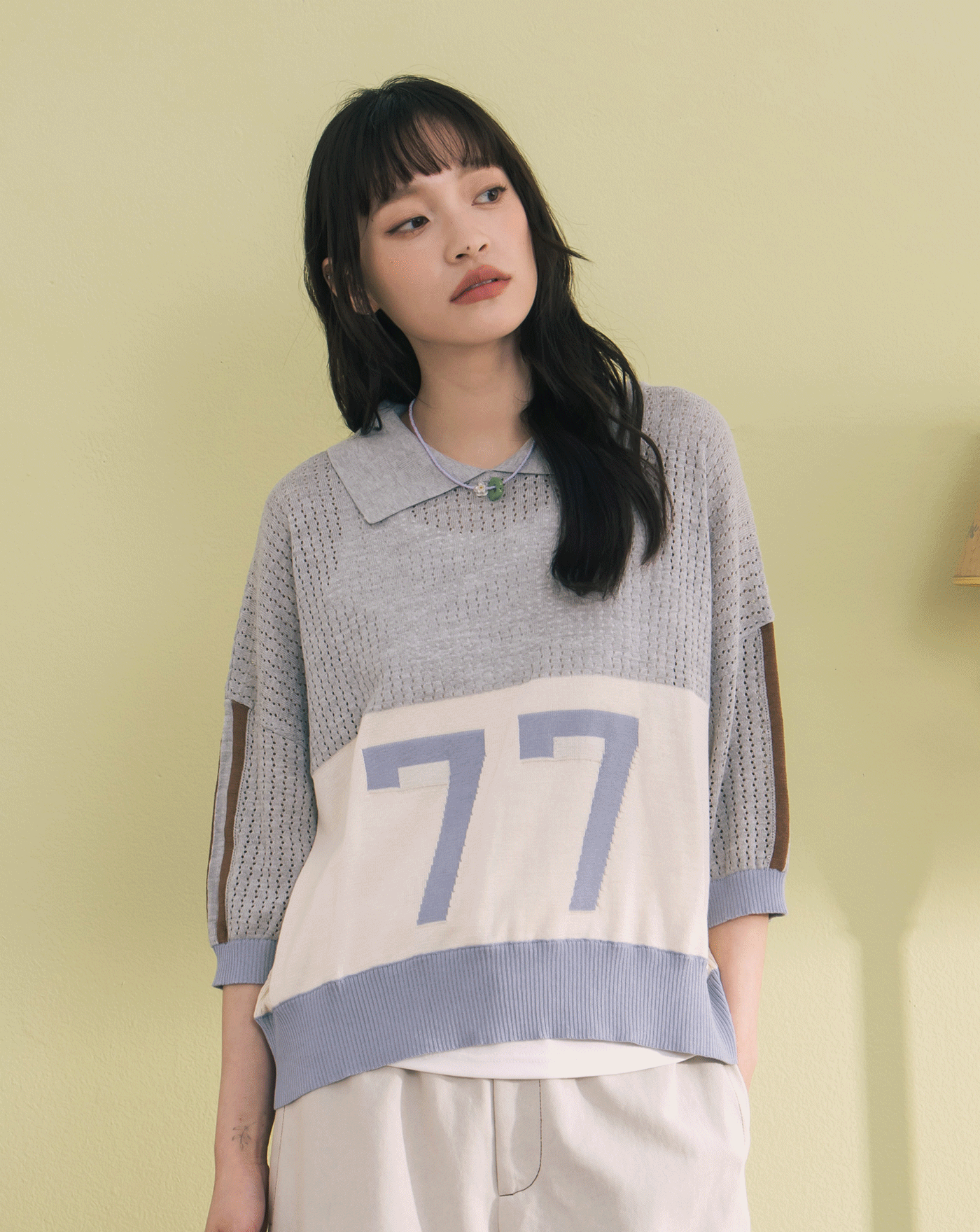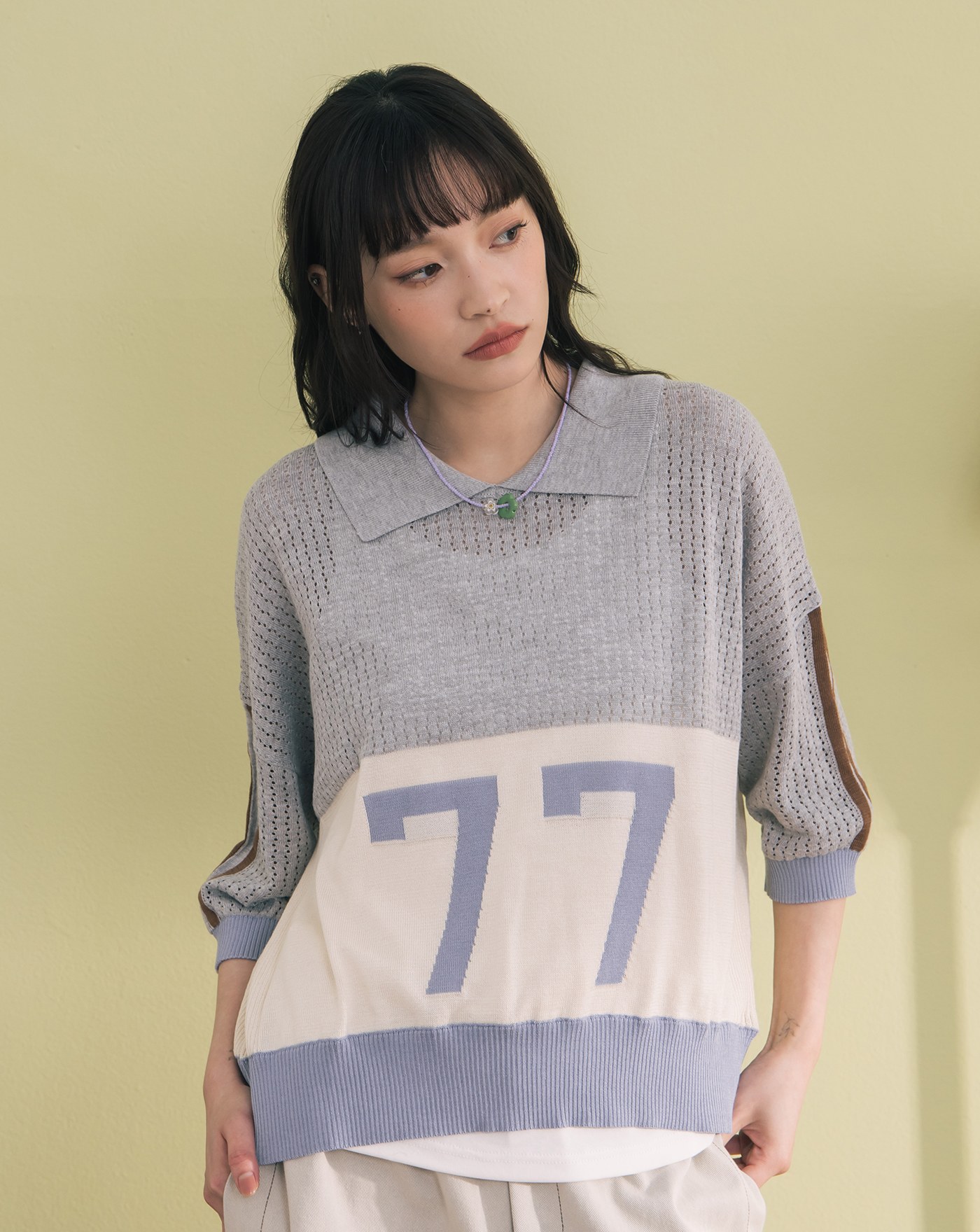 數字撞色拼接針織長袖上衣(兩色)