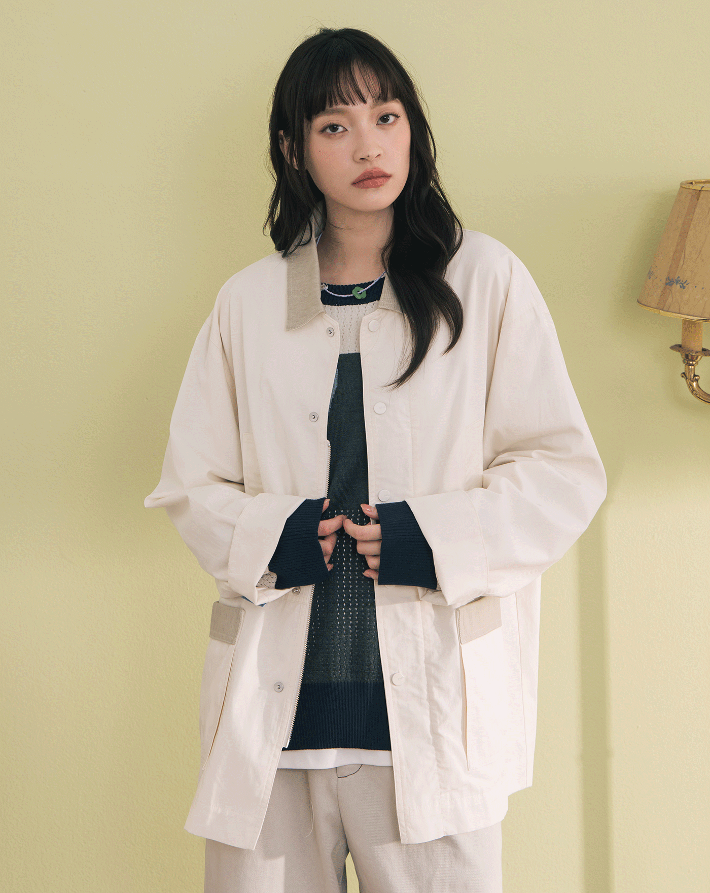 遊戲笑臉雙口袋撞色工裝外套(兩色)