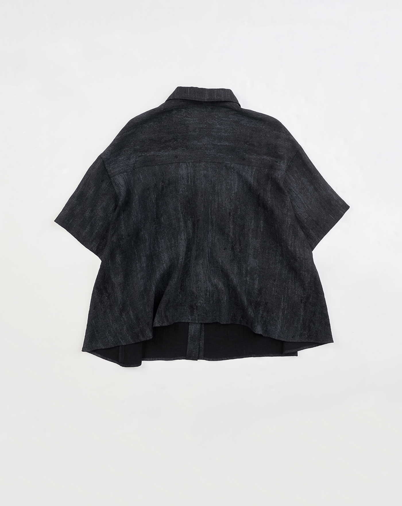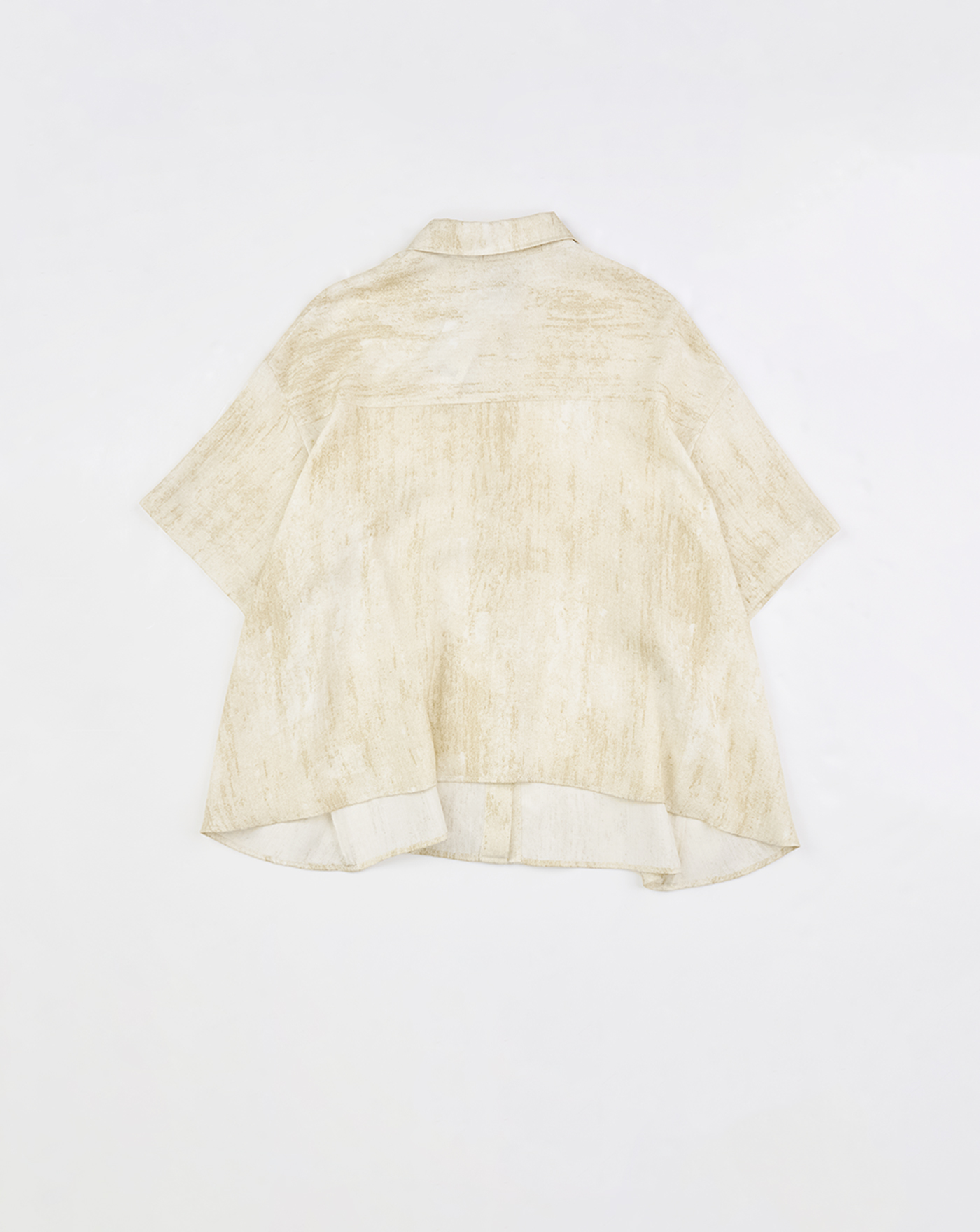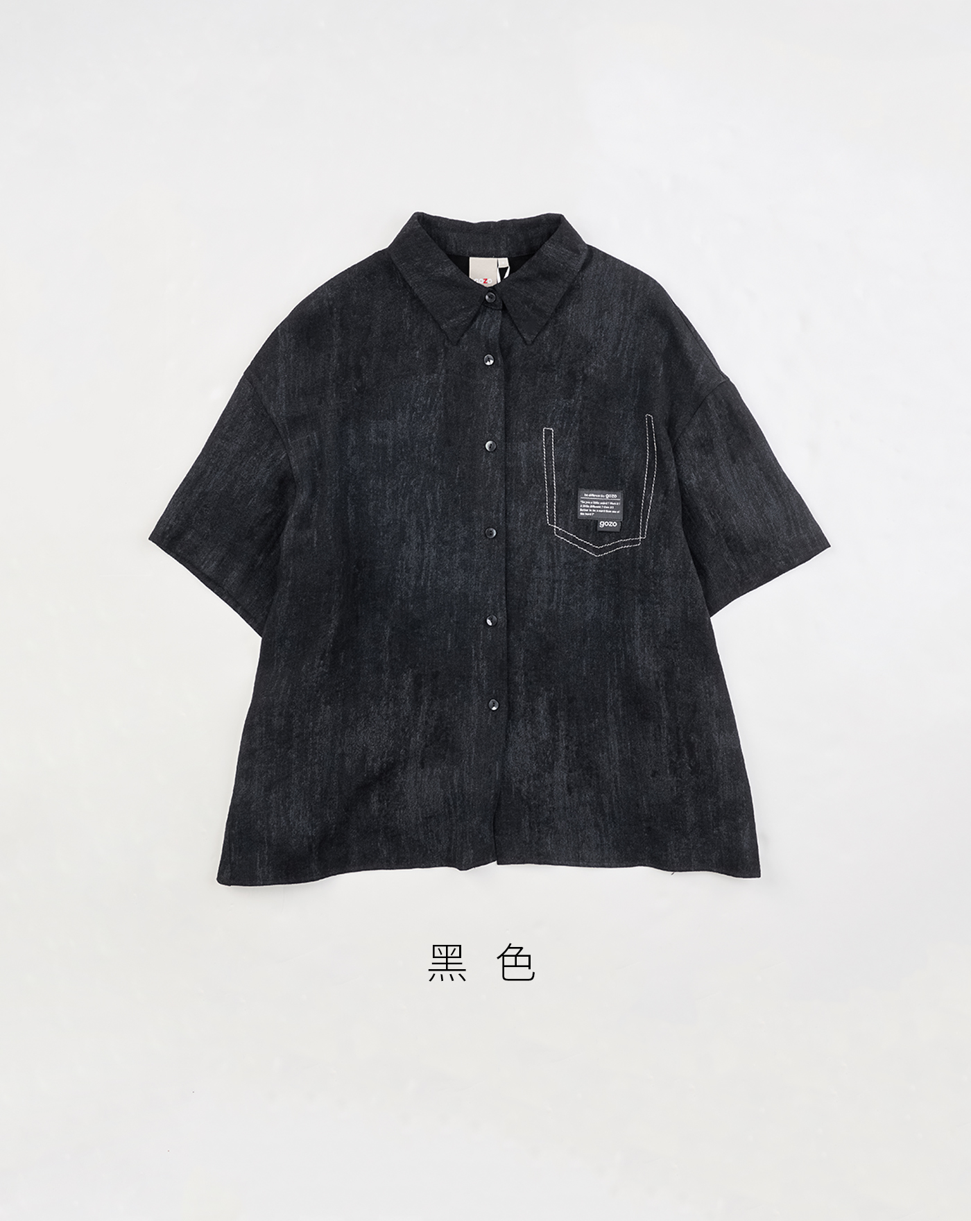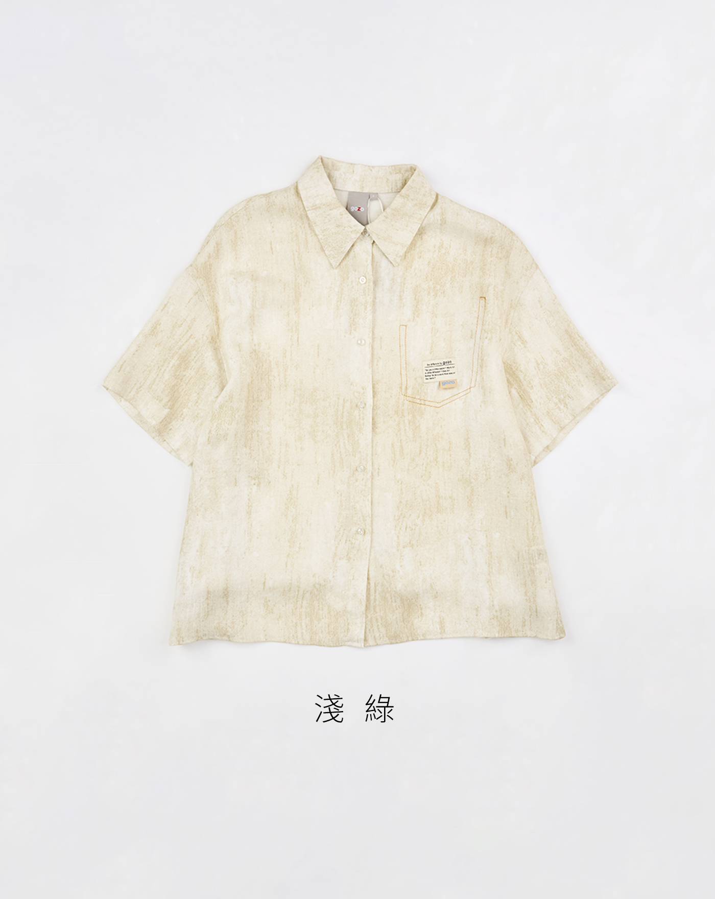 電影台詞刺繡天絲棉抓褶短袖襯衫(兩色)