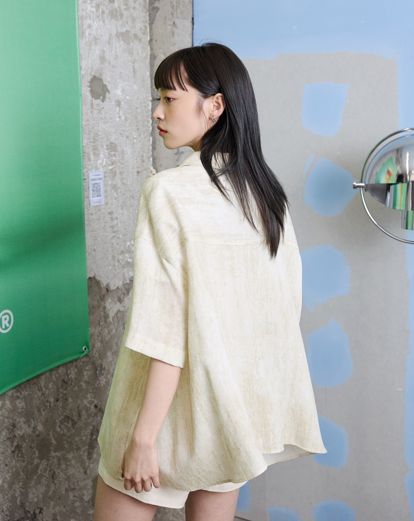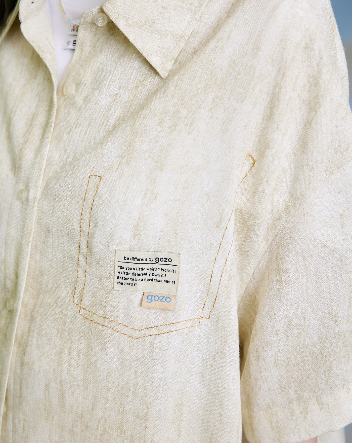 電影台詞刺繡天絲棉抓褶短袖襯衫(兩色)