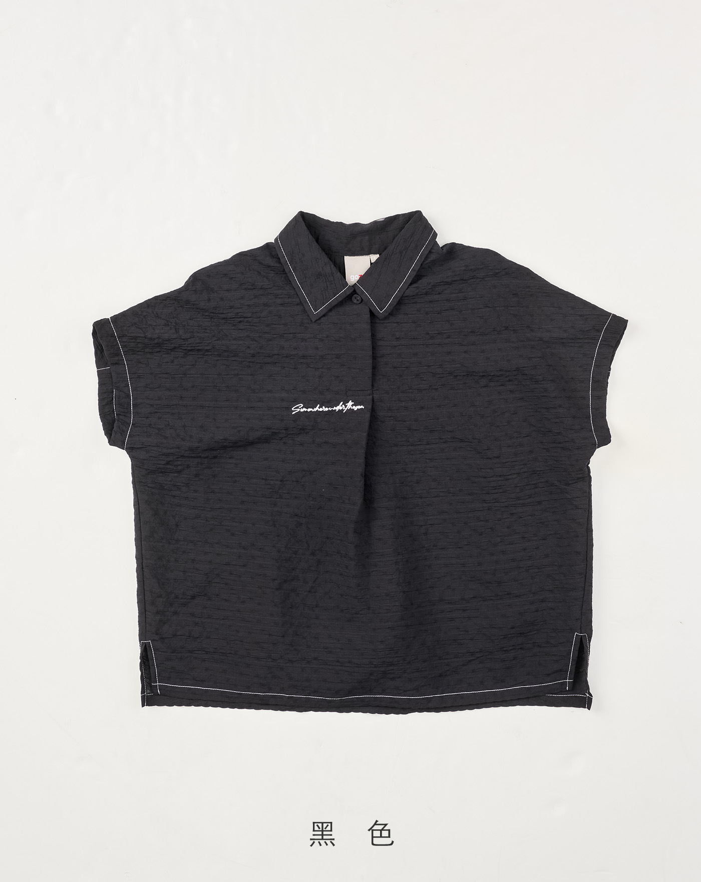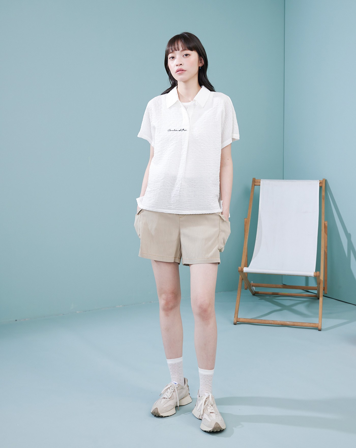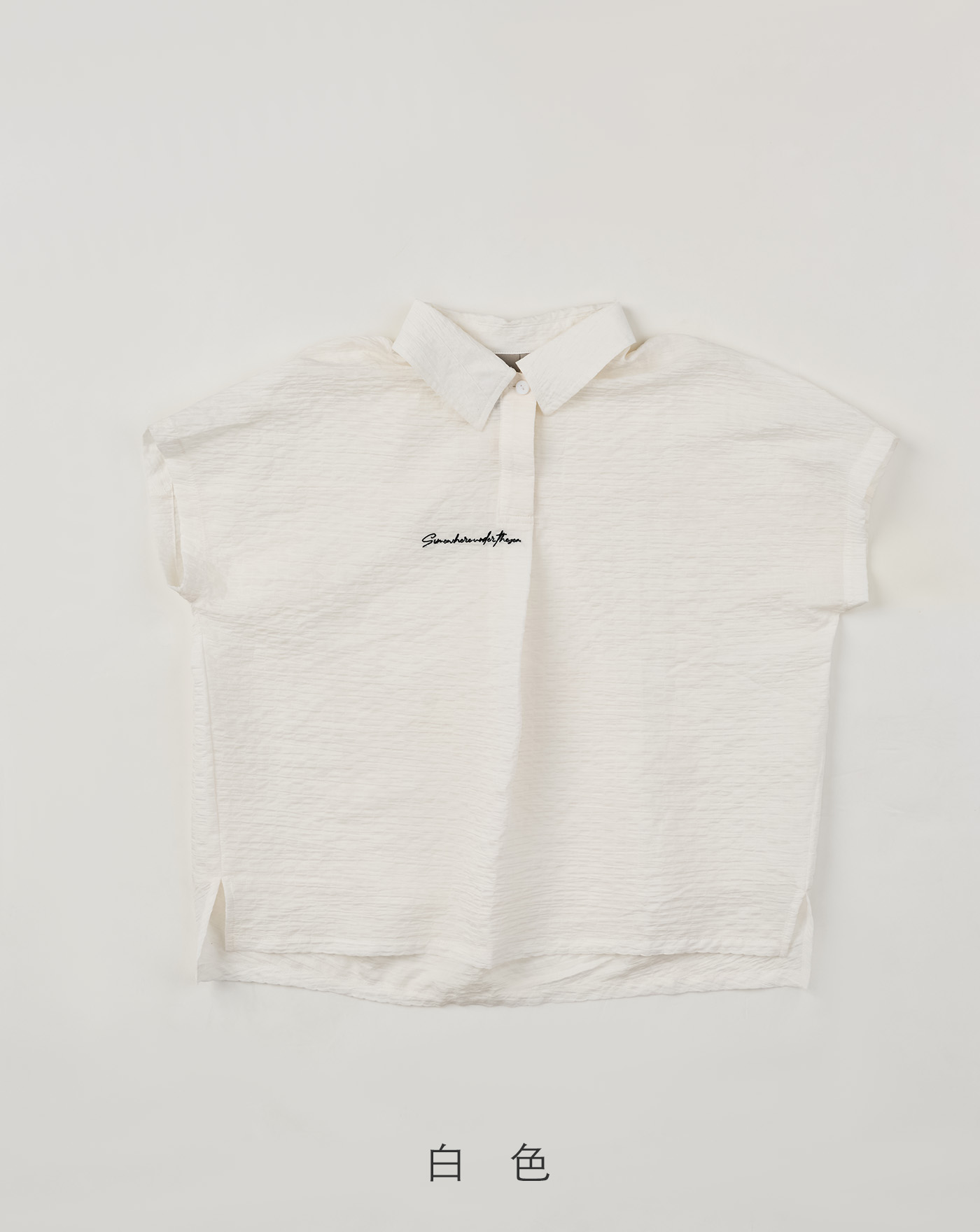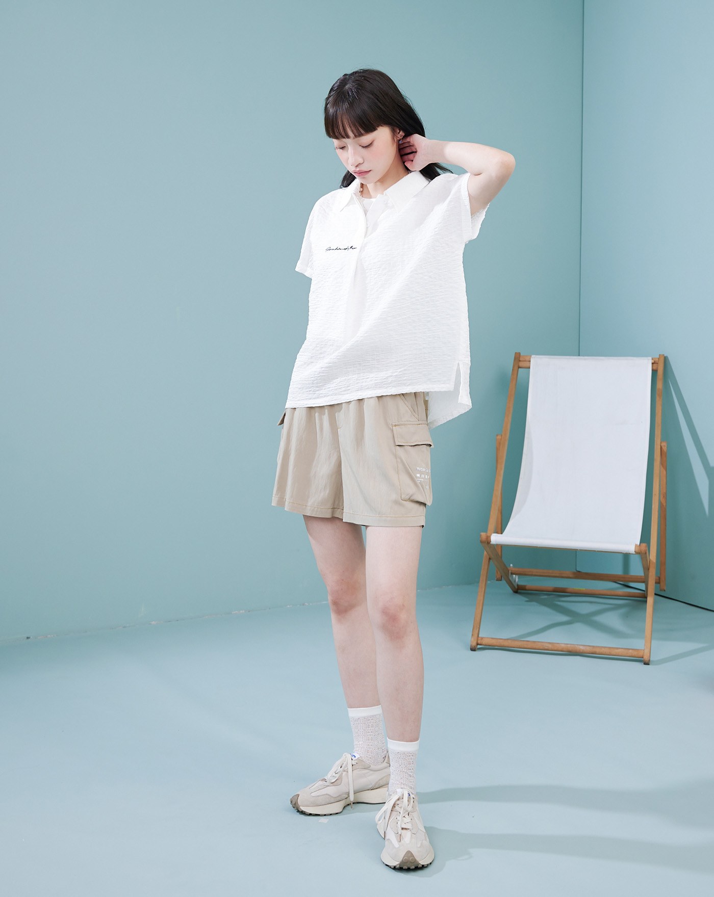 鬆緊下擺半開襟連袖短袖襯衫(兩色)