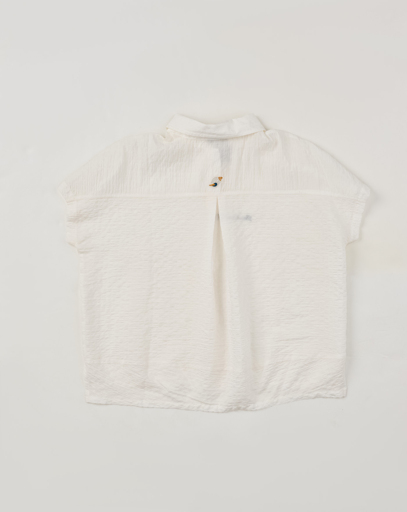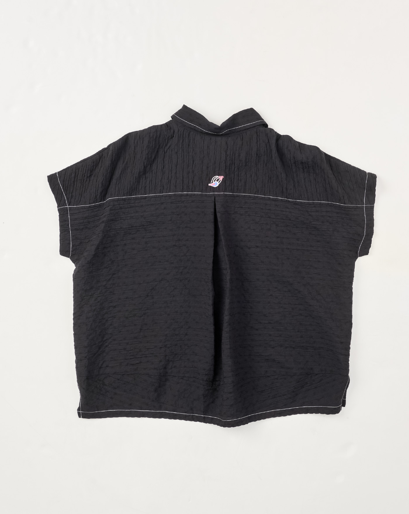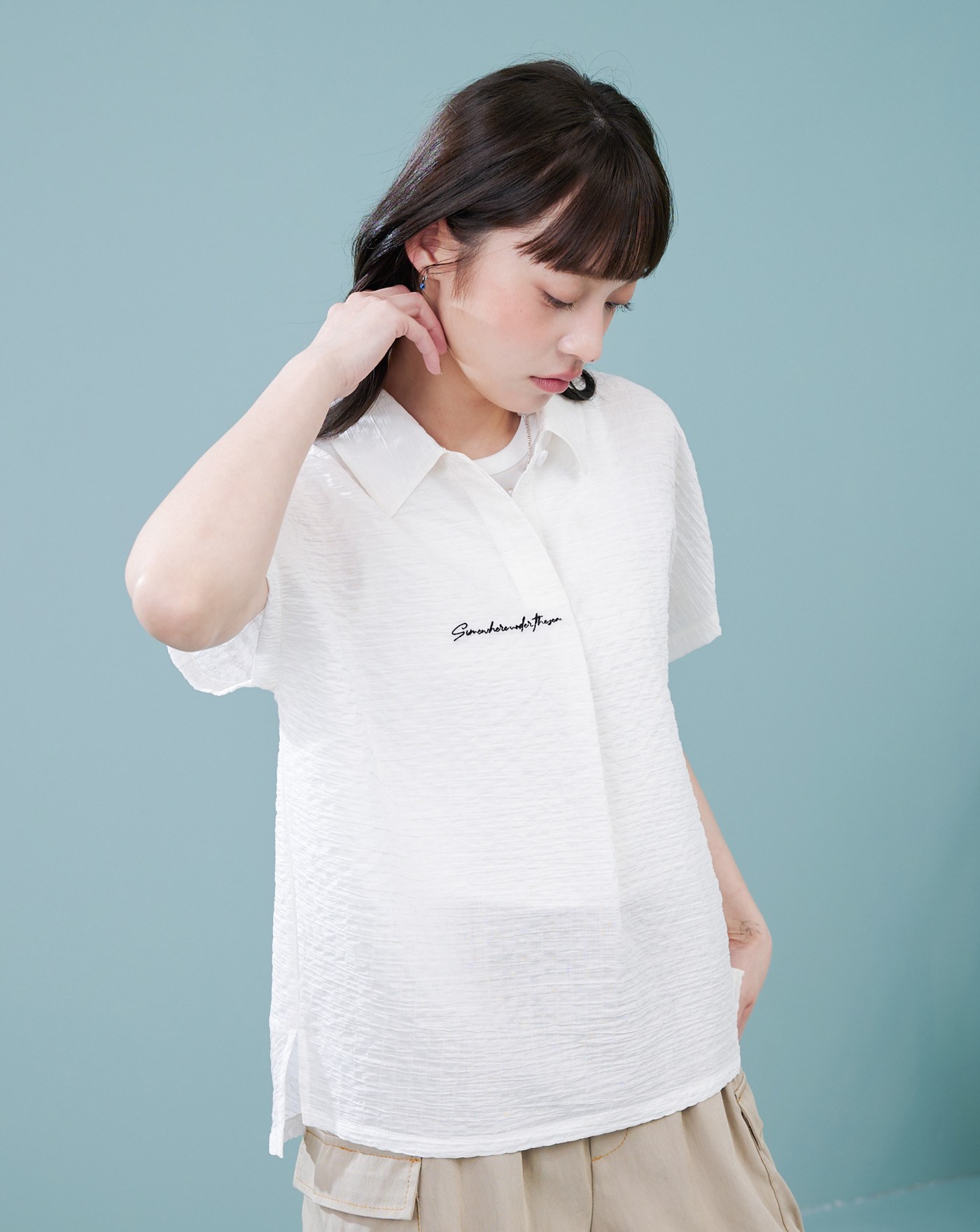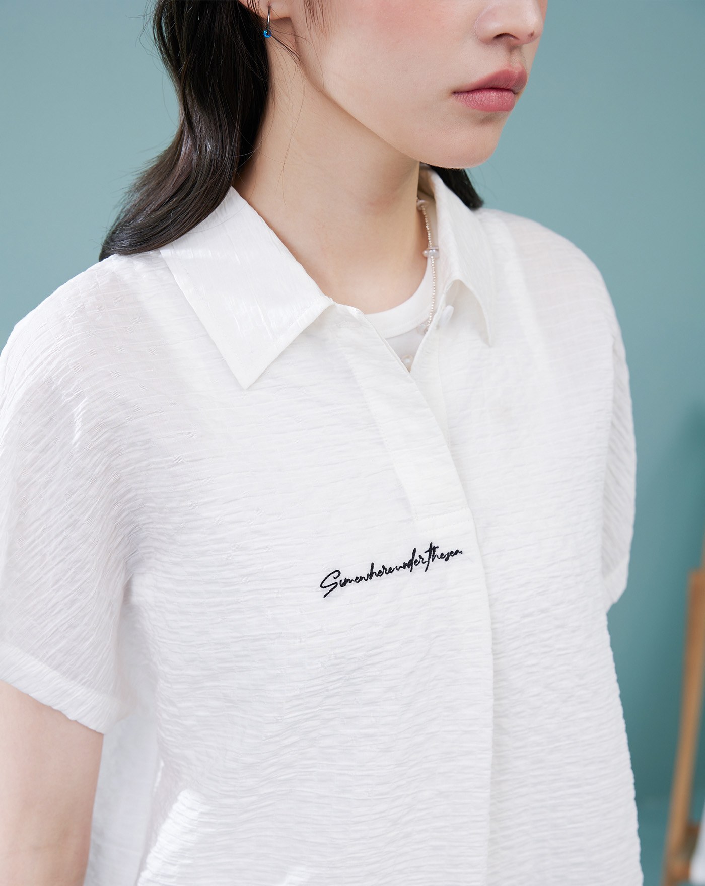 鬆緊下擺半開襟連袖短袖襯衫(兩色)