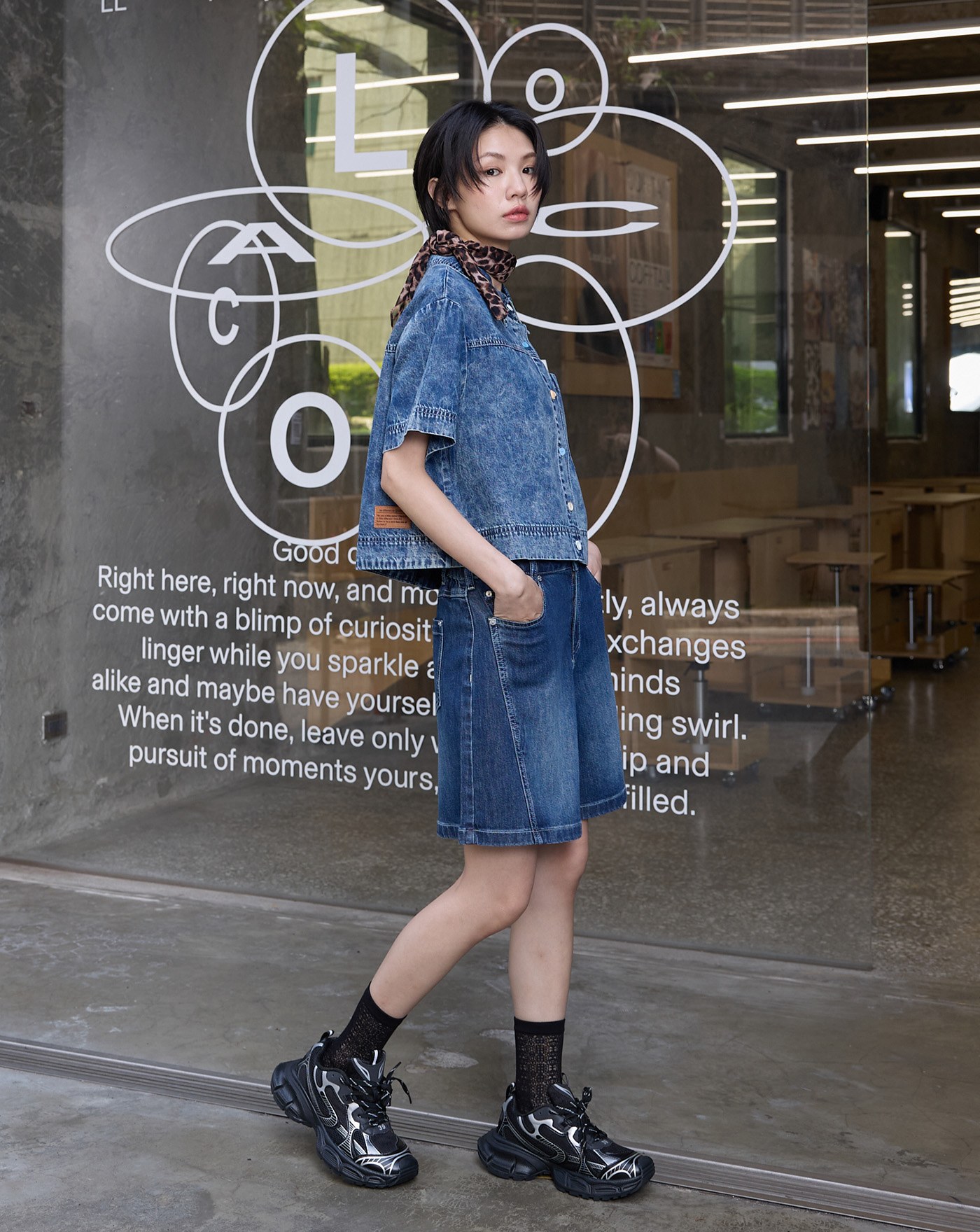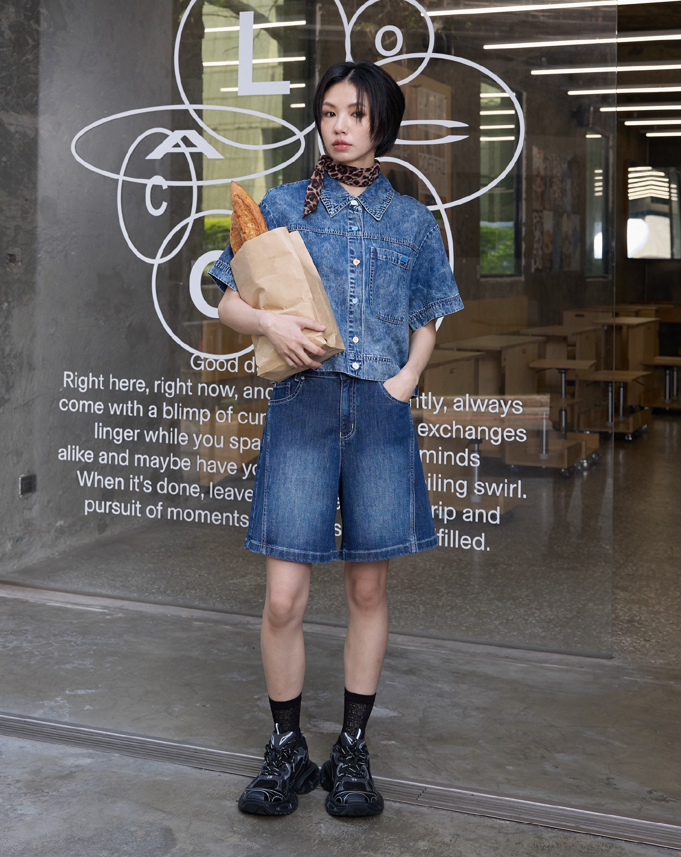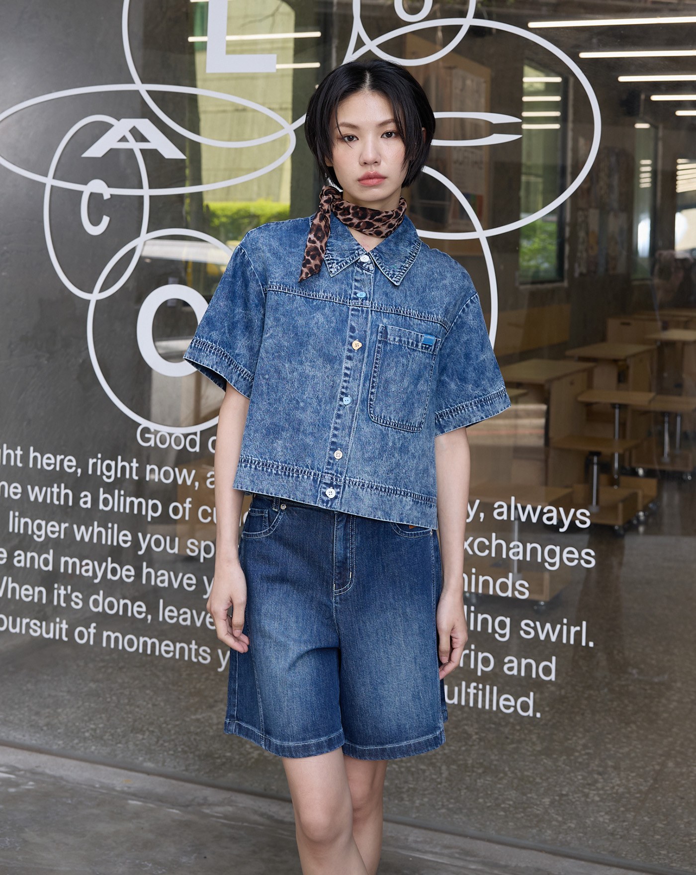 涼感天絲麻拼接牛仔短褲裙(兩色)