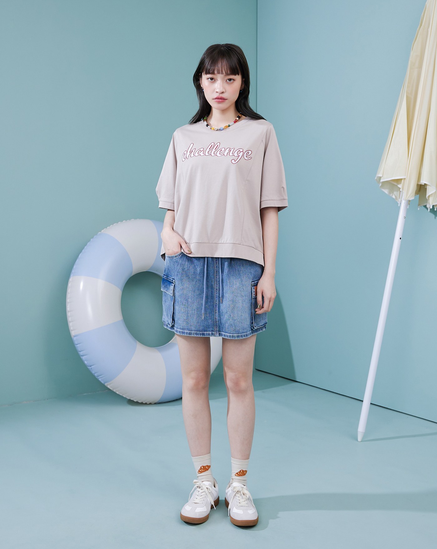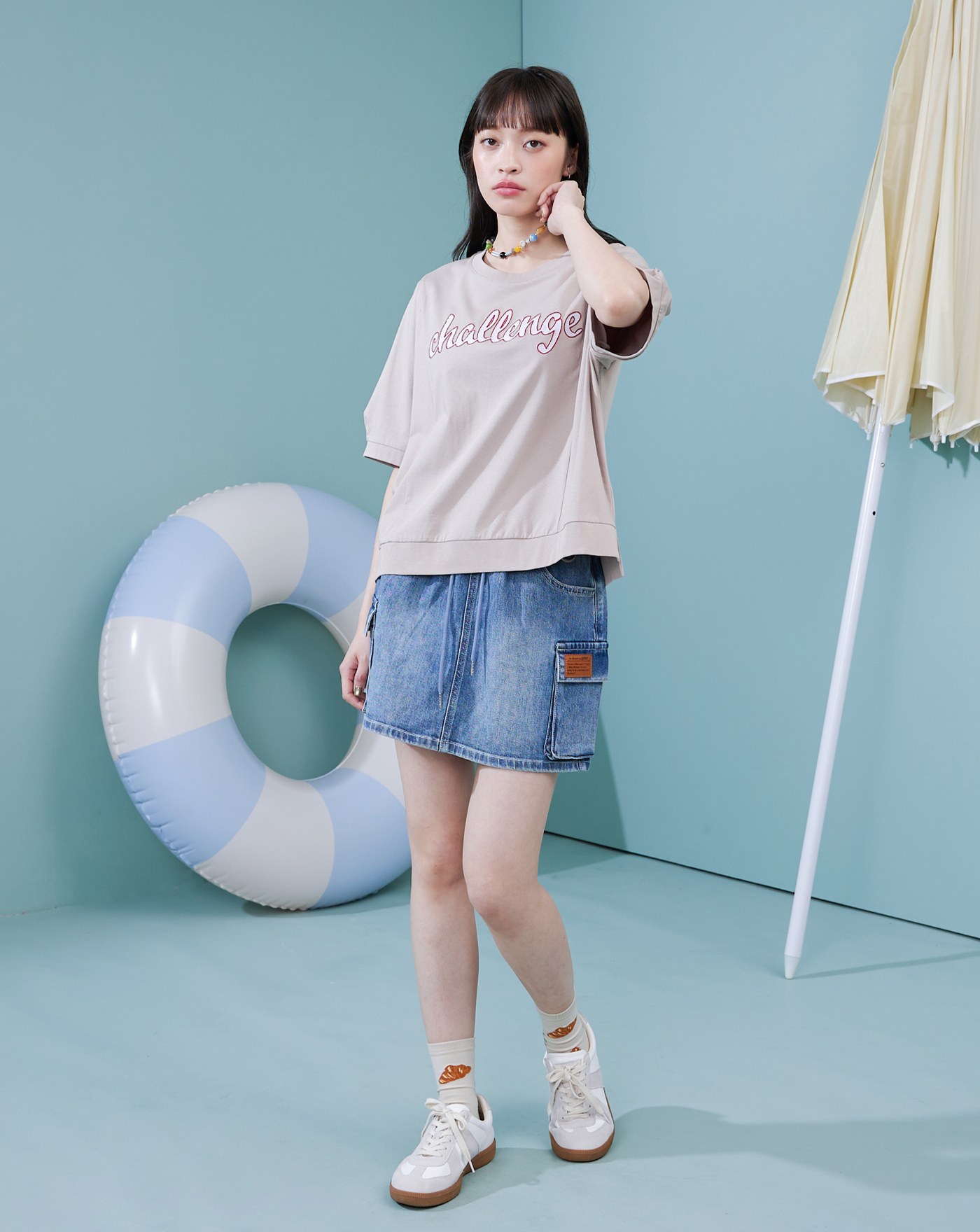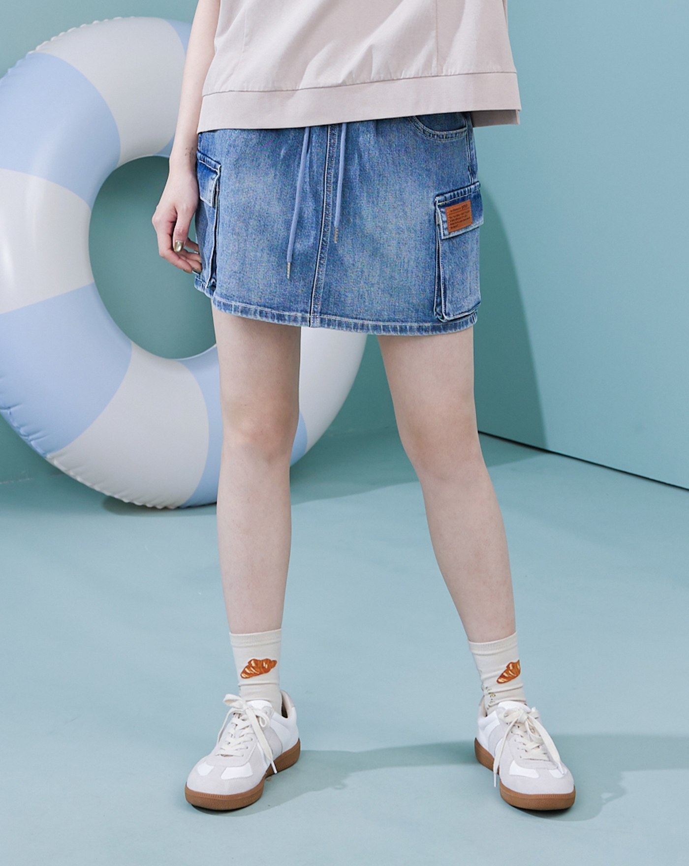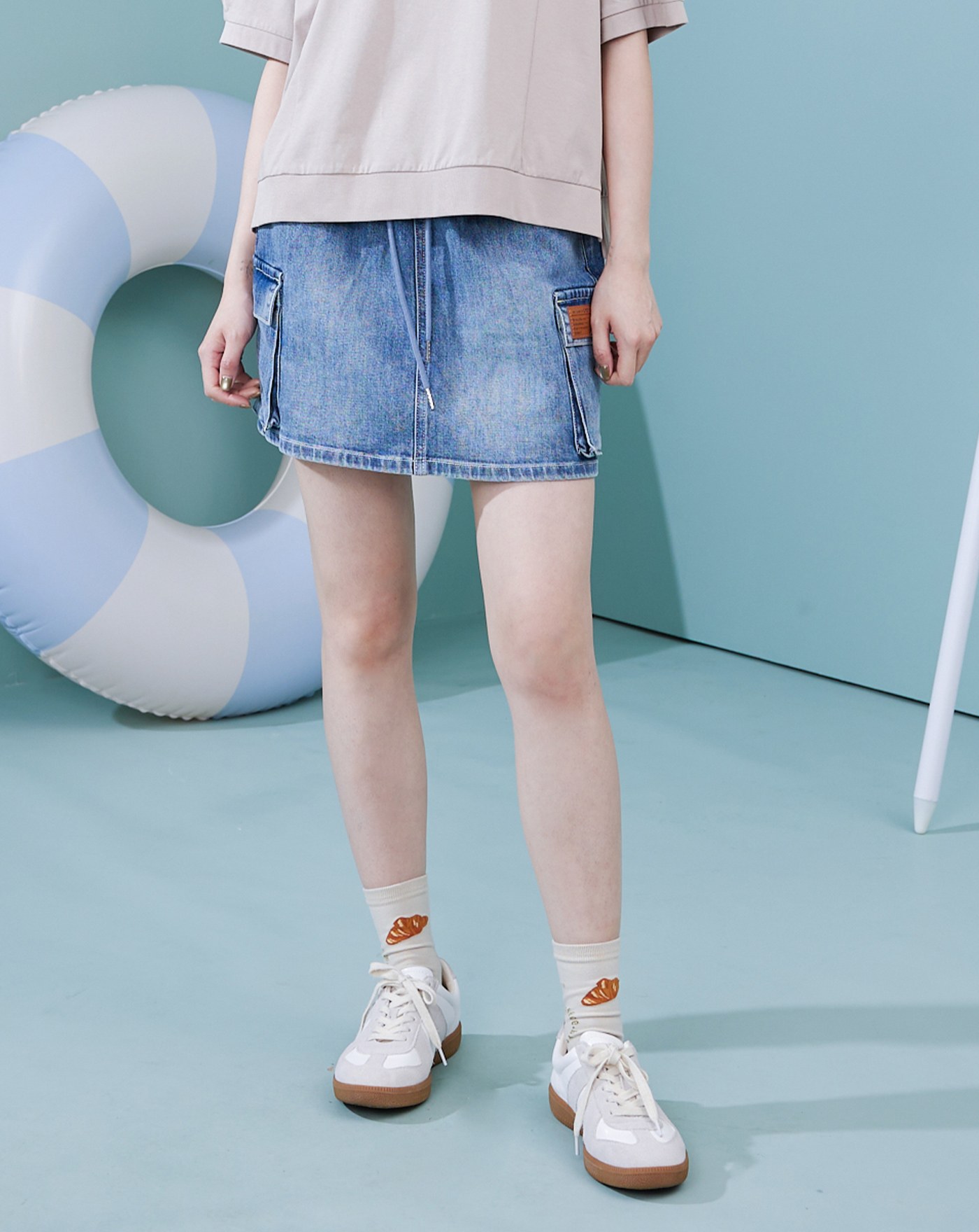 涼感天絲麻拼接牛仔短褲裙(兩色)