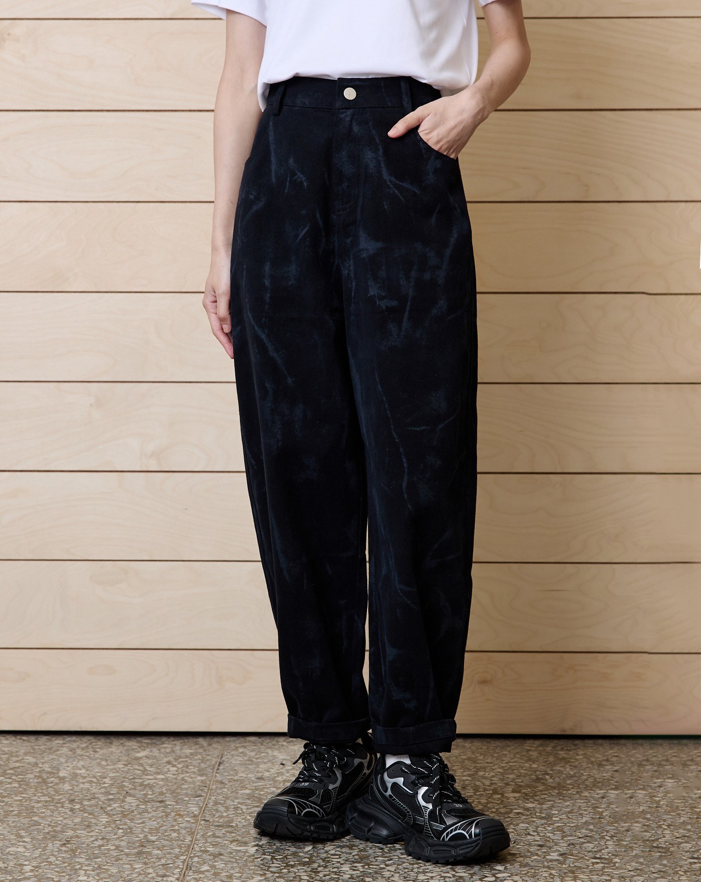 Sea you letter織紋天絲直筒寬褲