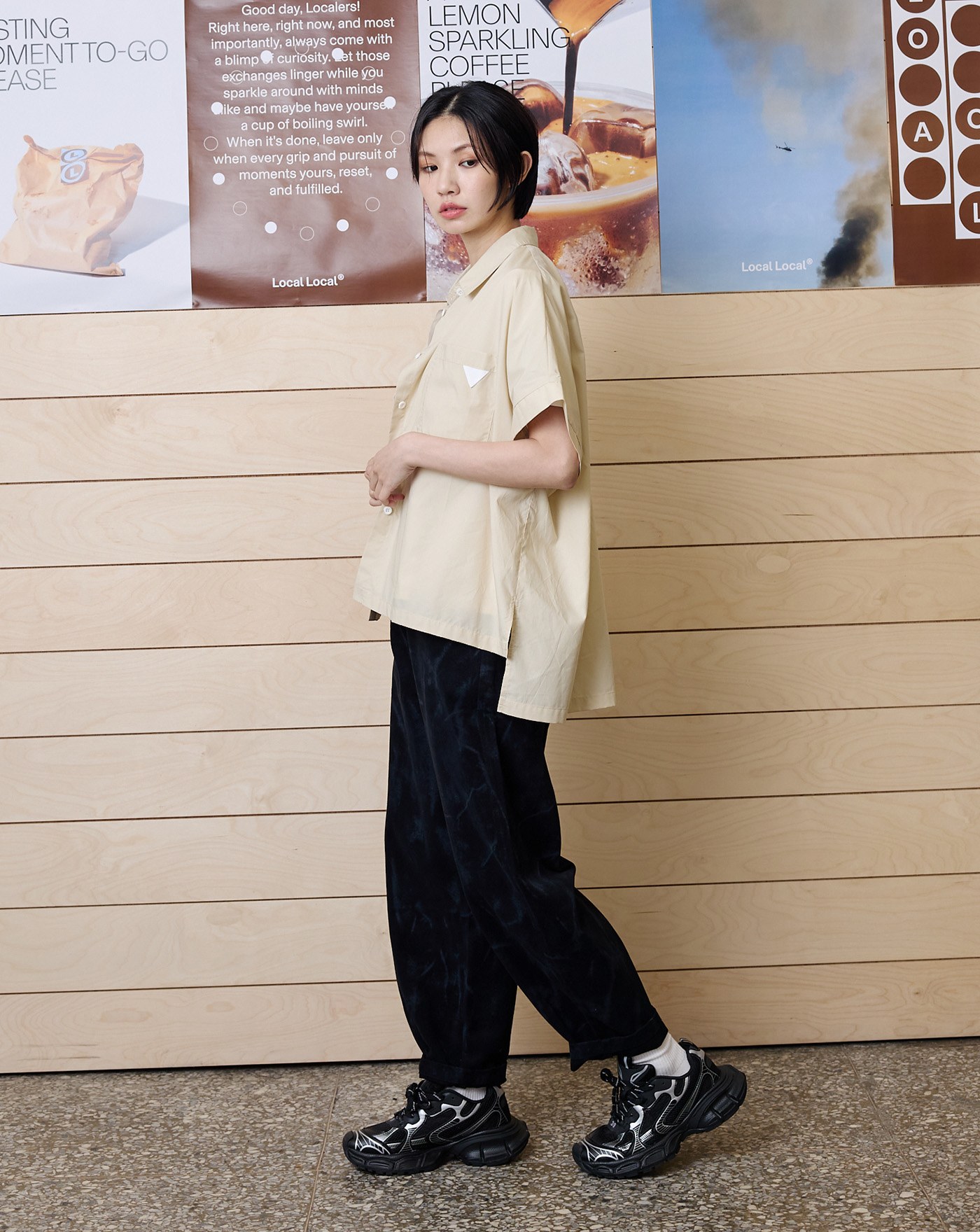 涼感天絲條紋拼接連袖襯衫(兩色)
