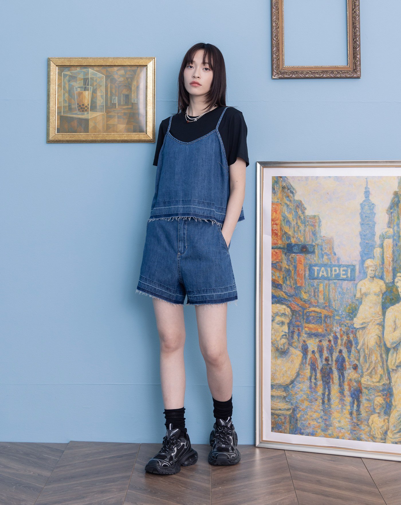 牛仔百褶短裙(附襯褲)