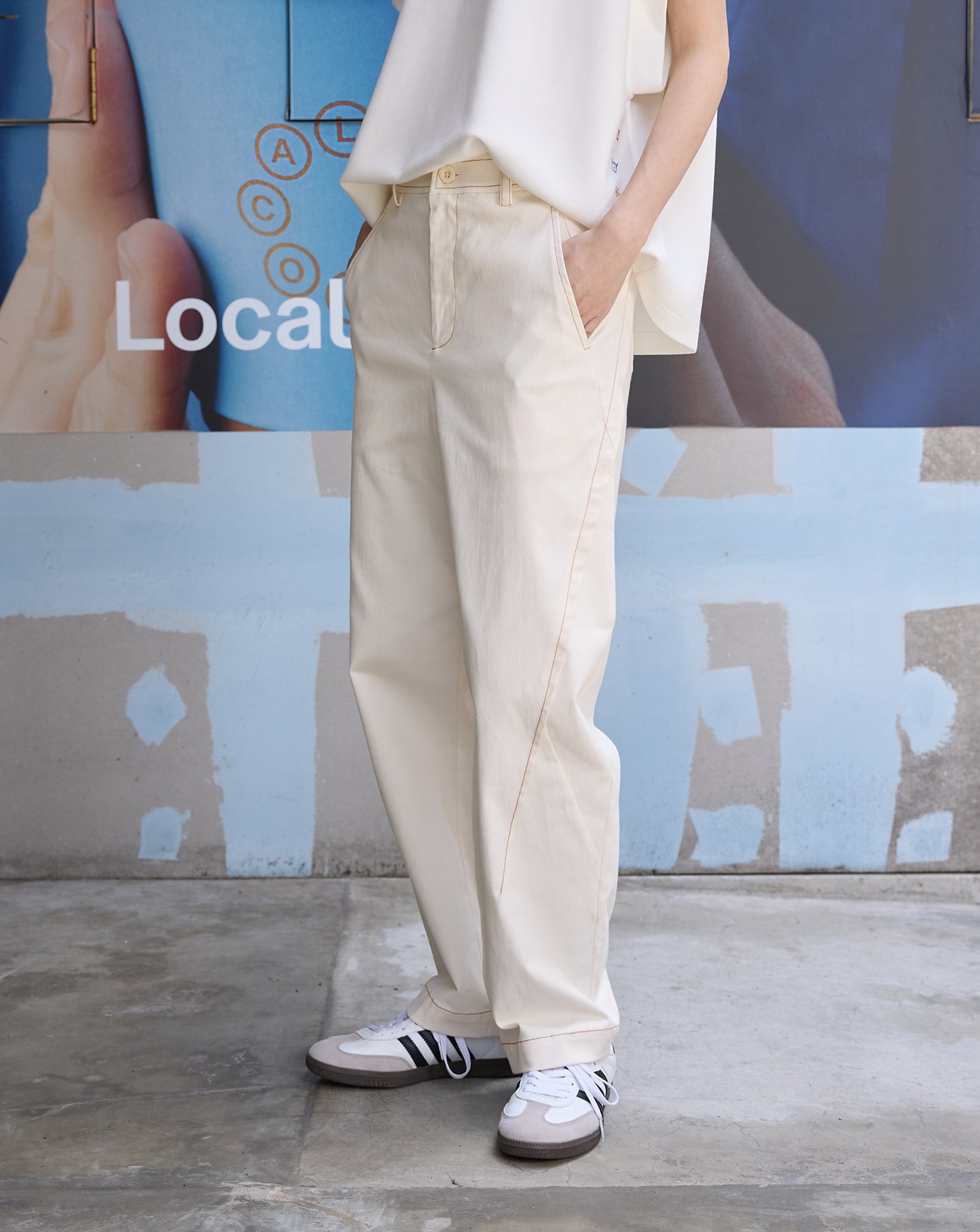 電影台詞配色壓線鬆緊男友褲(兩色)