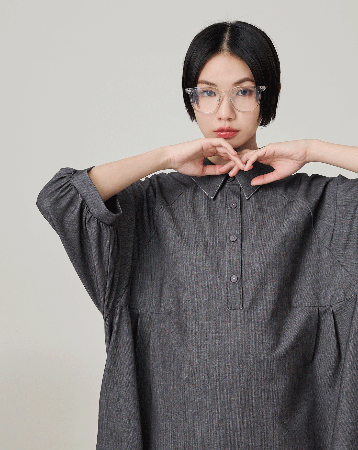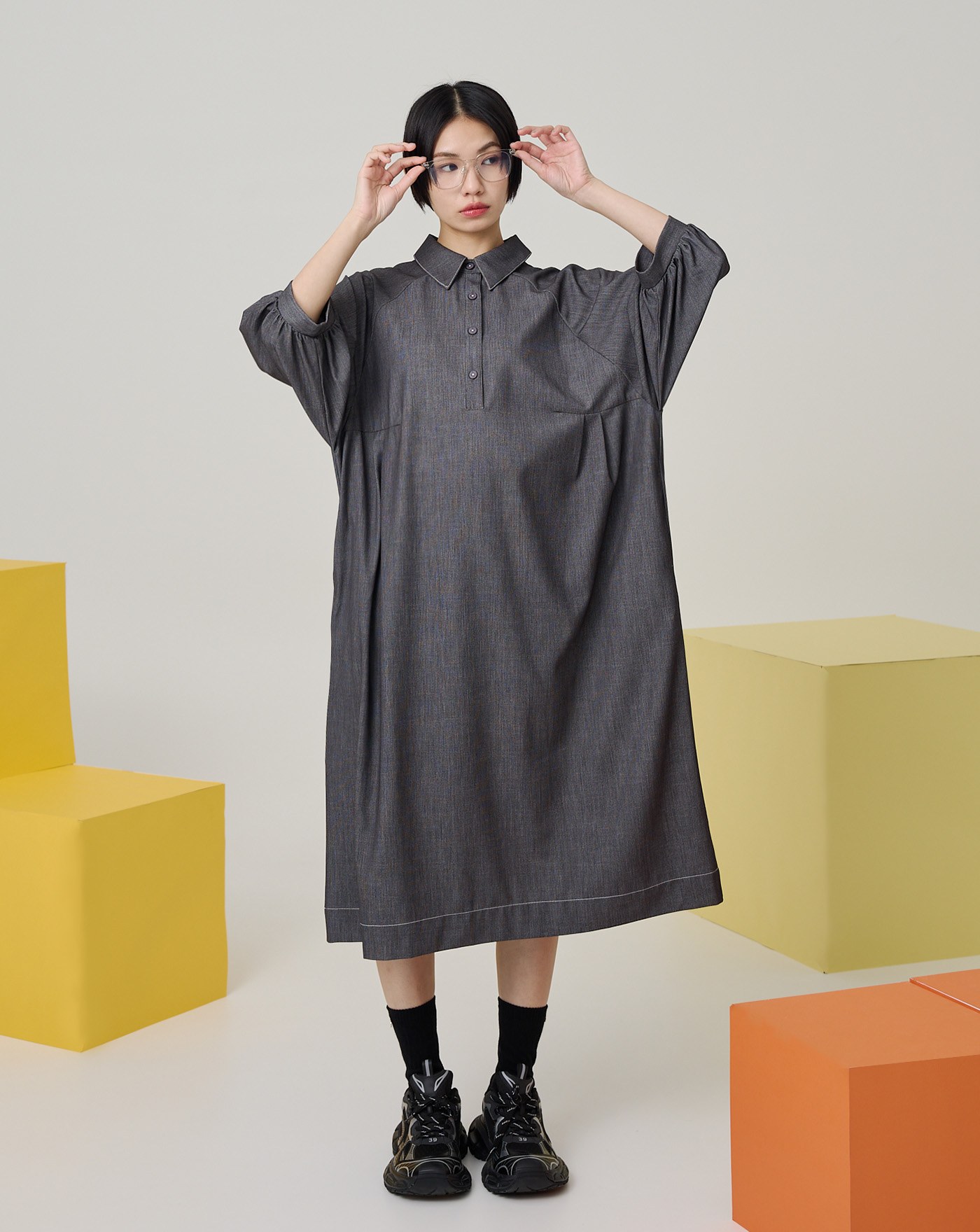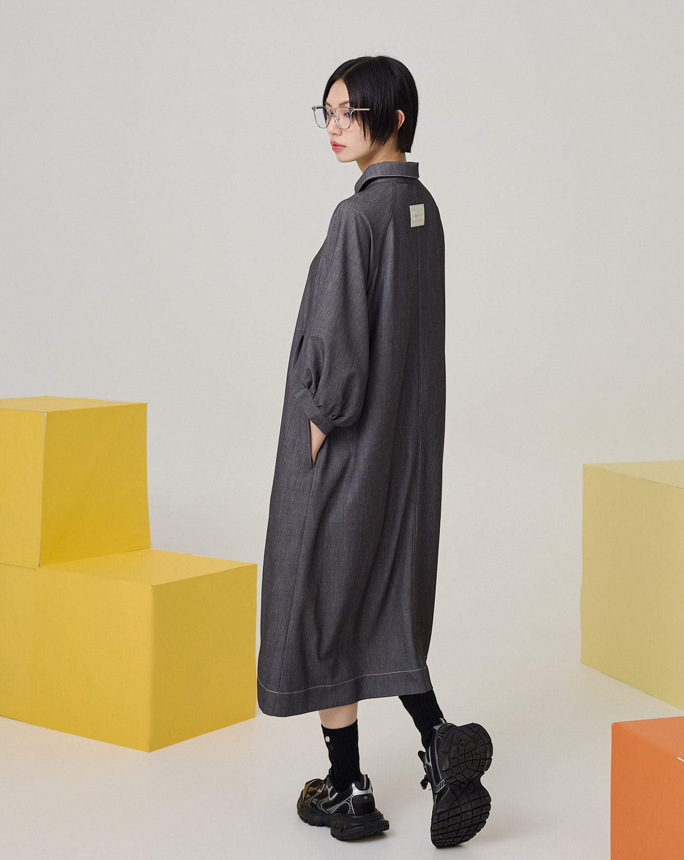 拼色抽繩袖造型直筒洋裝(兩色)