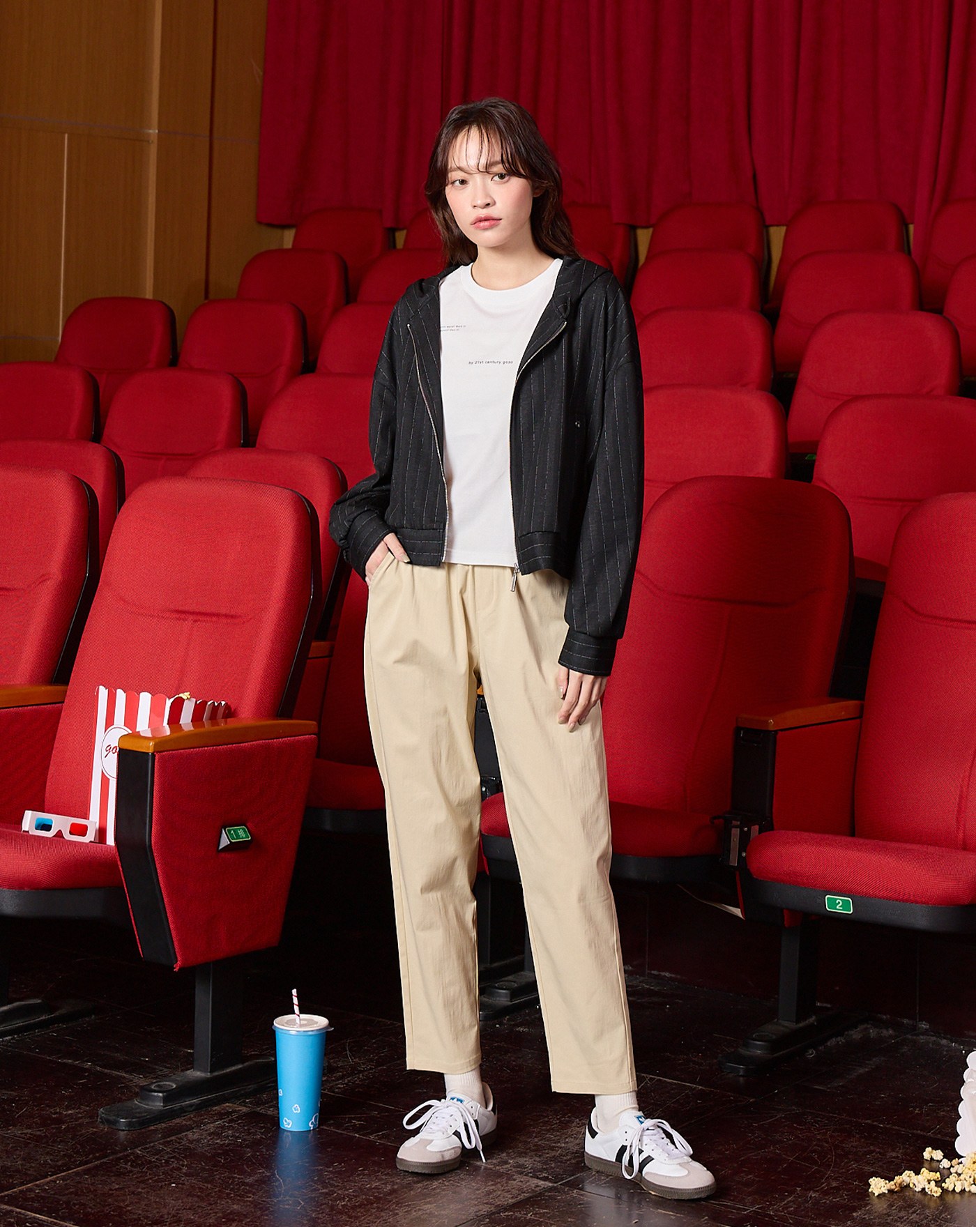直腿條紋鬆緊褲裙(兩色)