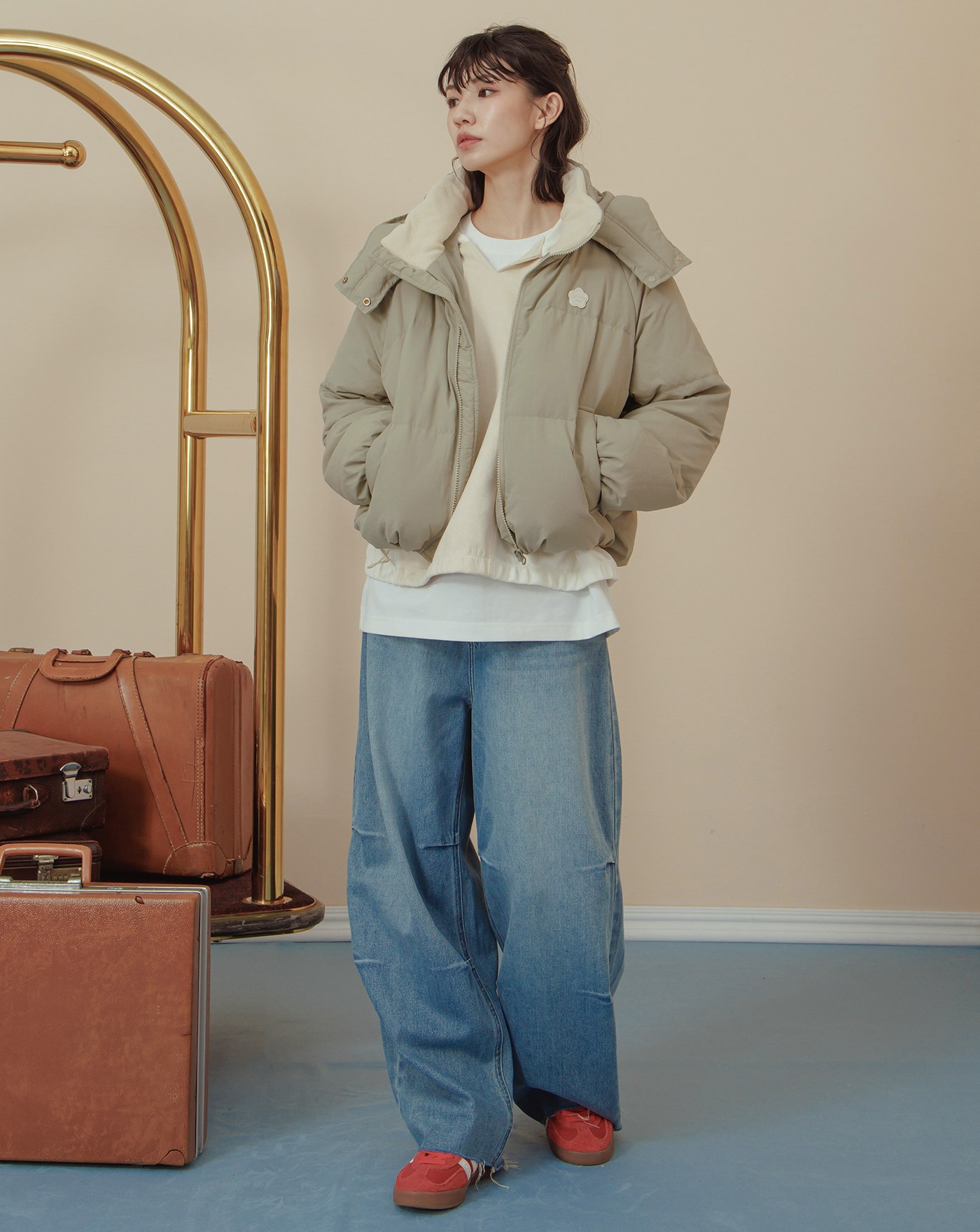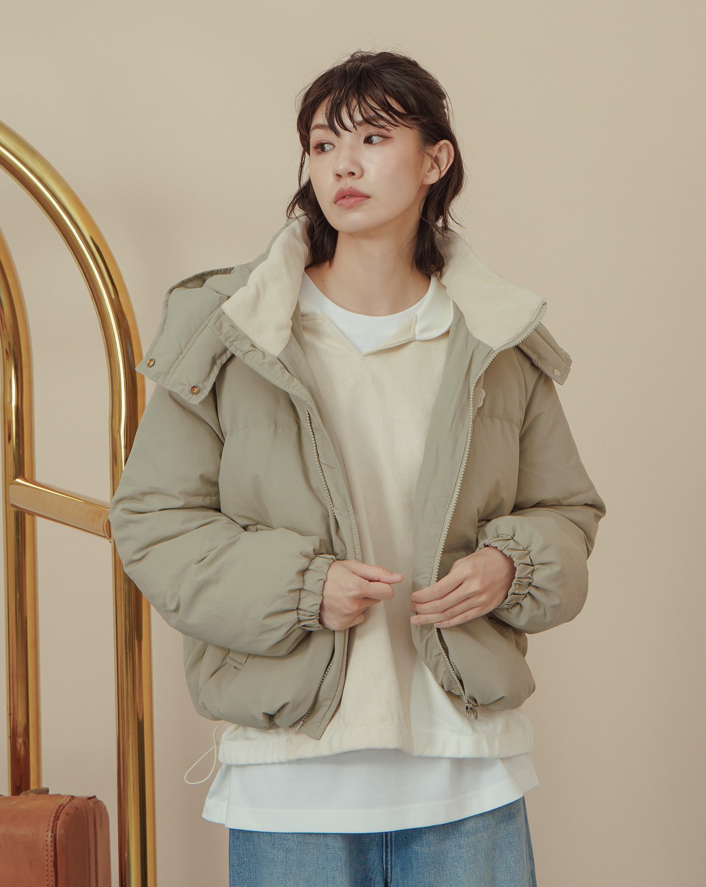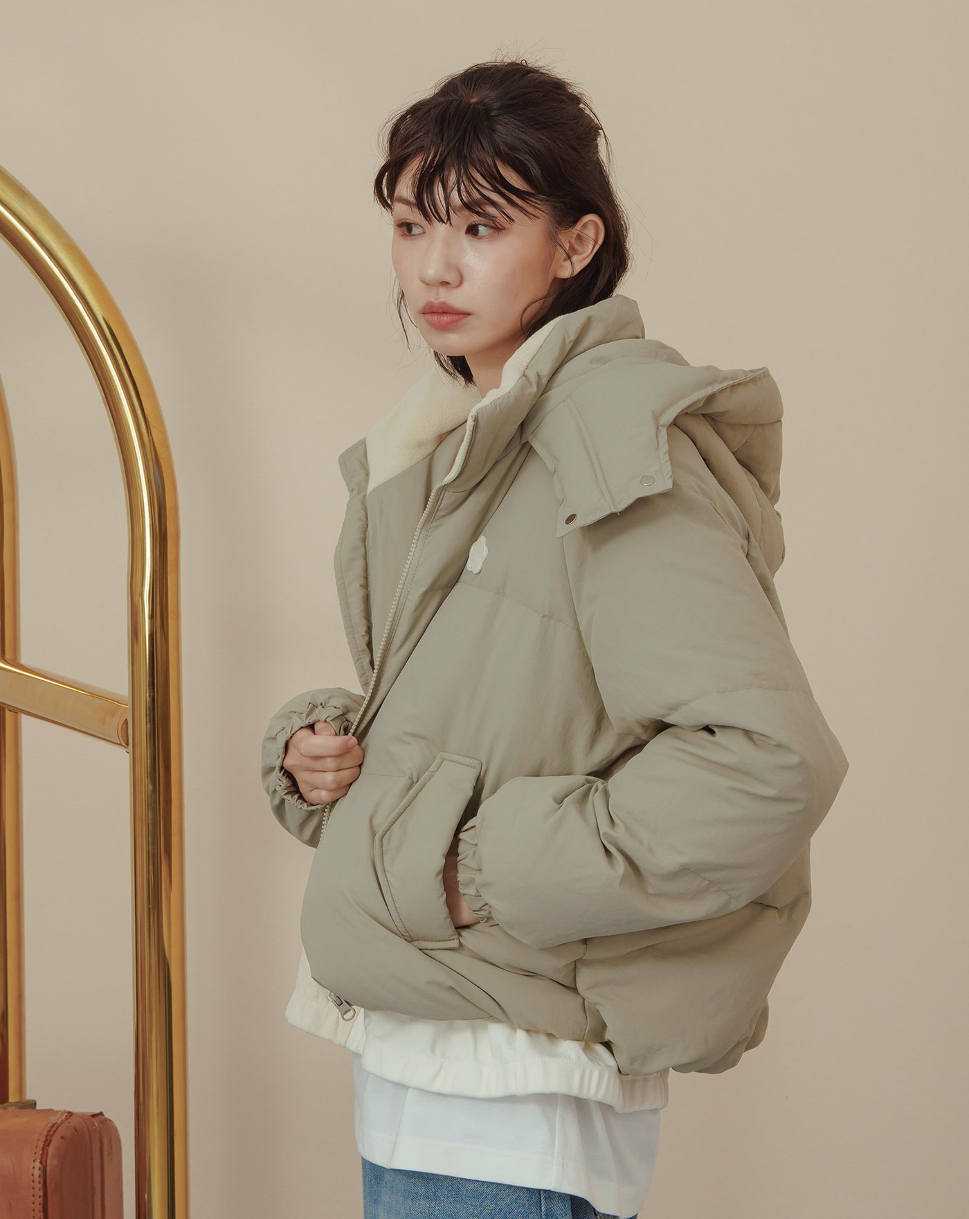 ➤防潑水雙向拉鍊可調節連帽羽絨外套(兩色)